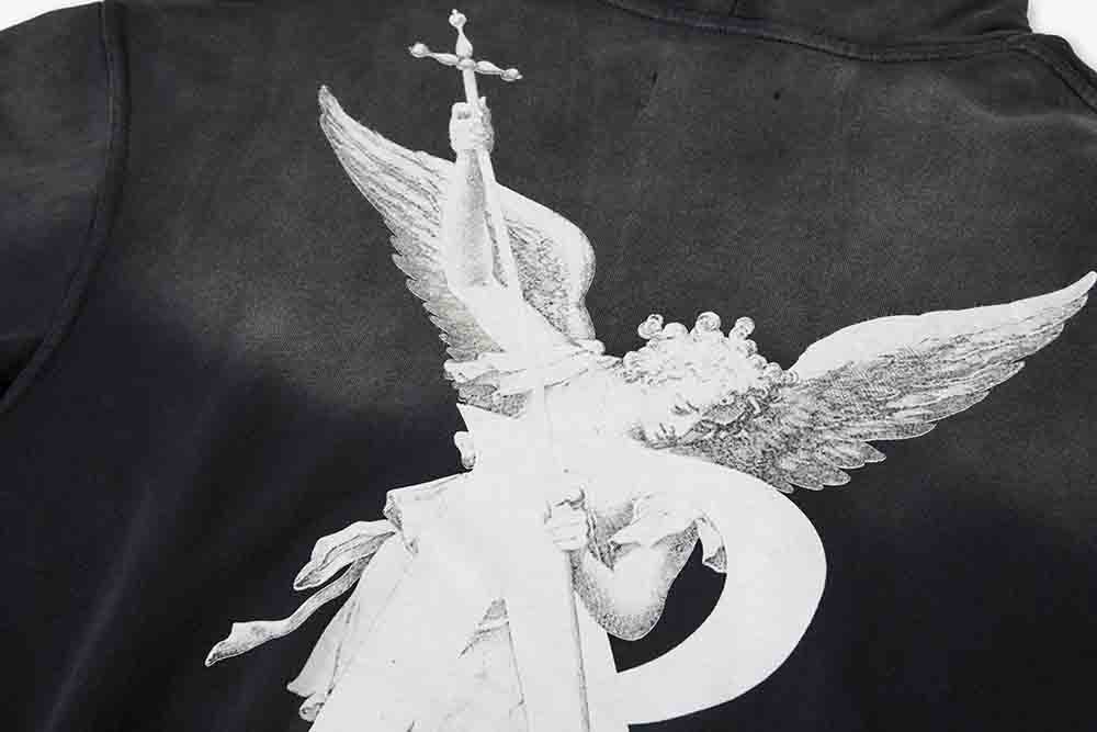 Marca de moda transfronteriza represente arcángel R letra estampado lavado y viejo suéter holgado con capucha para hombre retro