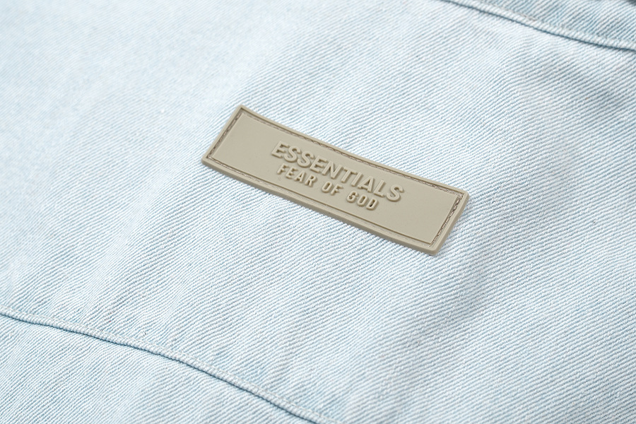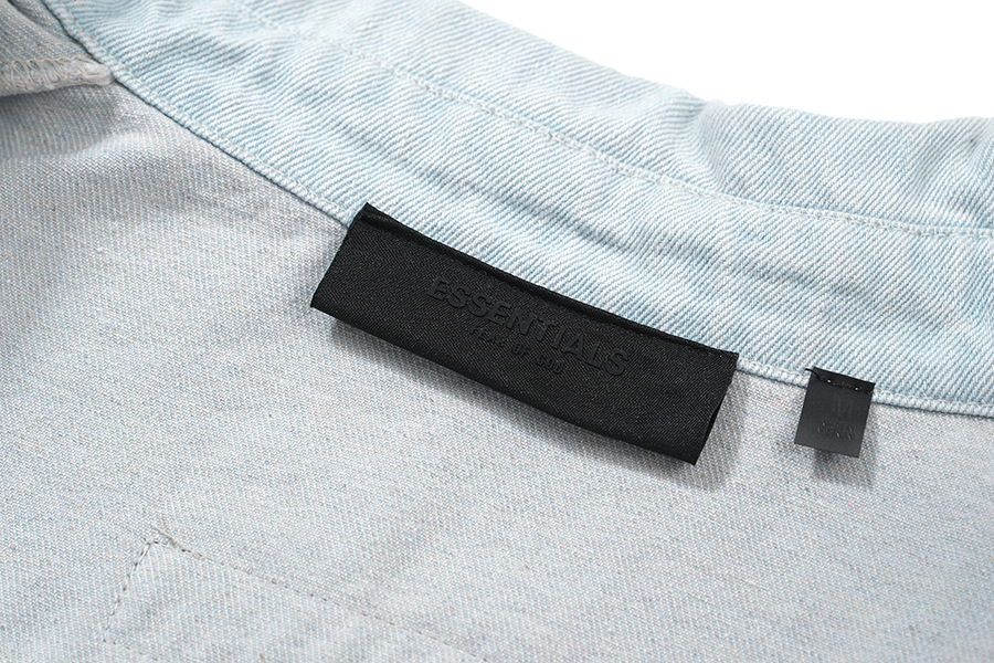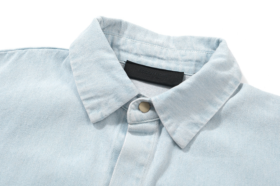 Fear of God Essentials High Street Fog Solid Collar Botones de camisa de vaquero para hombres y mujeres