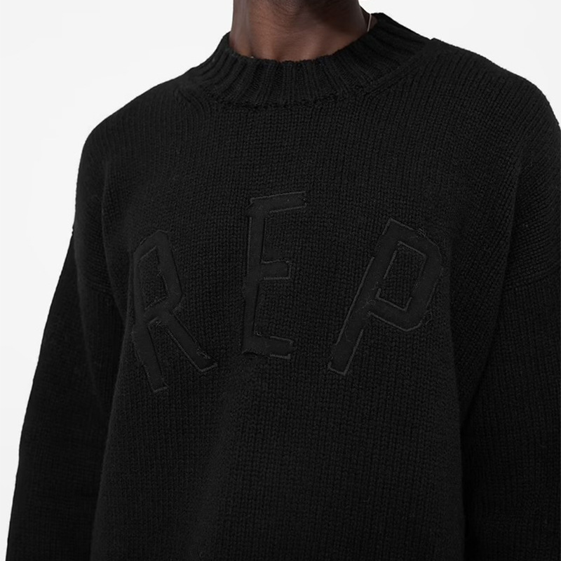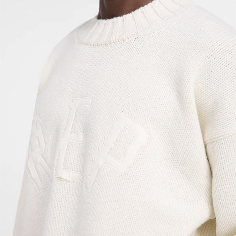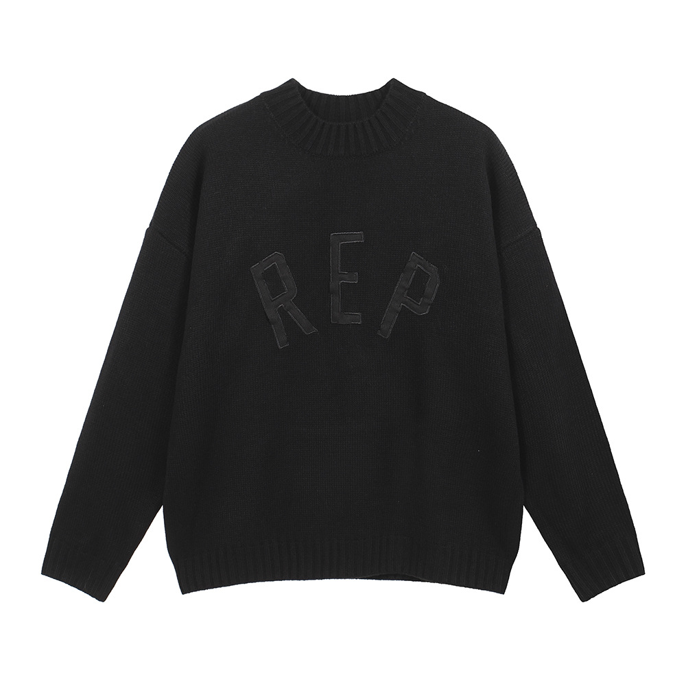 Otoño y invierno nuevo representante letras pegatinas bordadas suéter de cuello redondo suéter de tendencia suelta camiseta de punto
