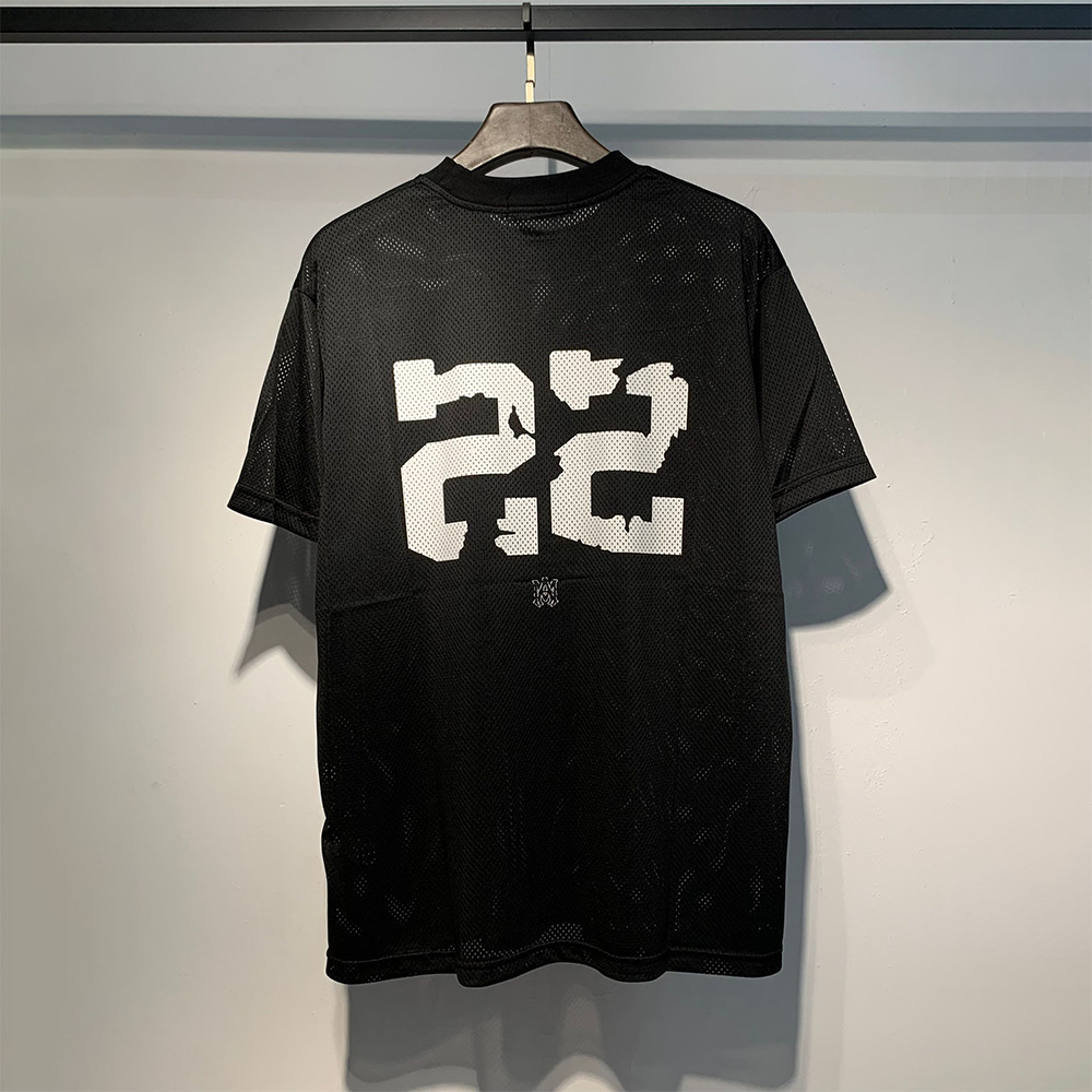 Transfronterizo belleza de verano casual 22 letras impresión de malla hombre cuello redondo camiseta de manga corta