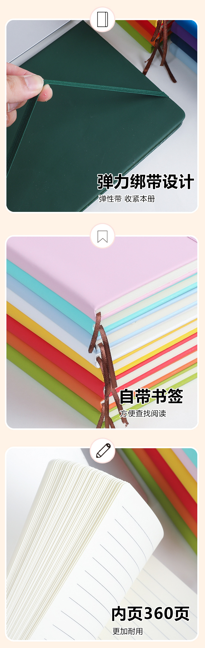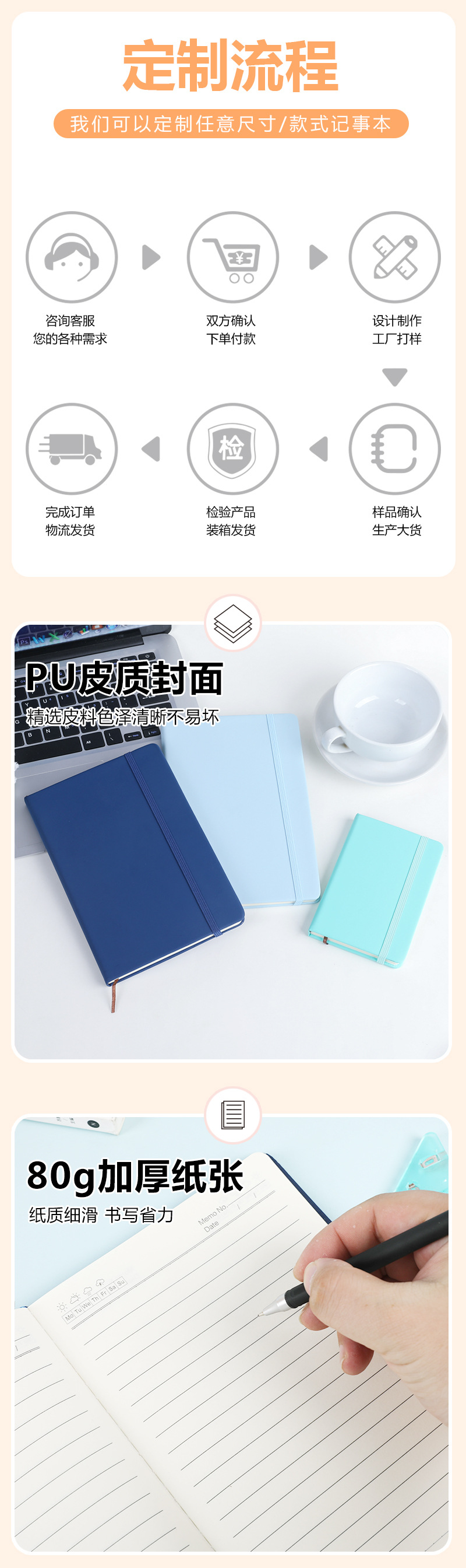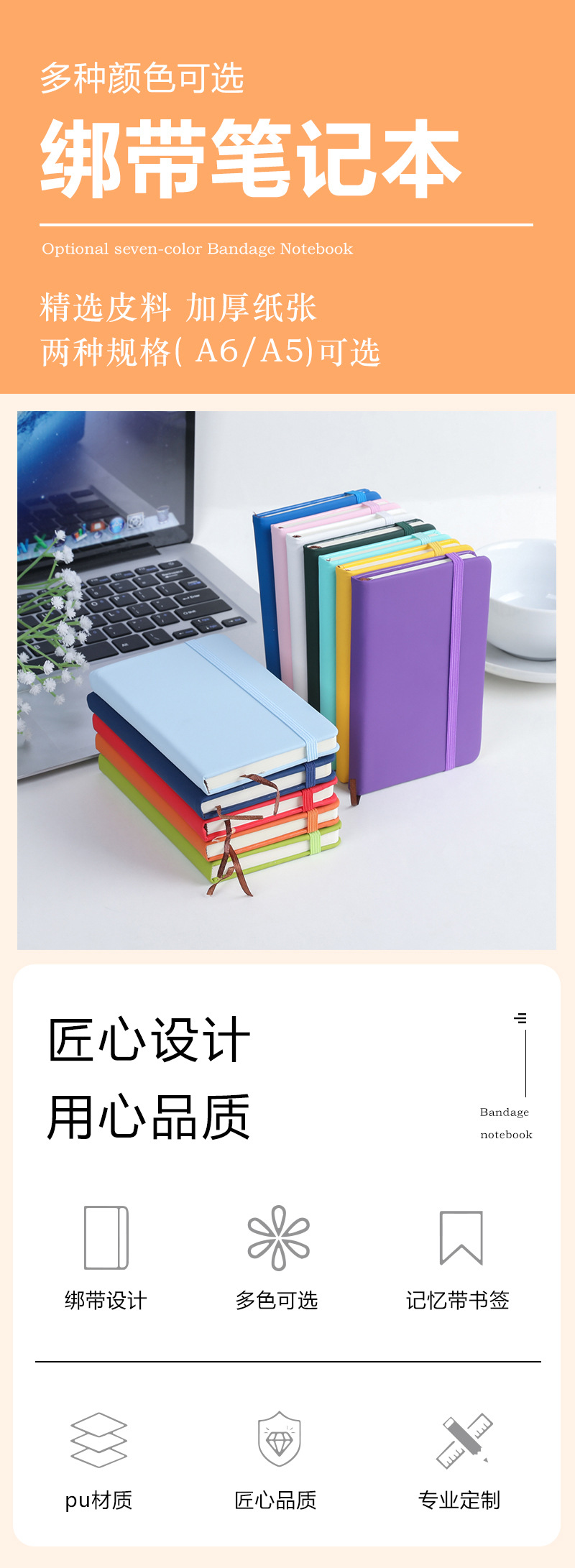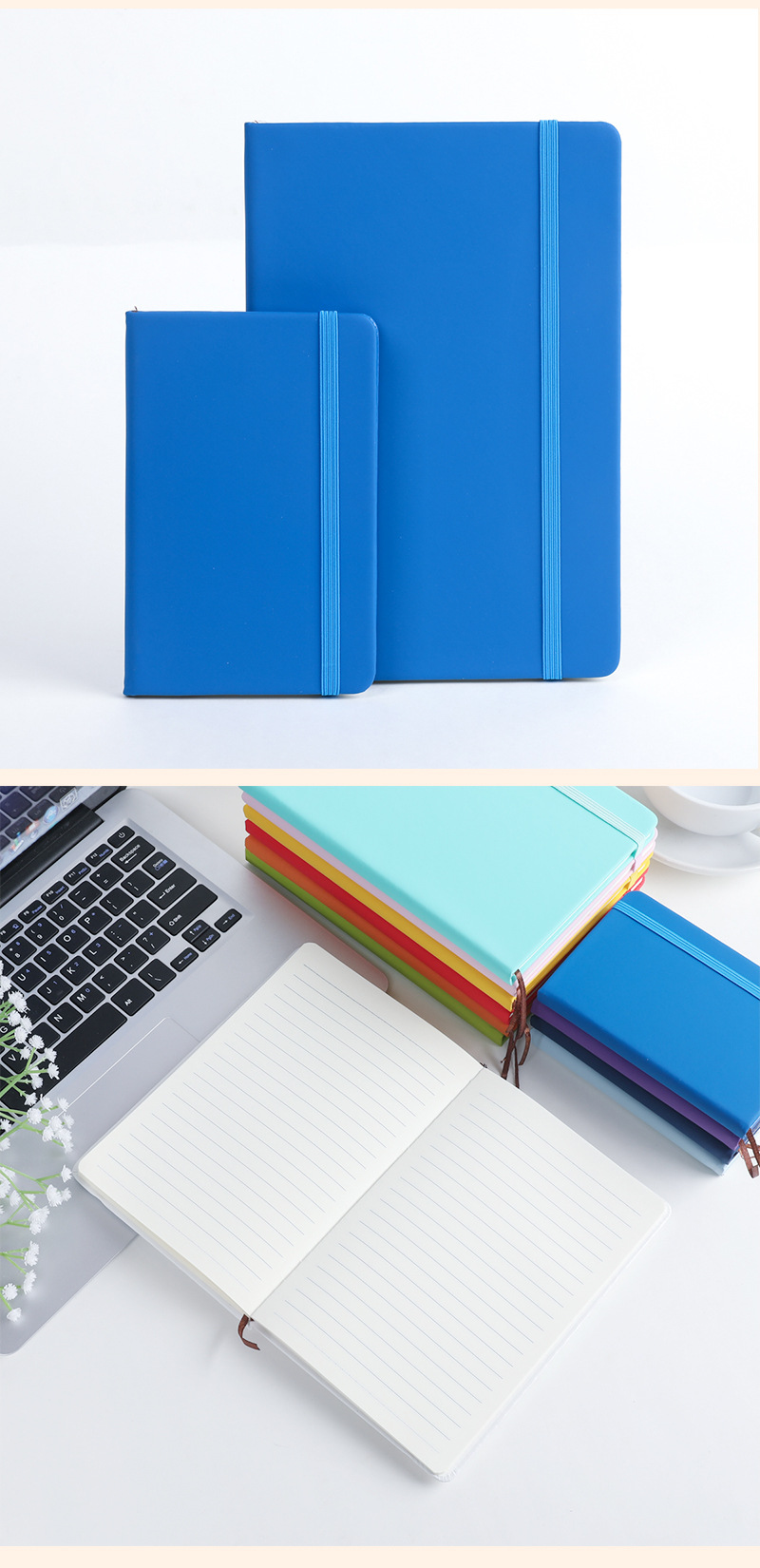 Libreta de negocios con páginas completamente rayadas para exportación transfronteriza, bloc de notas A5 con banda elástica, diario simple de PU.