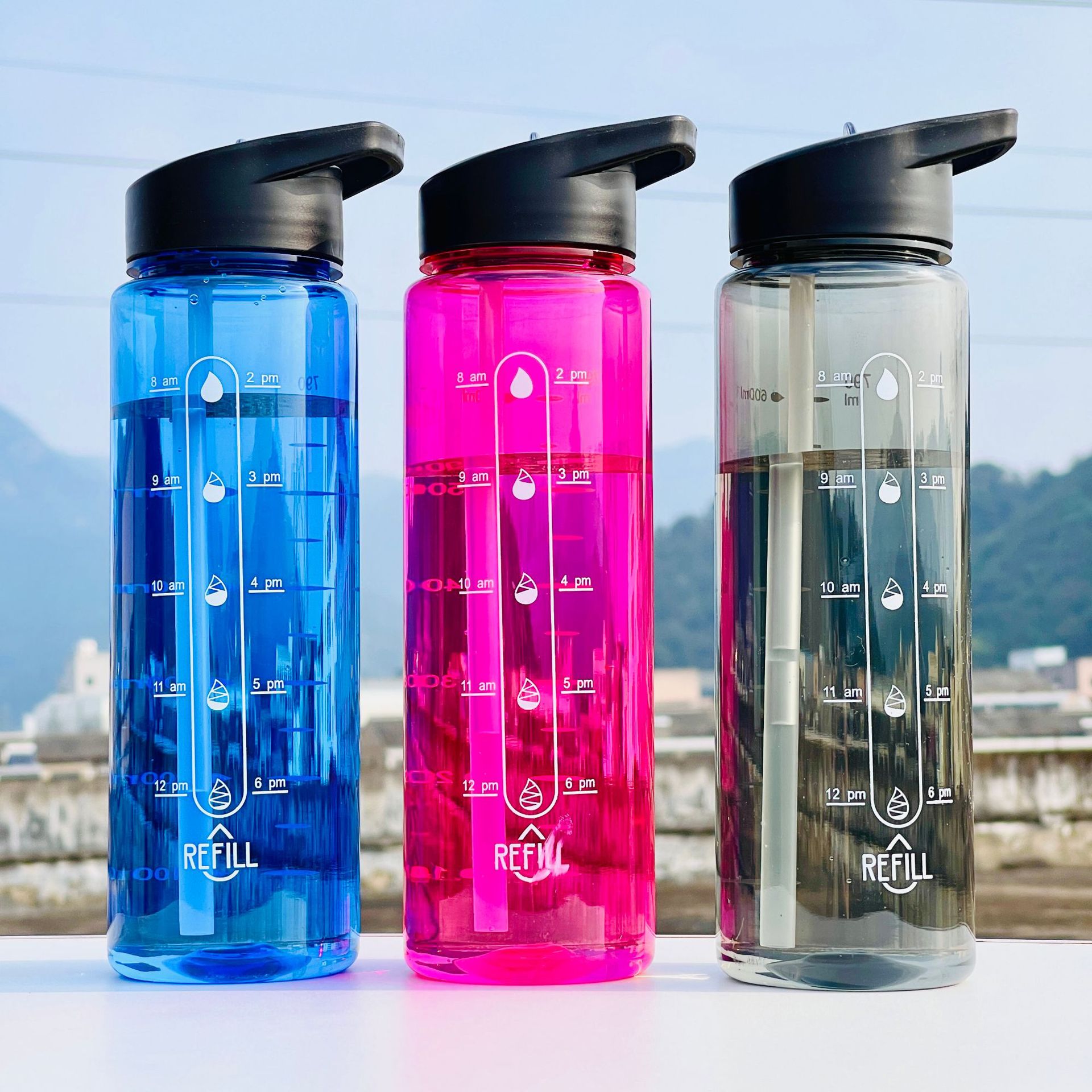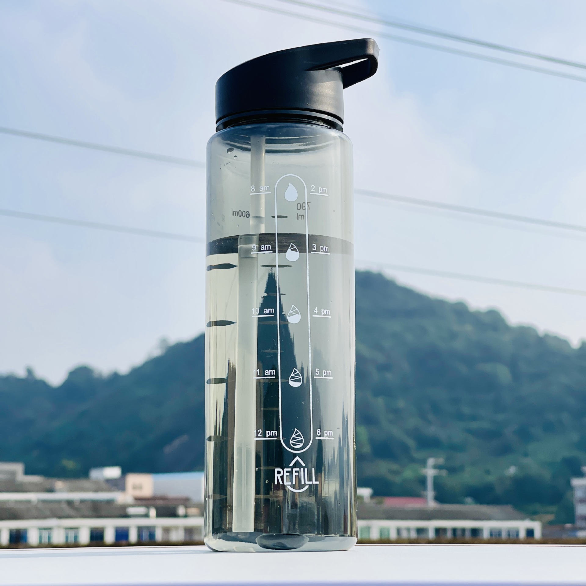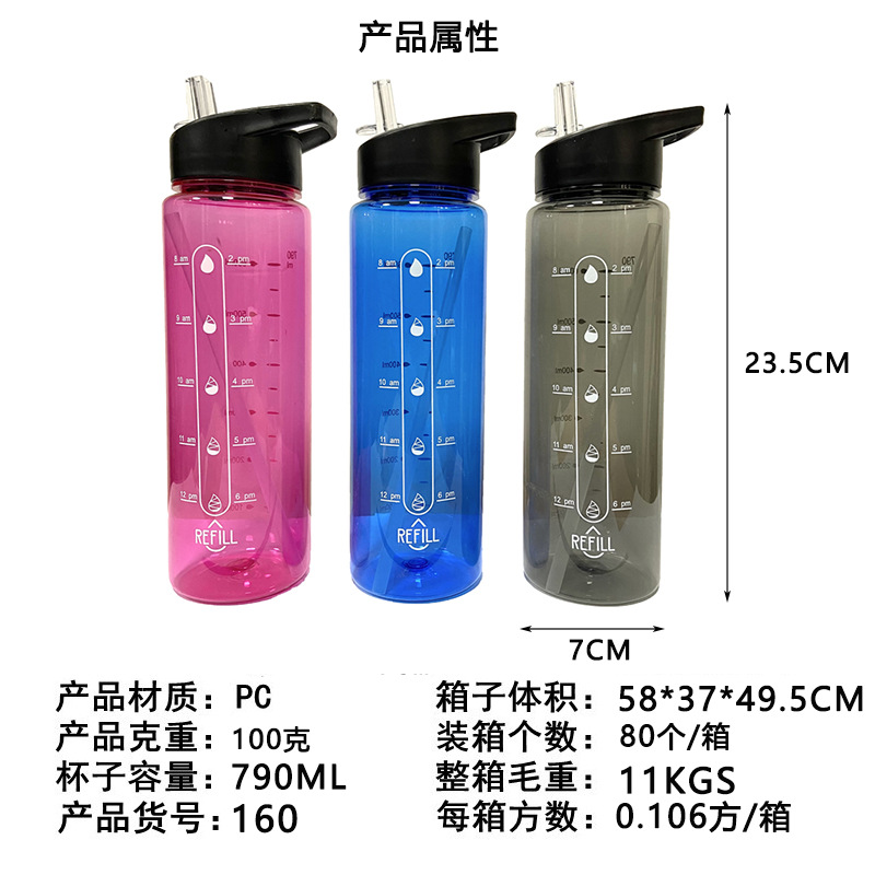 Taza de plástico transfronteriza Amazon anti-caída con pajita de gran capacidad Kettle Fitness Sport Cup de gran capacidad portátil