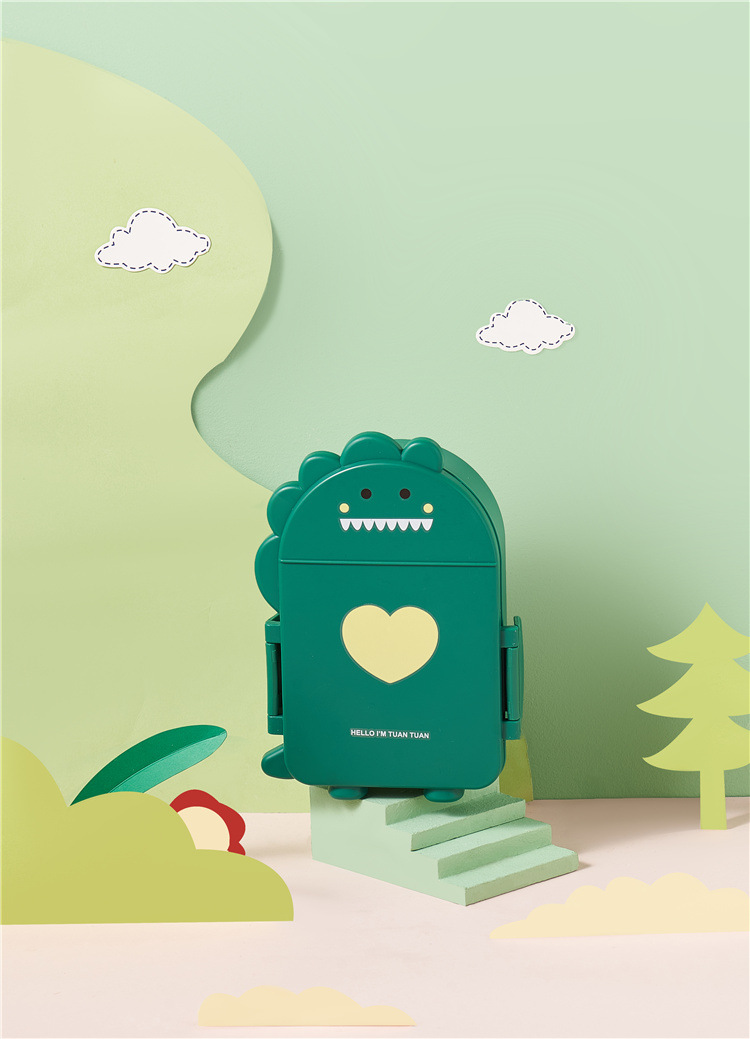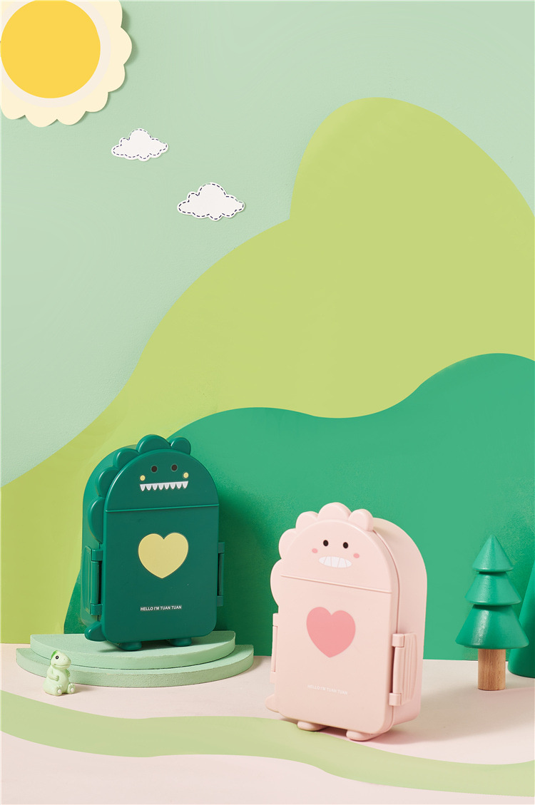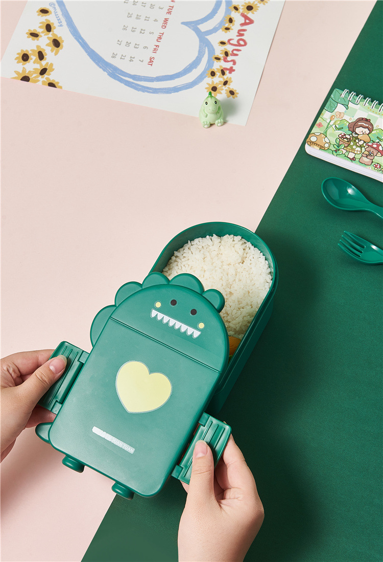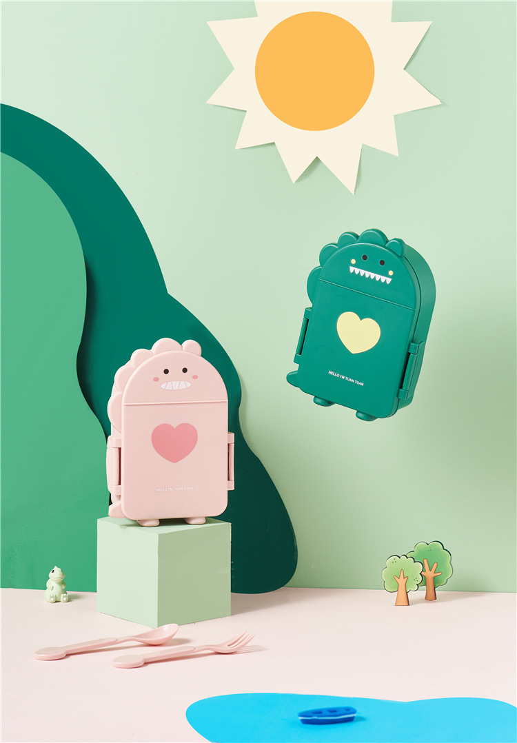 Nueva caja de almuerzo de dinosaurio con tapa Linda caja de almuerzo del compartimiento de los niños pequeña capacidad portátil para niños caja de suplemento alimenticio