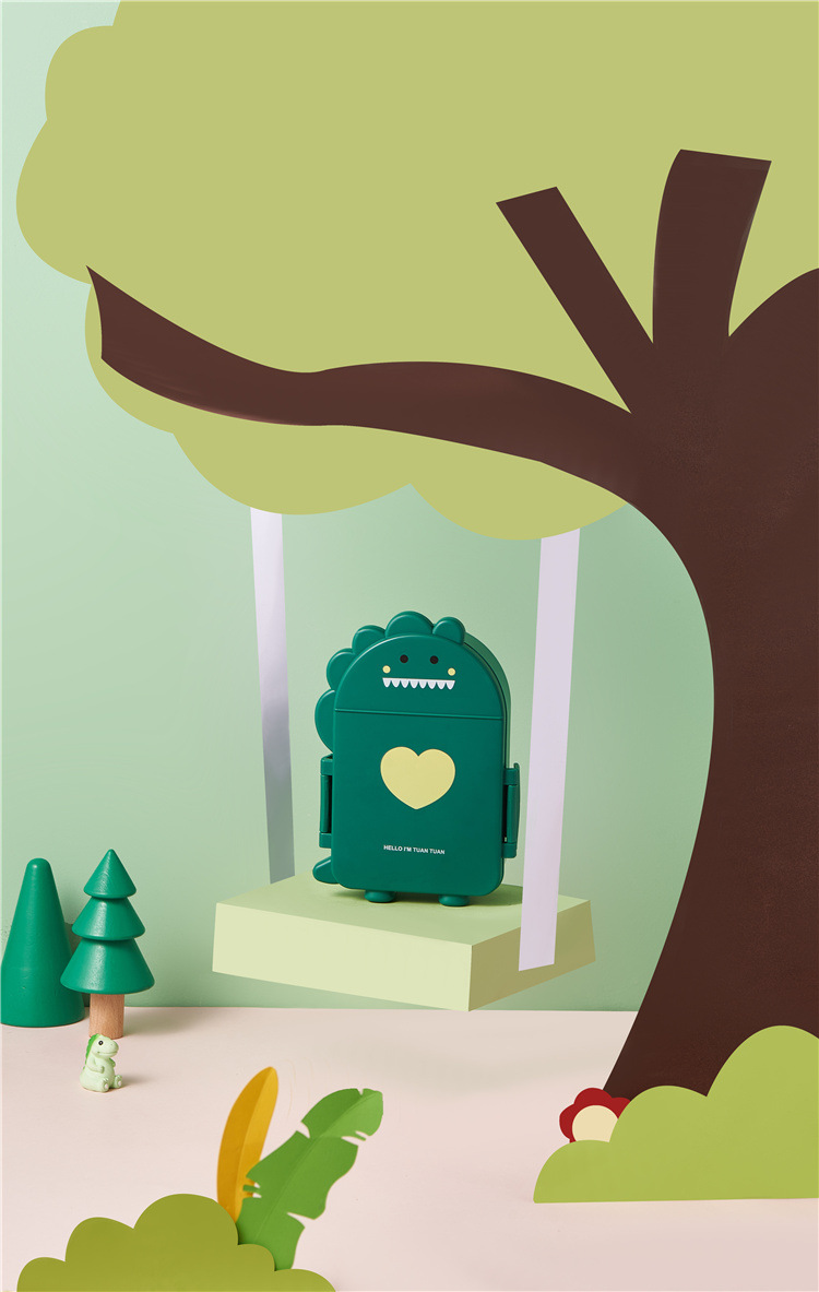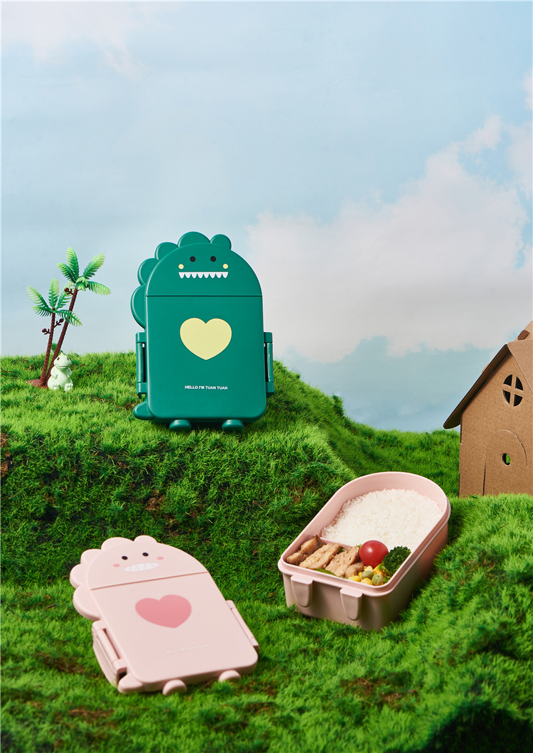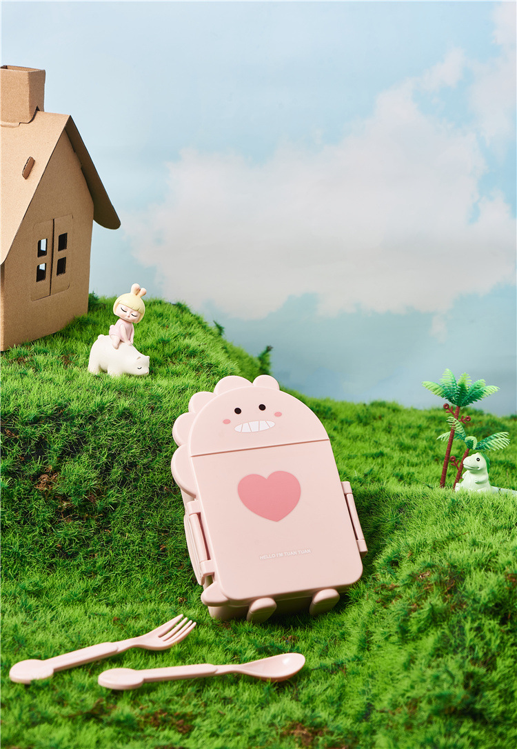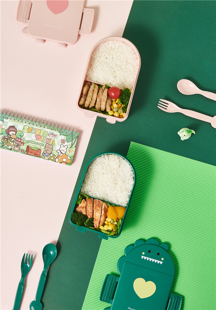 Nueva caja de almuerzo de dinosaurio con tapa Linda caja de almuerzo del compartimiento de los niños pequeña capacidad portátil para niños caja de suplemento alimenticio