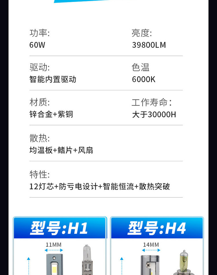 La venta al por mayor transfronteriza H11 H4 H7 coche llevó la unidad externa de la linterna 12V LED brillante estupendo modificó la linterna delantera