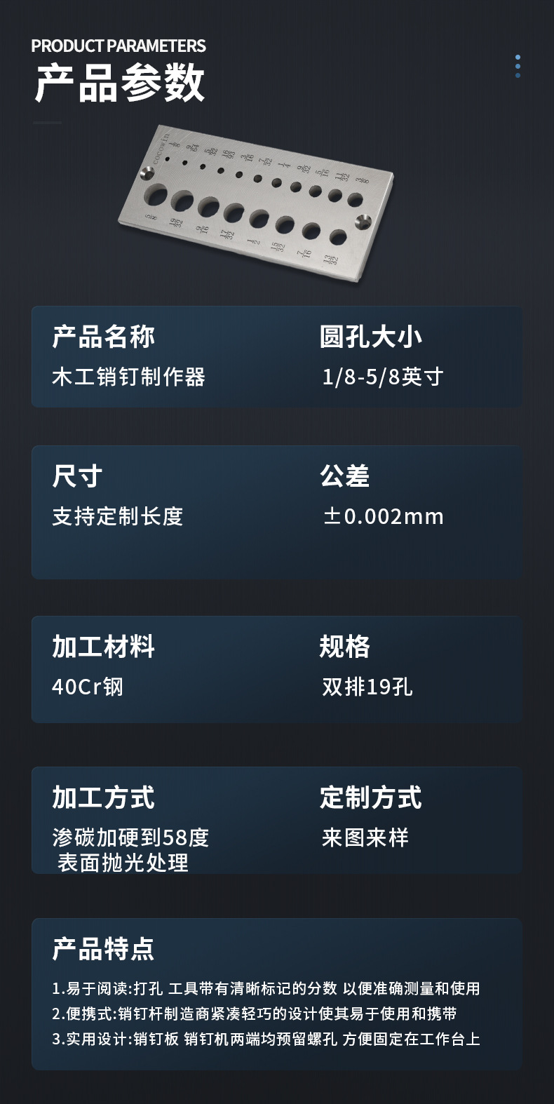 40cr Placa de pasador de acero con muesca pin fabricante Fabricante de PIN de carpintería portátil con agujero fijo
