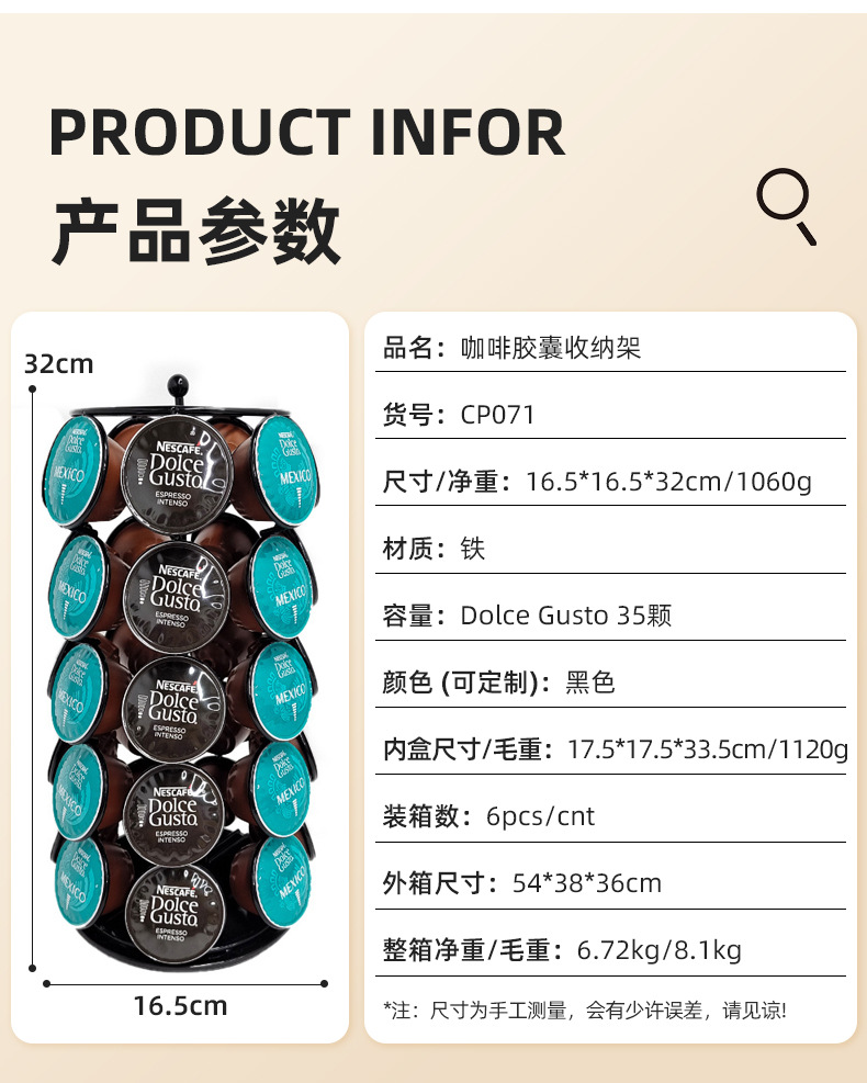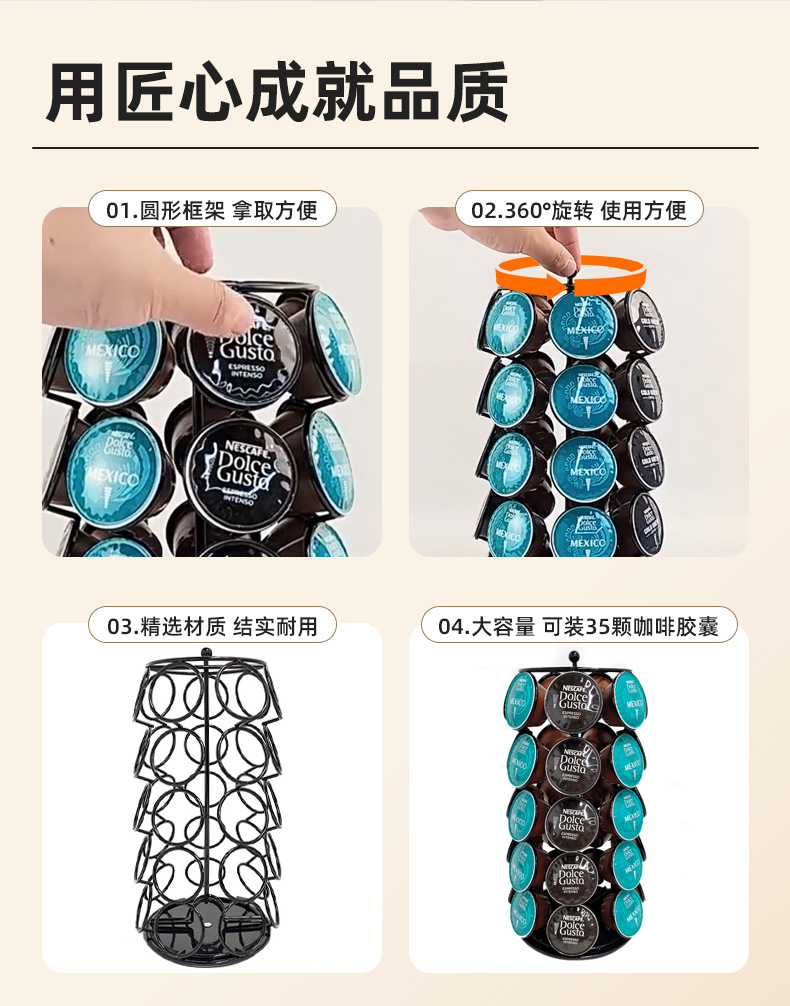 Soporte giratorio para cápsulas de café Dolce Gusto, organizador de 35 unidades, diseño metálico elegante para cocina o cafetería