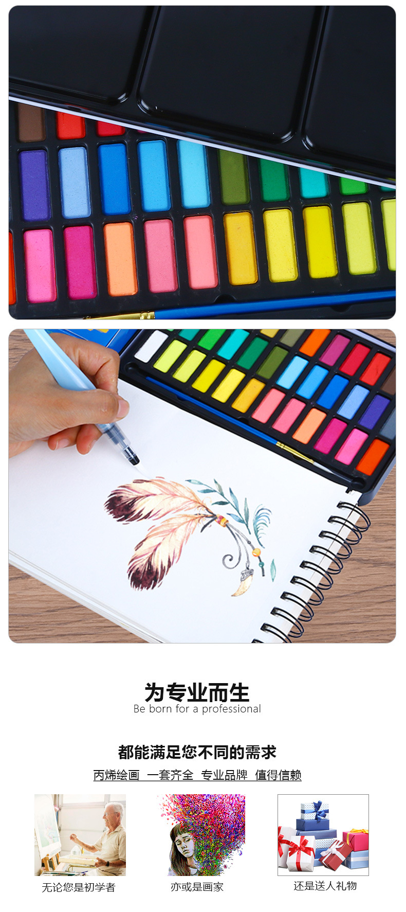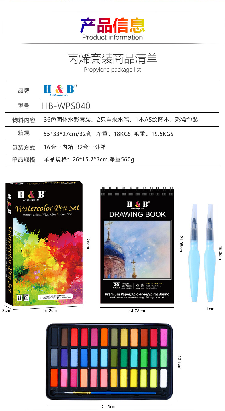 H & B40 piezas sólido traje de acuarela 36 colores pintura gouache suministros arte al por mayor agua del grifo pluma personalización