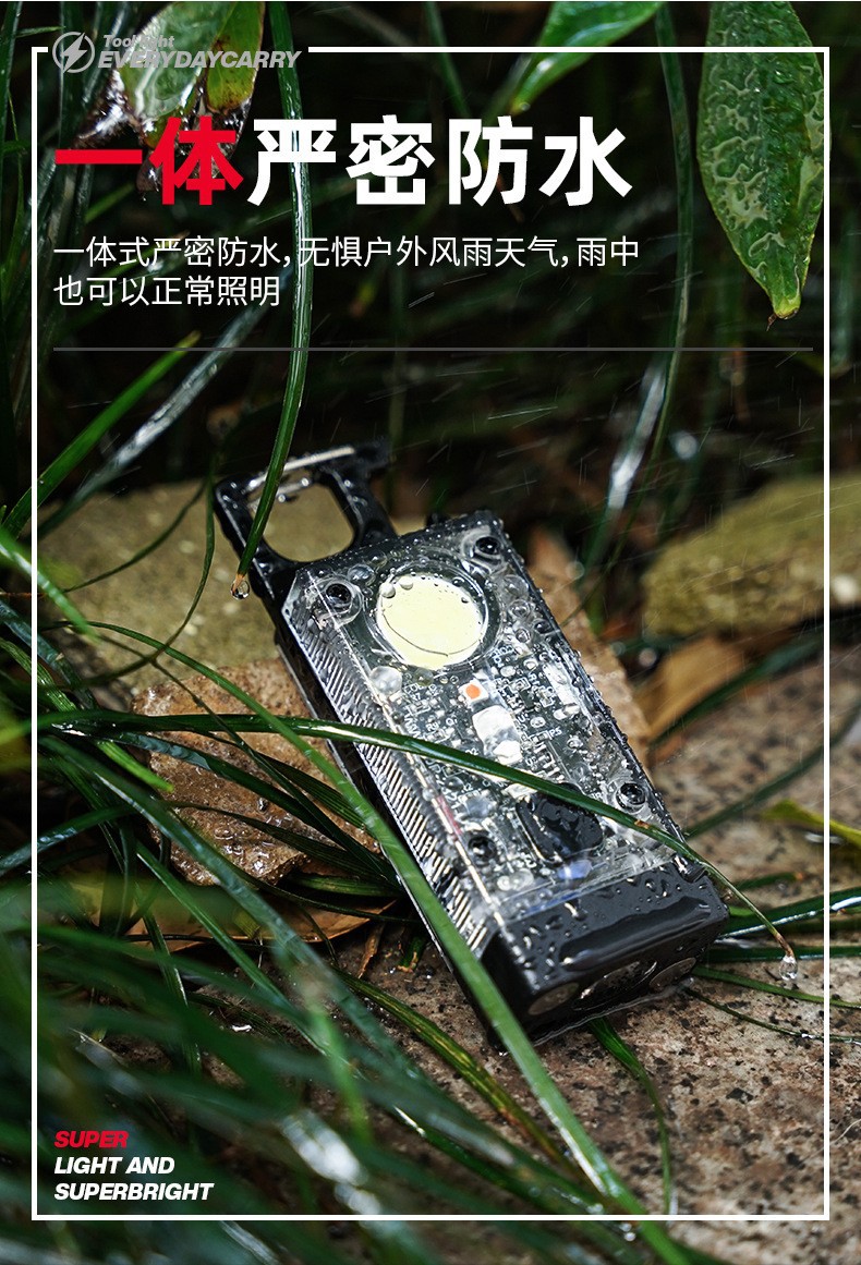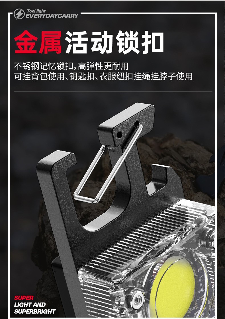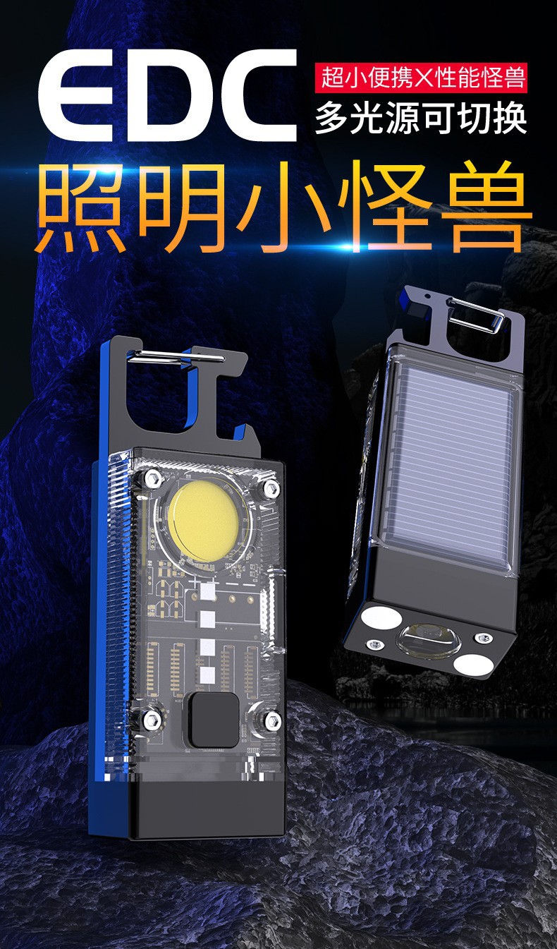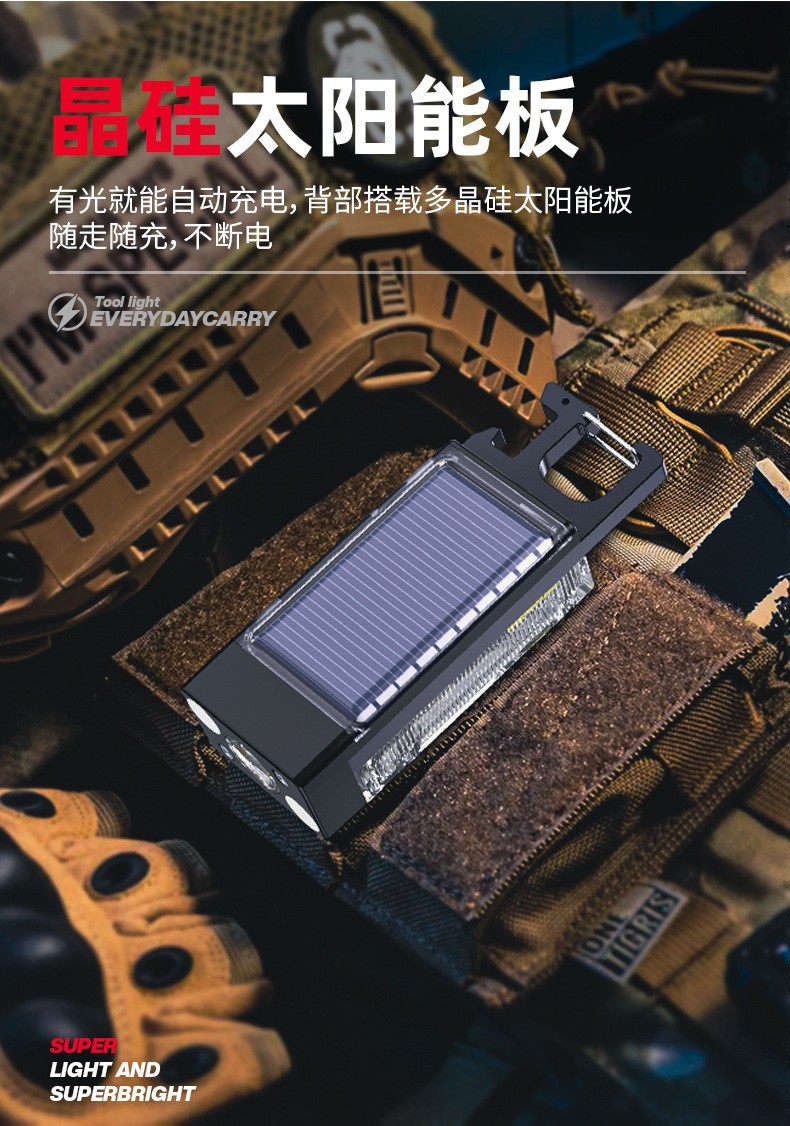 Nuevo llavero solar luz recargable linterna multifuncional aleación de aluminio resaltar mini COB luz de trabajo