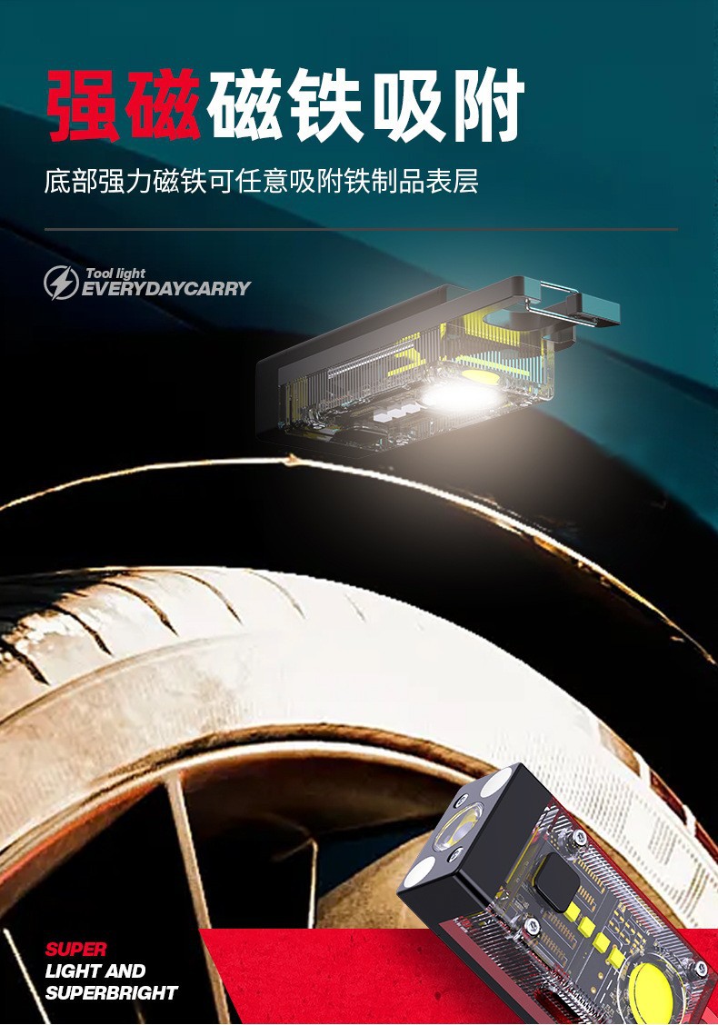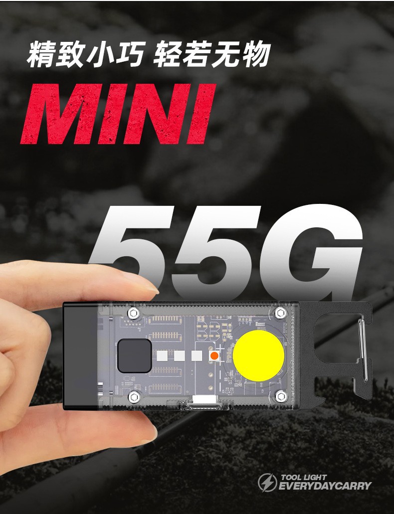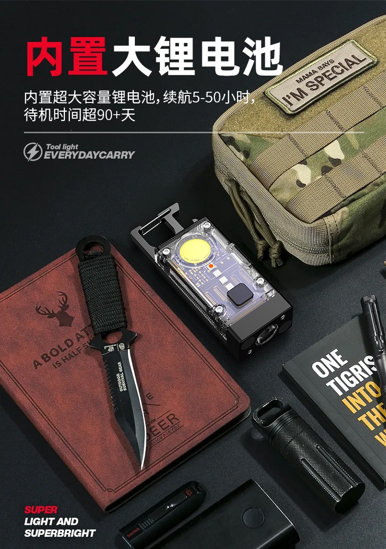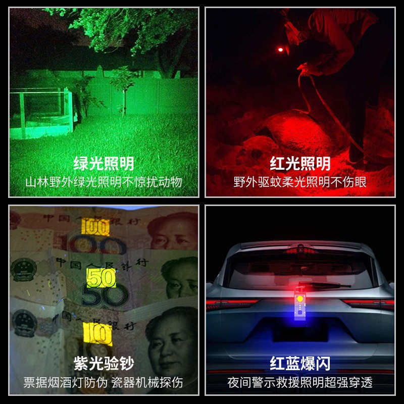 Nuevo llavero solar luz recargable linterna multifuncional aleación de aluminio resaltar mini COB luz de trabajo