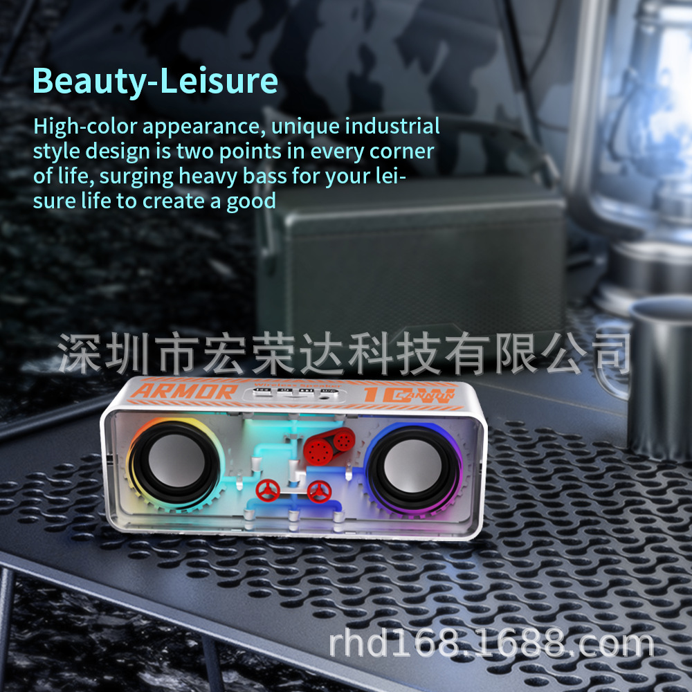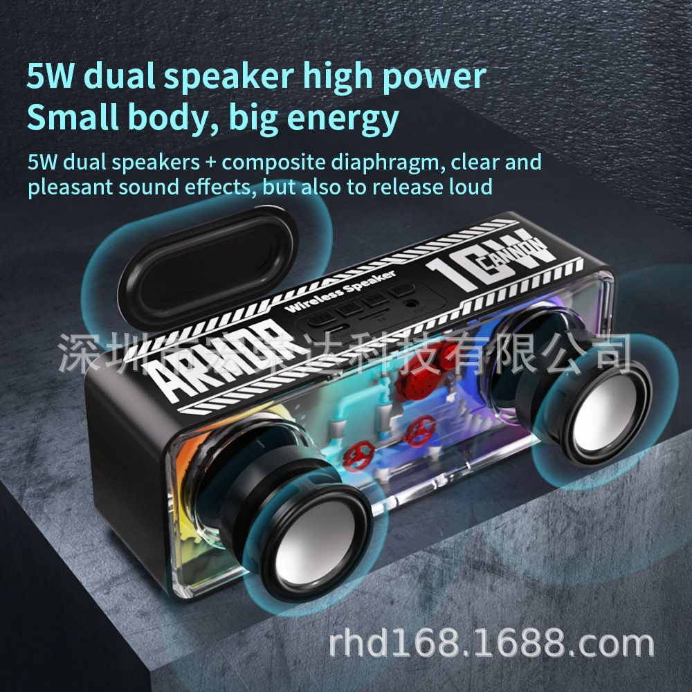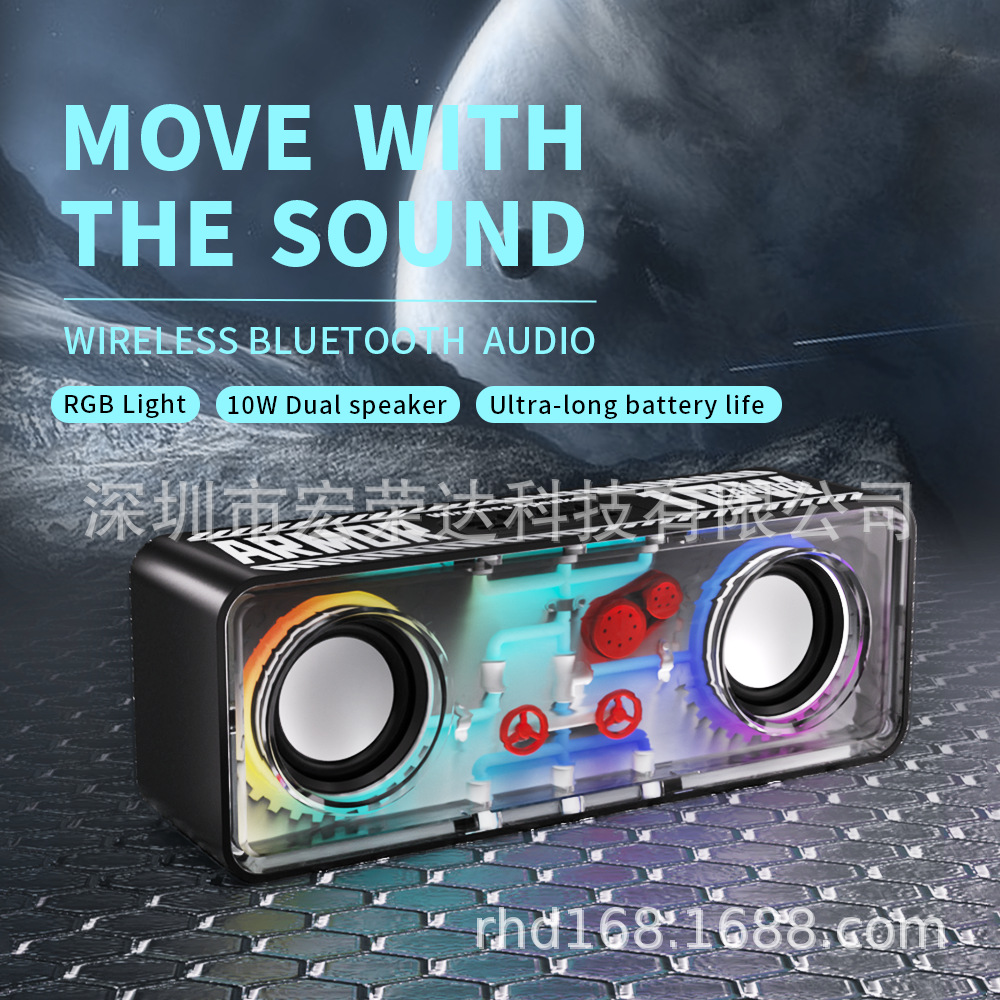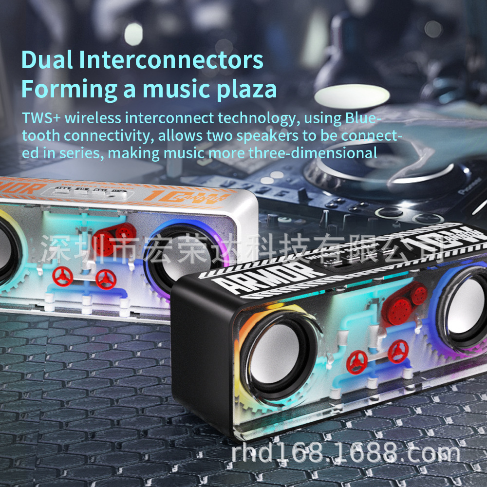 Transfronterizo Altavoz doble transparente Mech inalámbrico Bluetooth altavoz Saibo punk estilo colorido luz pequeña pistola de acero Bass Audio