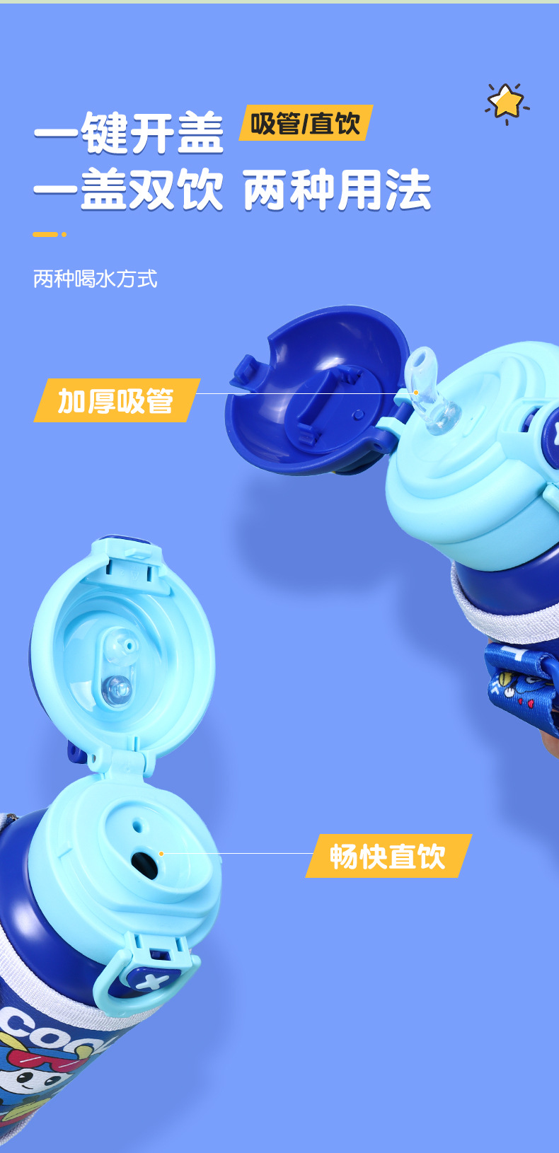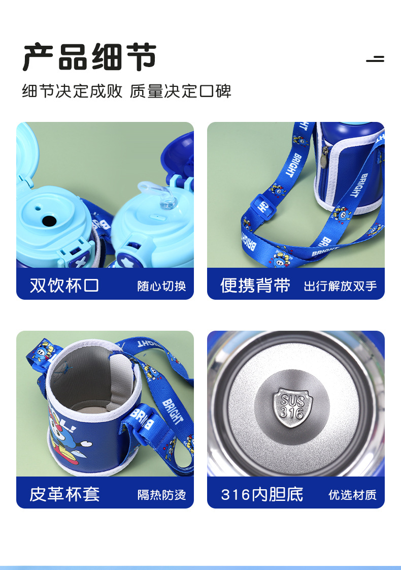 Dibujos animados 316 acero inoxidable doble bebida creativa para niños termo taza de agua de paja de asta regalo de coche portátil al por mayor