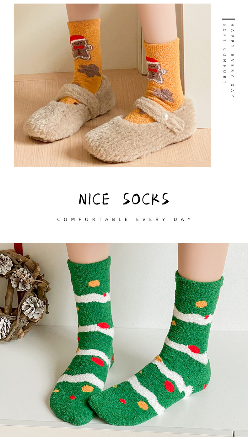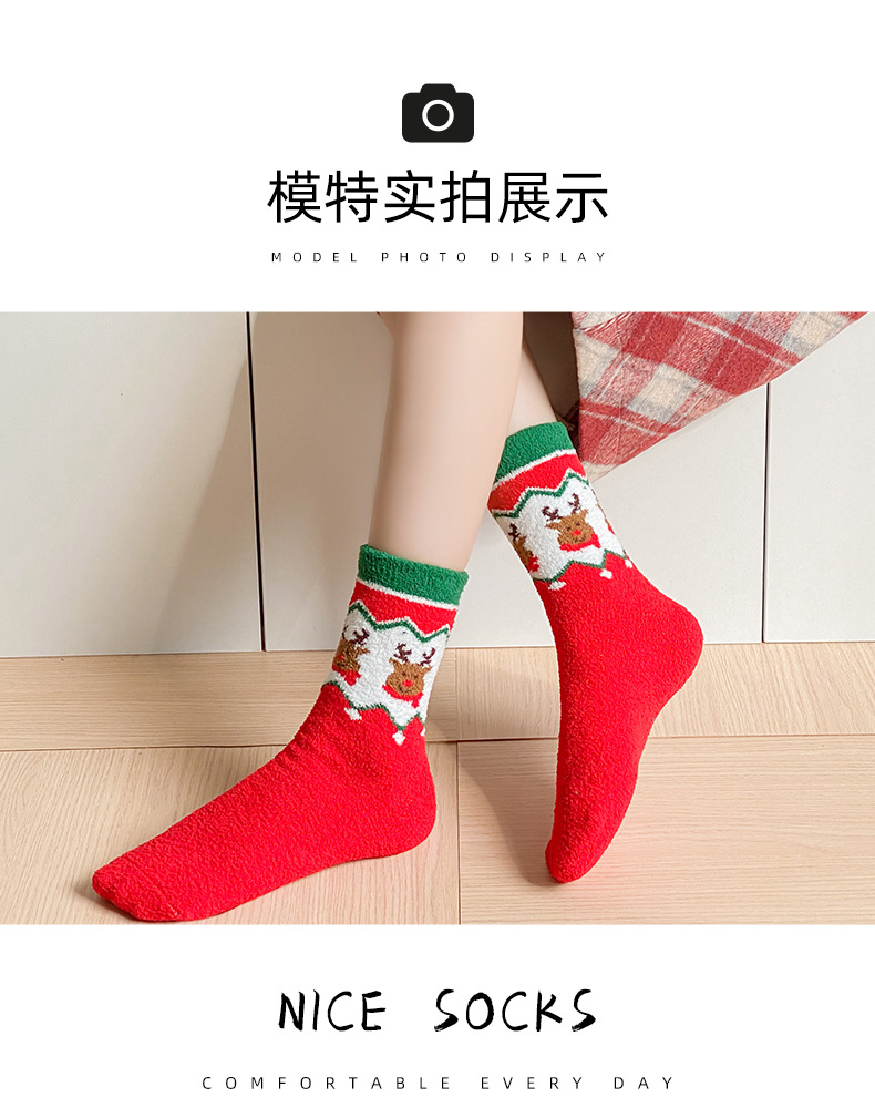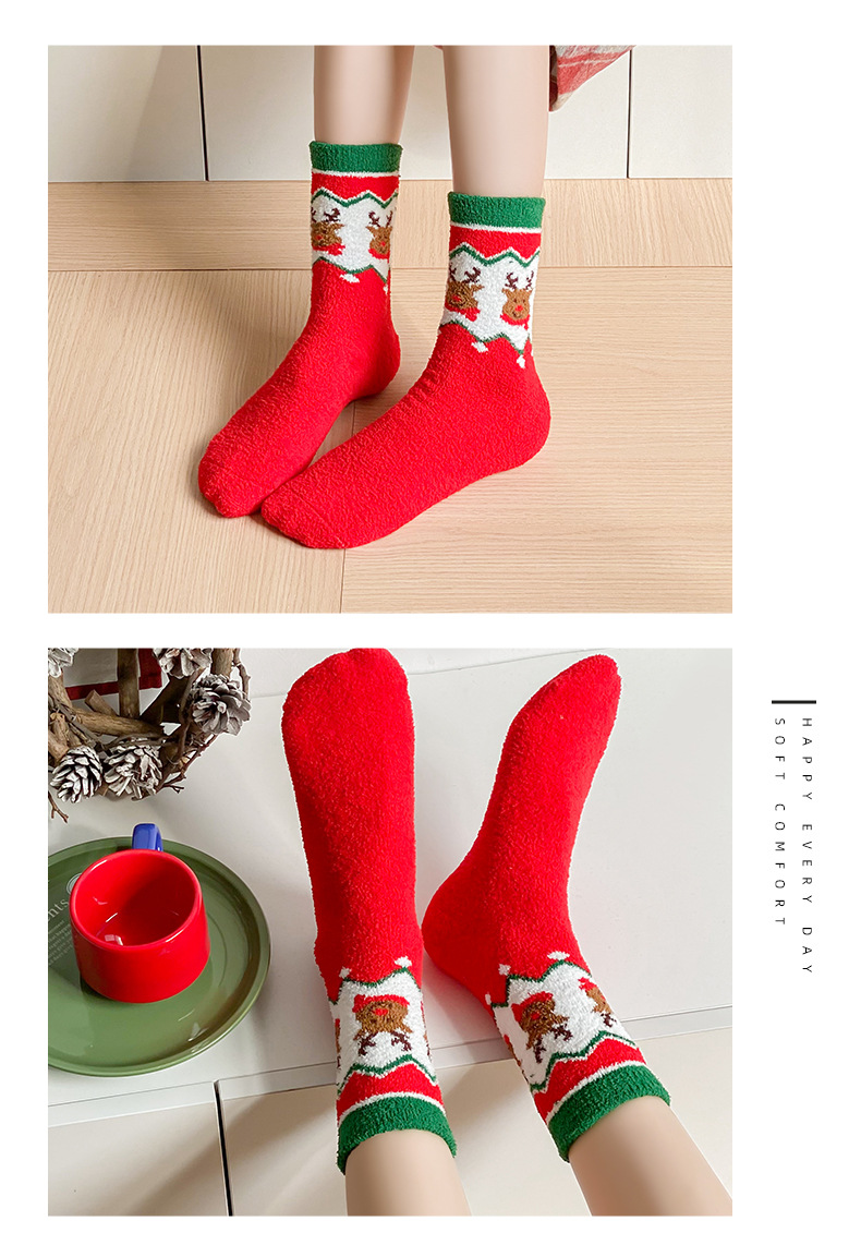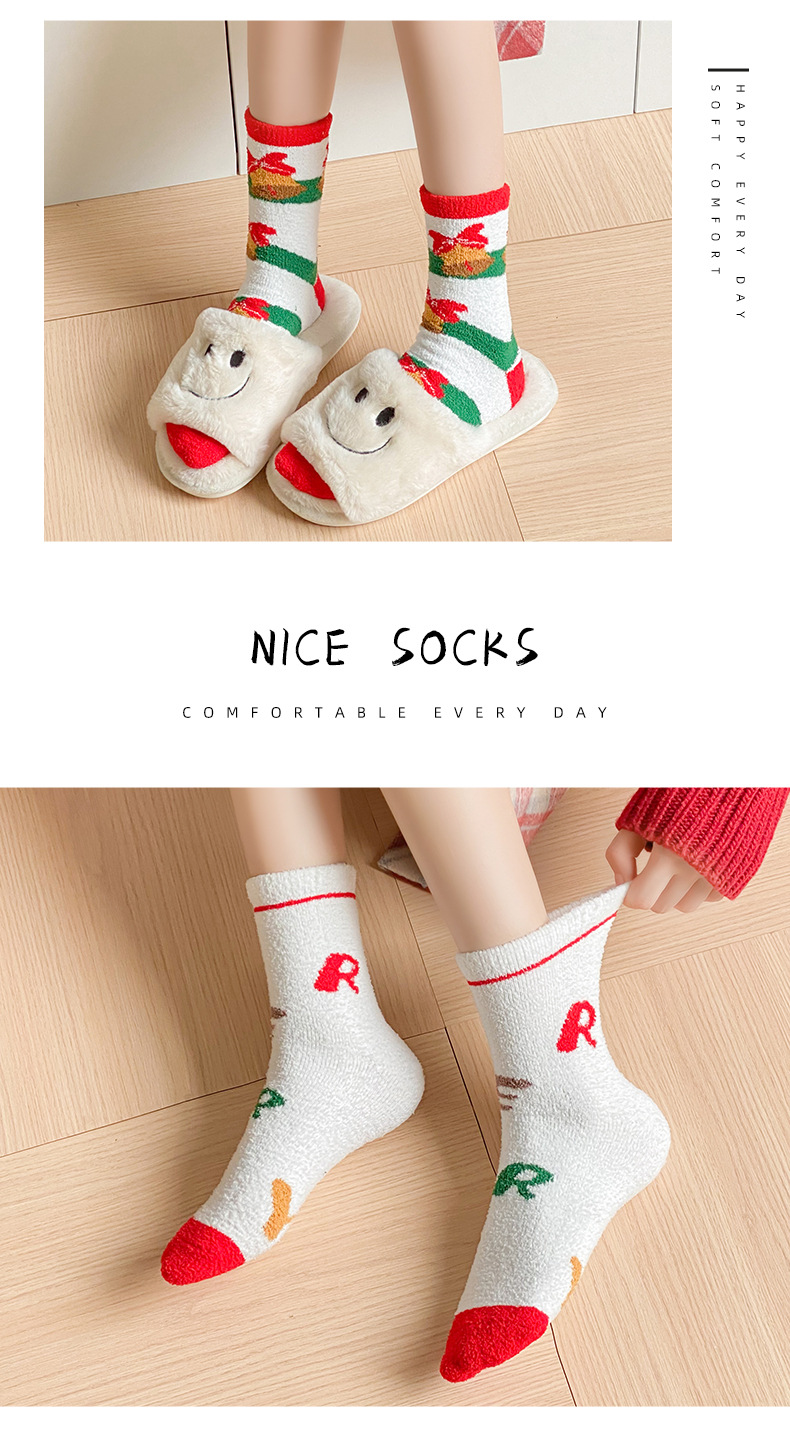Otoño e invierno calcetines de Navidad dibujos animados de las mujeres rectas Navidad bilateral terciopelo serie MEDIADOS DE-becerro lindo hogar calcetines al por mayor