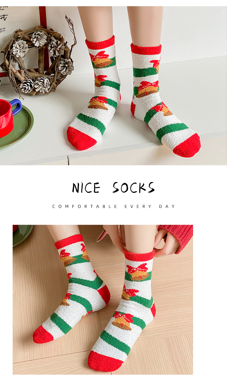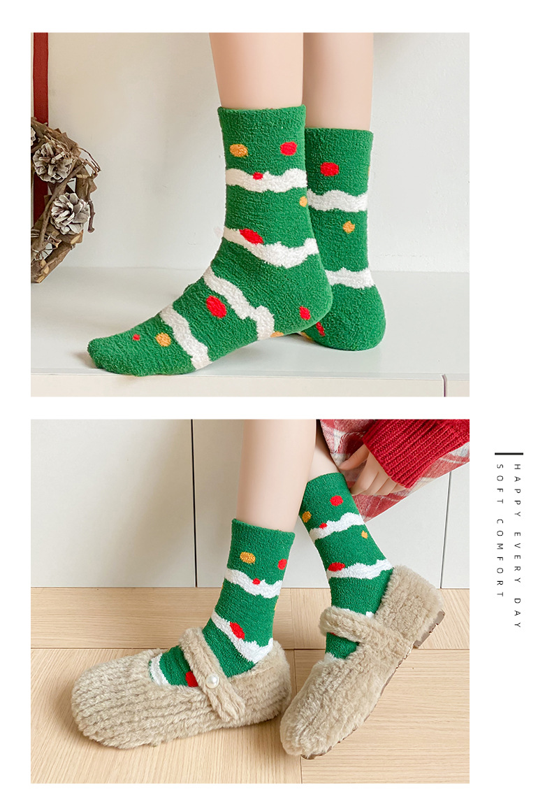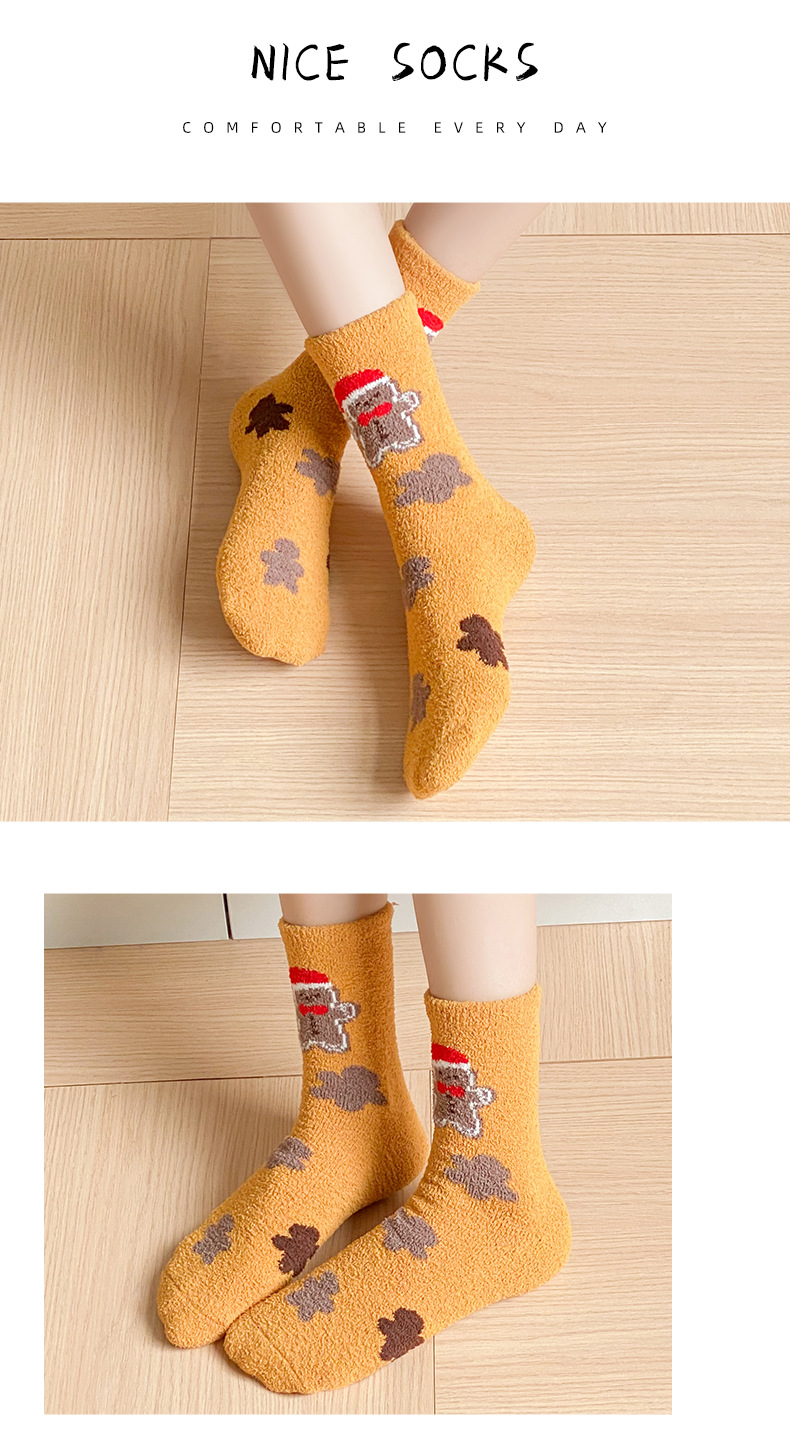 Otoño e invierno calcetines de Navidad dibujos animados de las mujeres rectas Navidad bilateral terciopelo serie MEDIADOS DE-becerro lindo hogar calcetines al por mayor