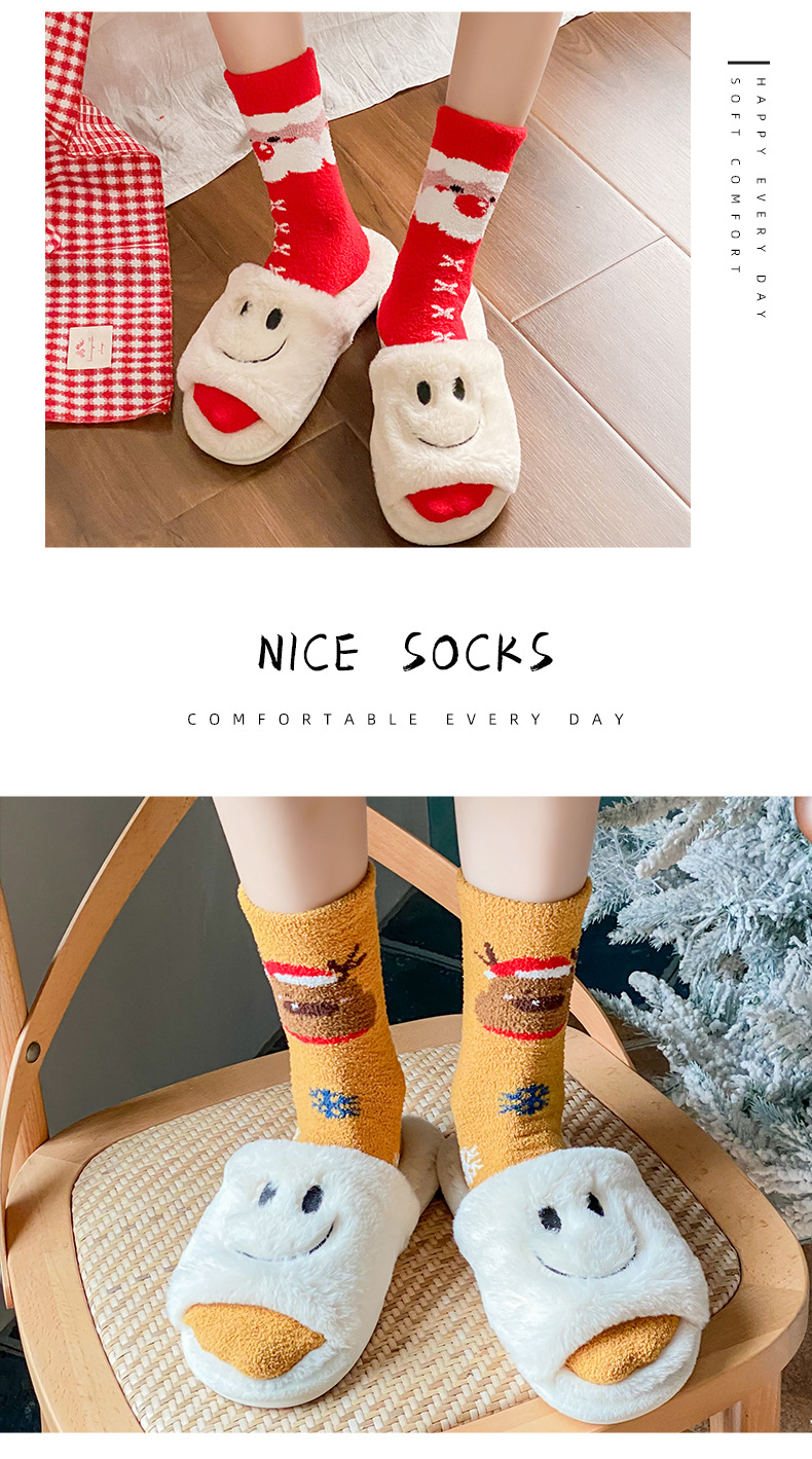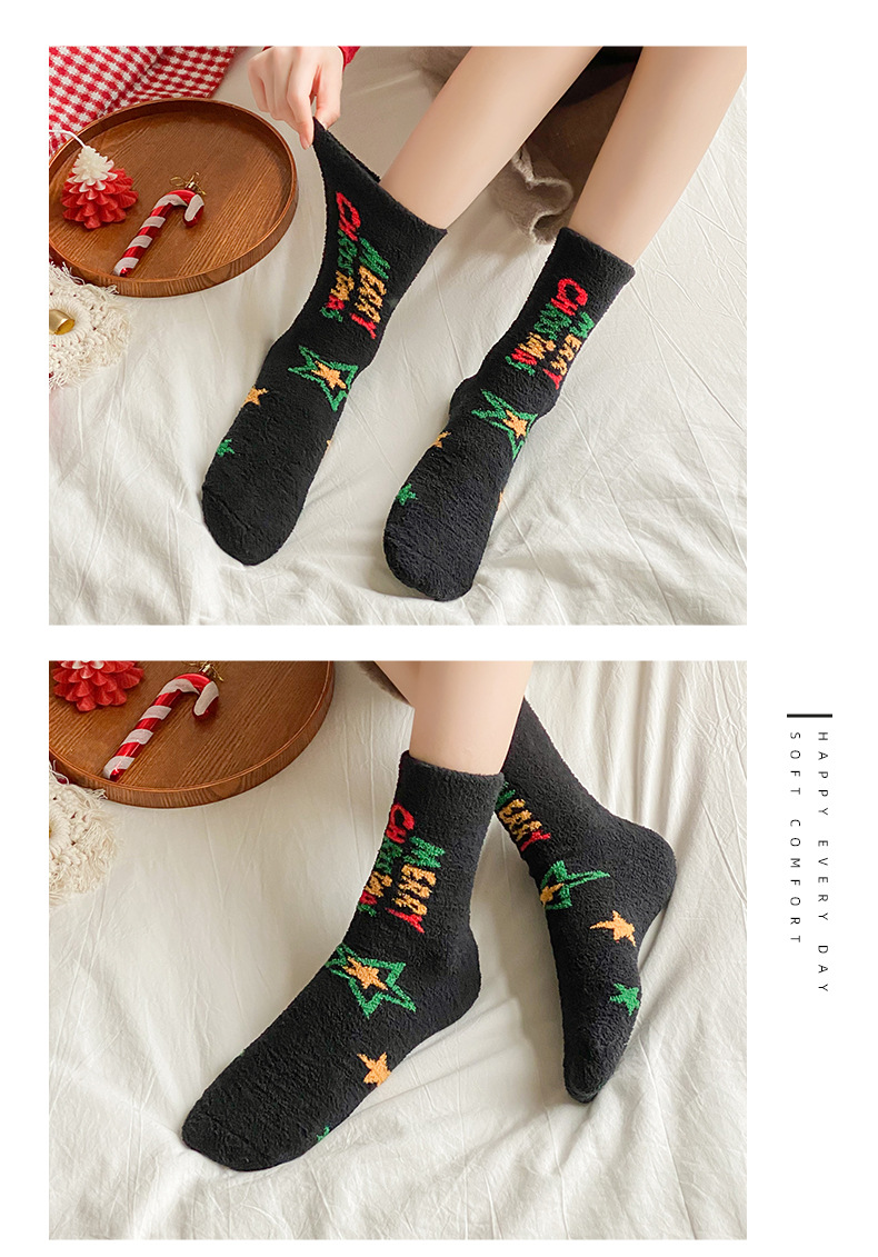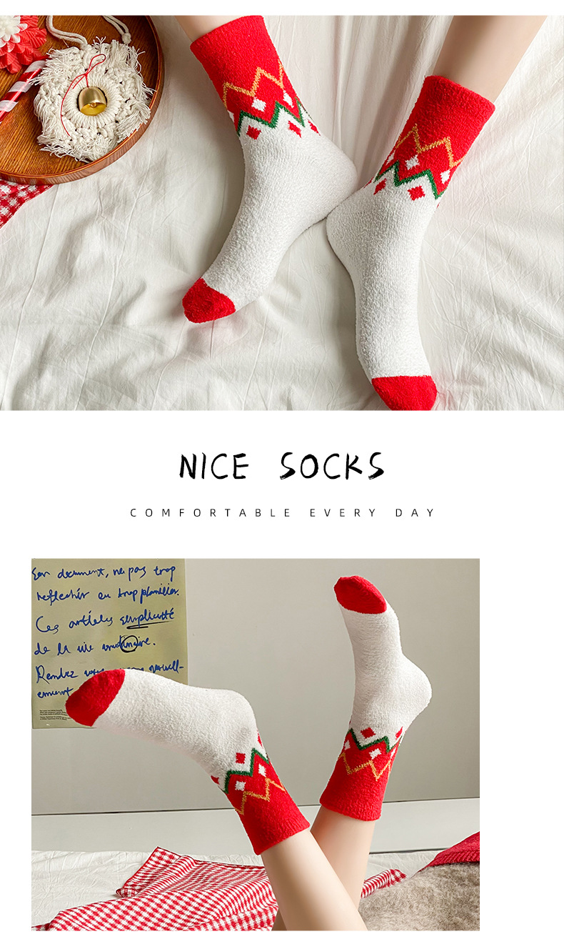 Calcetines de Navidad otoño e invierno nuevo mediados de la pantorrilla recta árbol de Navidad calcetines de terciopelo bilateral dulce damas piso de casa calcetines de Navidad