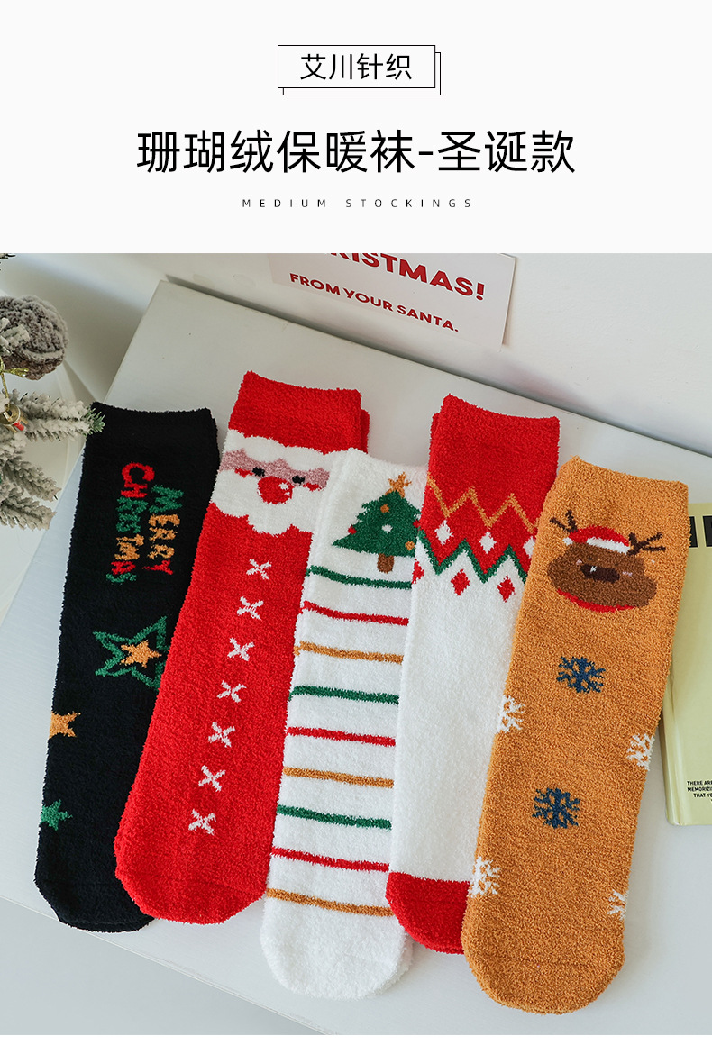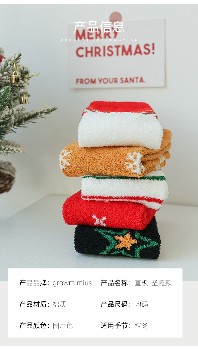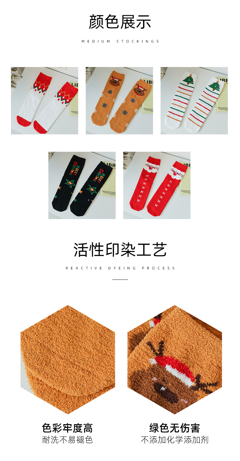 Calcetines de Navidad otoño e invierno nuevo mediados de la pantorrilla recta árbol de Navidad calcetines de terciopelo bilateral dulce damas piso de casa calcetines de Navidad