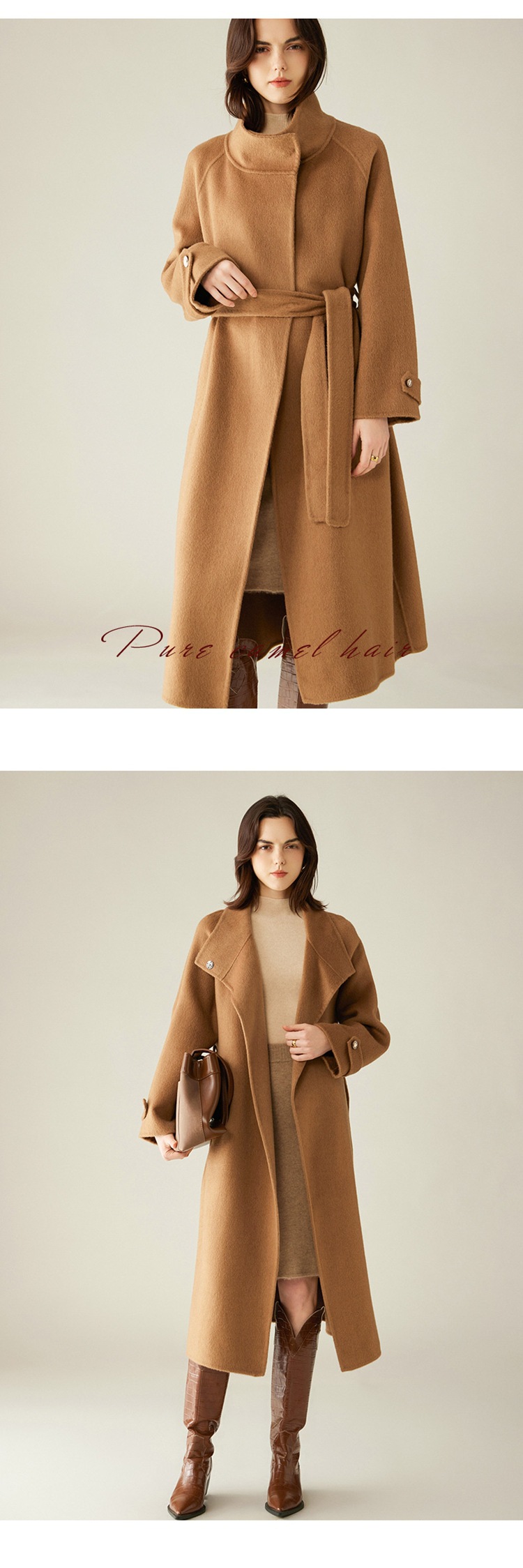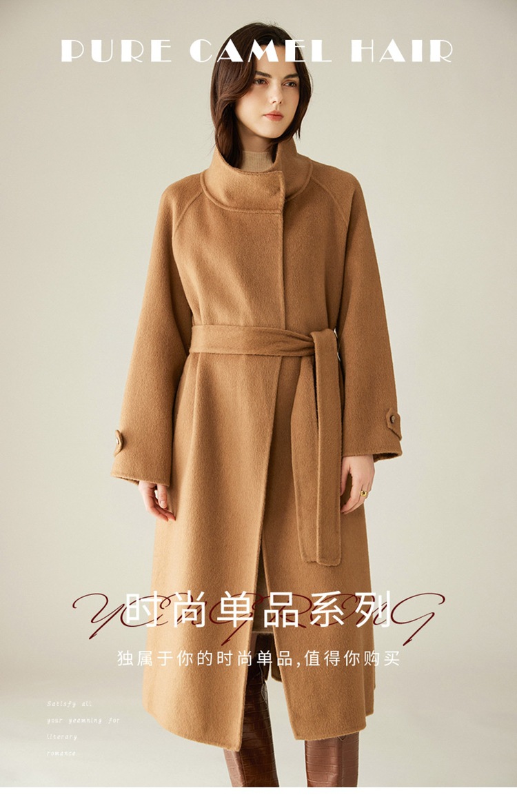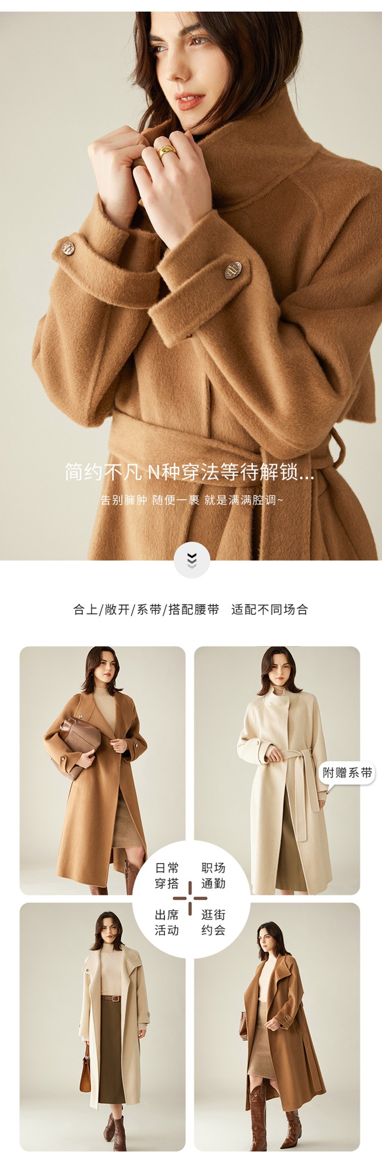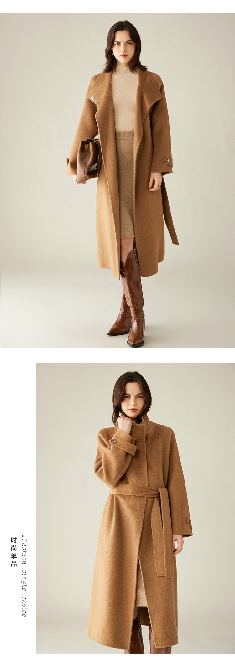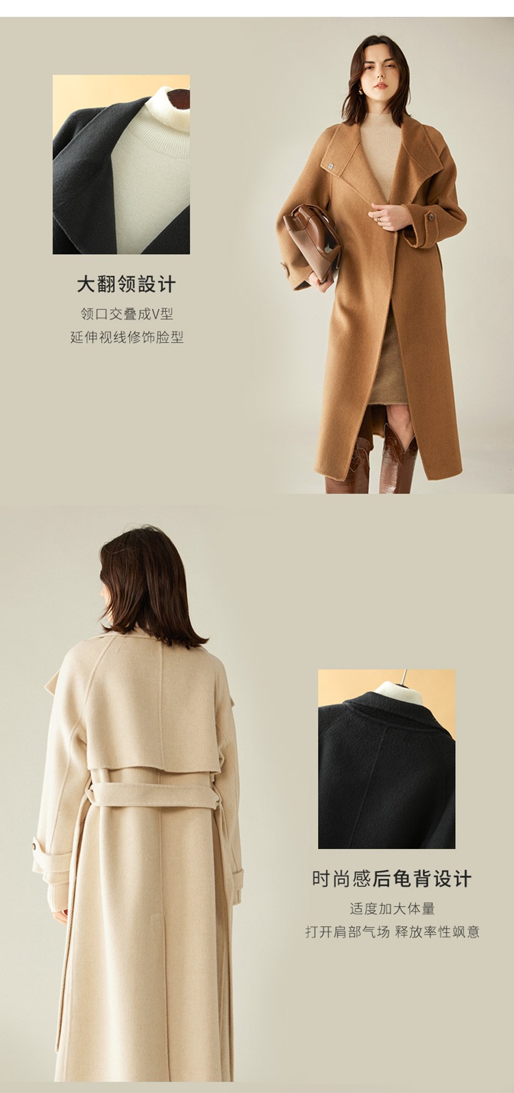 24 otoño e invierno nuevo estilo abrigo de lana de camello mujer de doble cara larga solapa abrigo de lana cálida sensación de lana de alta gama