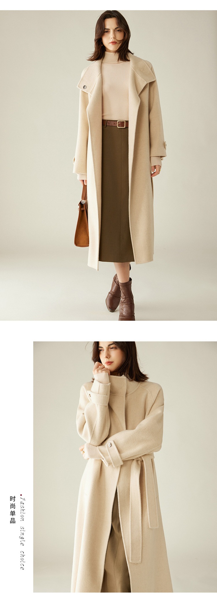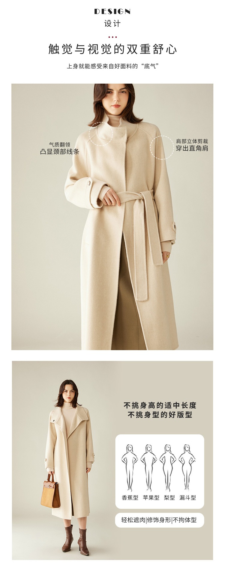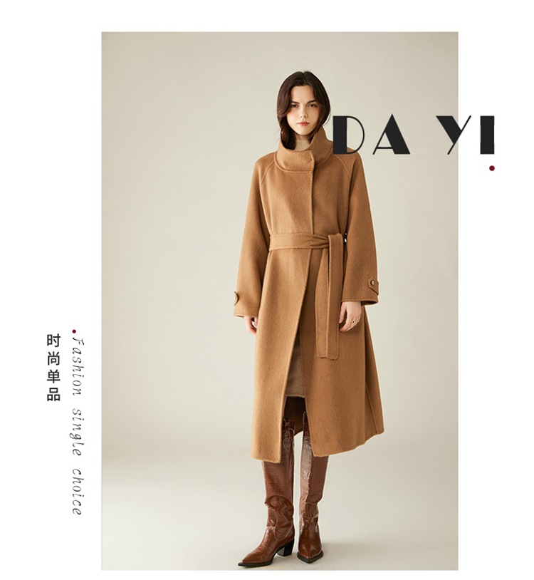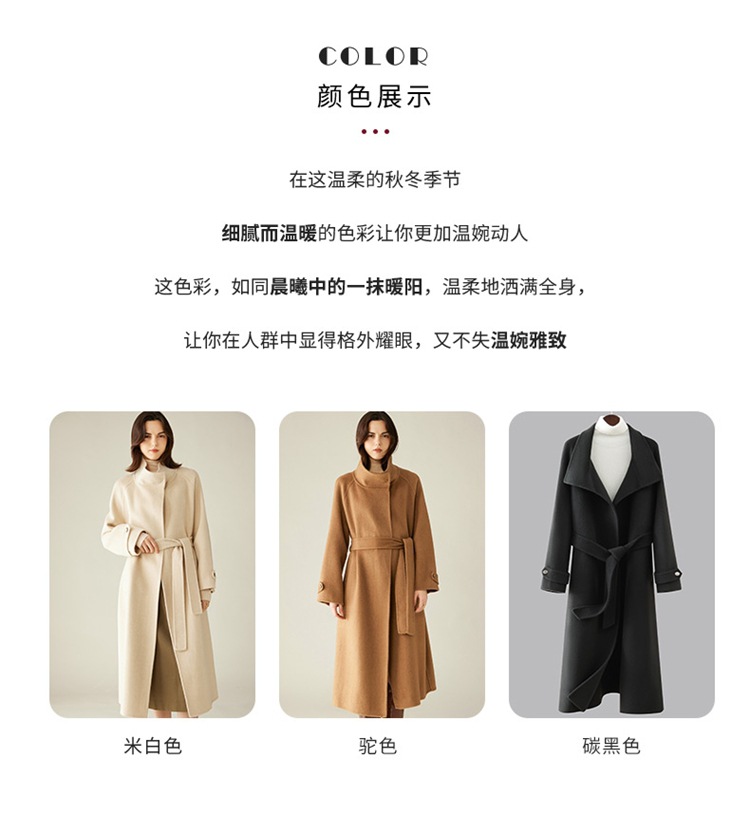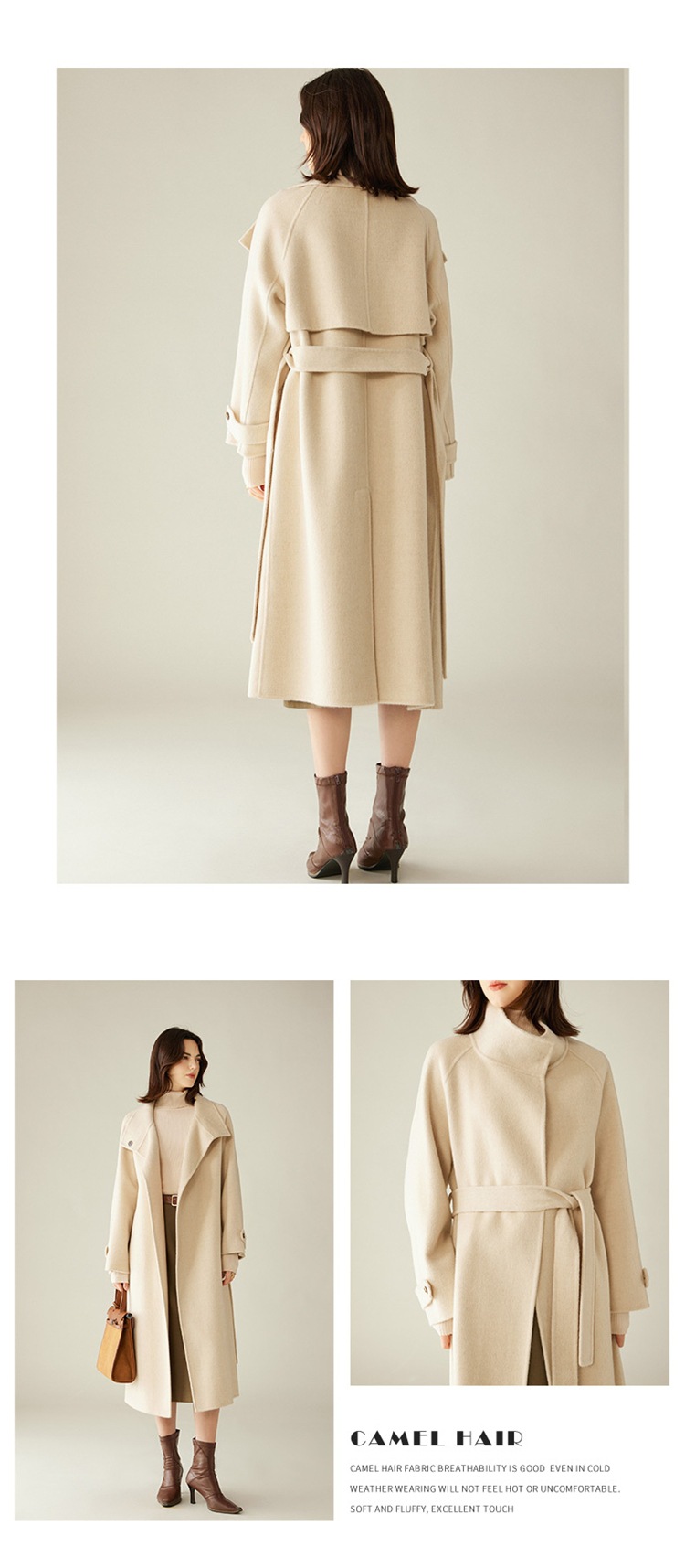 24 otoño e invierno nuevo estilo abrigo de lana de camello mujer de doble cara larga solapa abrigo de lana cálida sensación de lana de alta gama