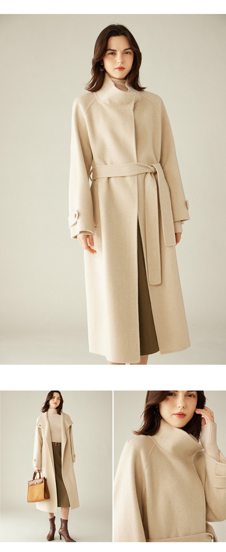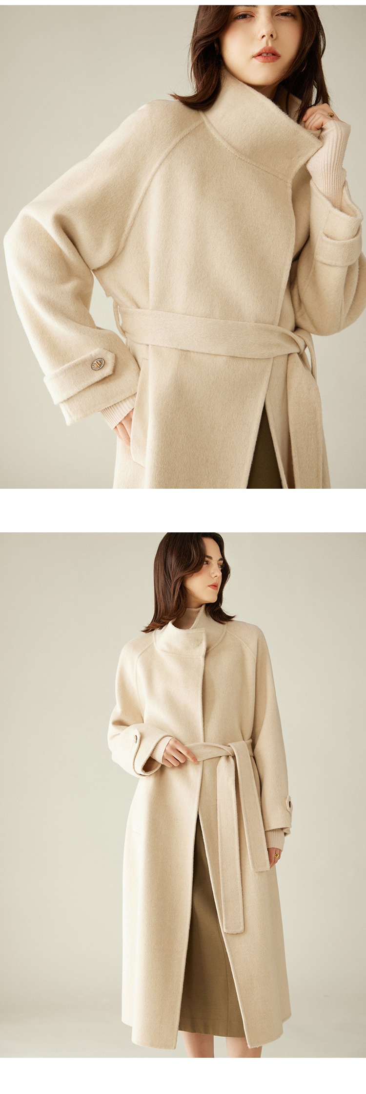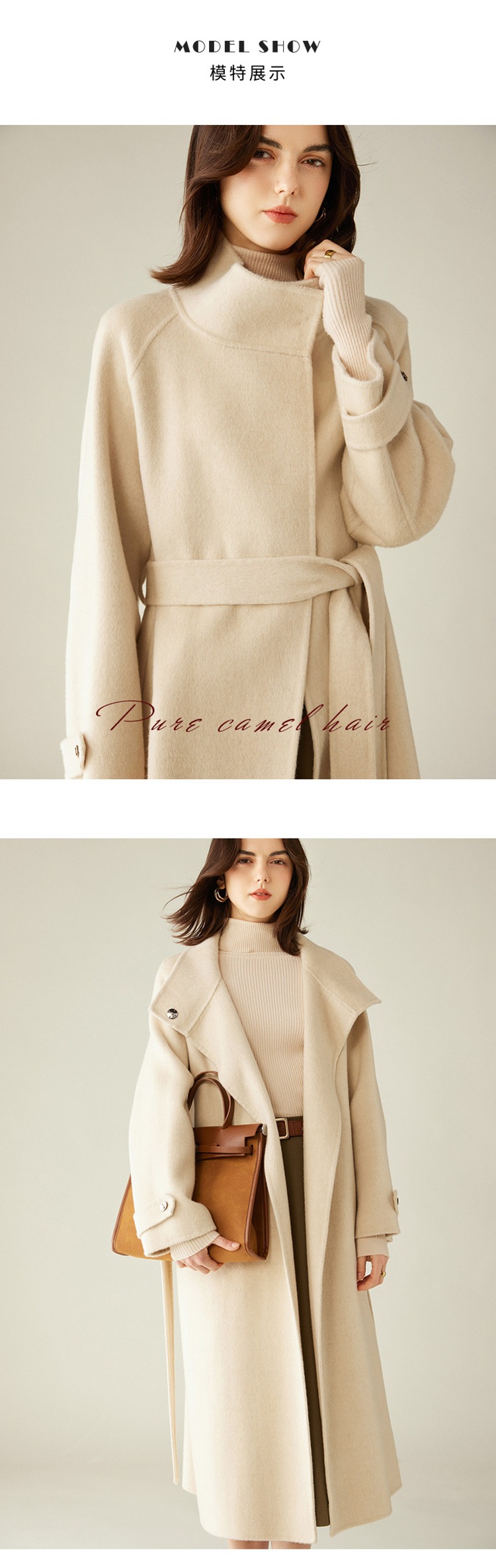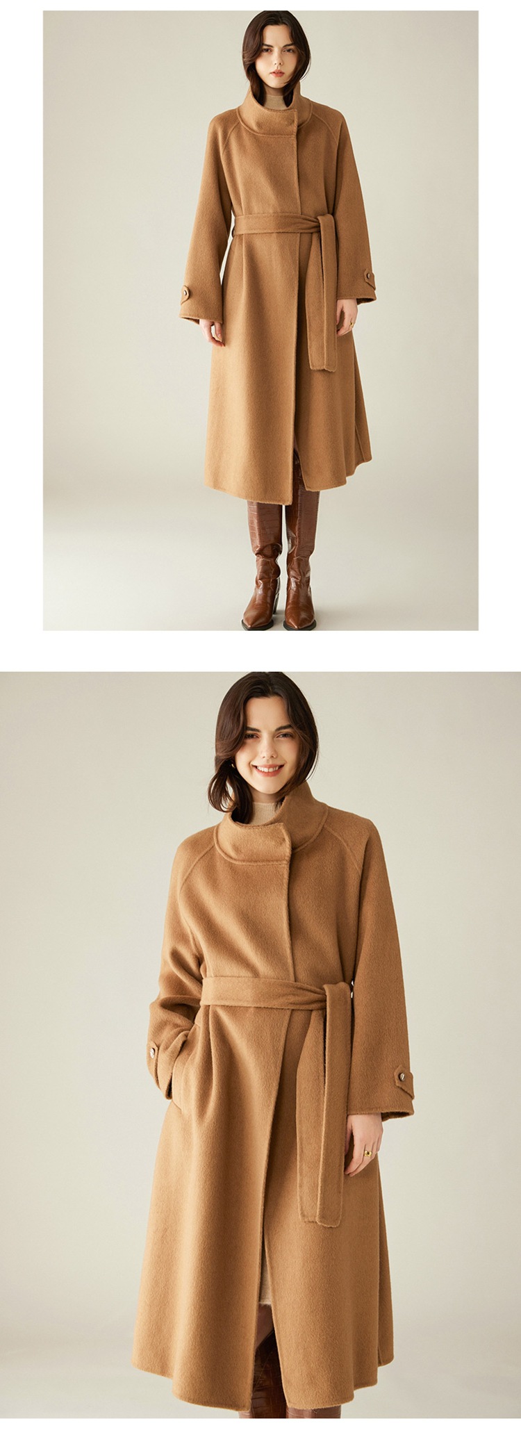 24 otoño e invierno nuevo estilo abrigo de lana de camello mujer de doble cara larga solapa abrigo de lana cálida sensación de lana de alta gama