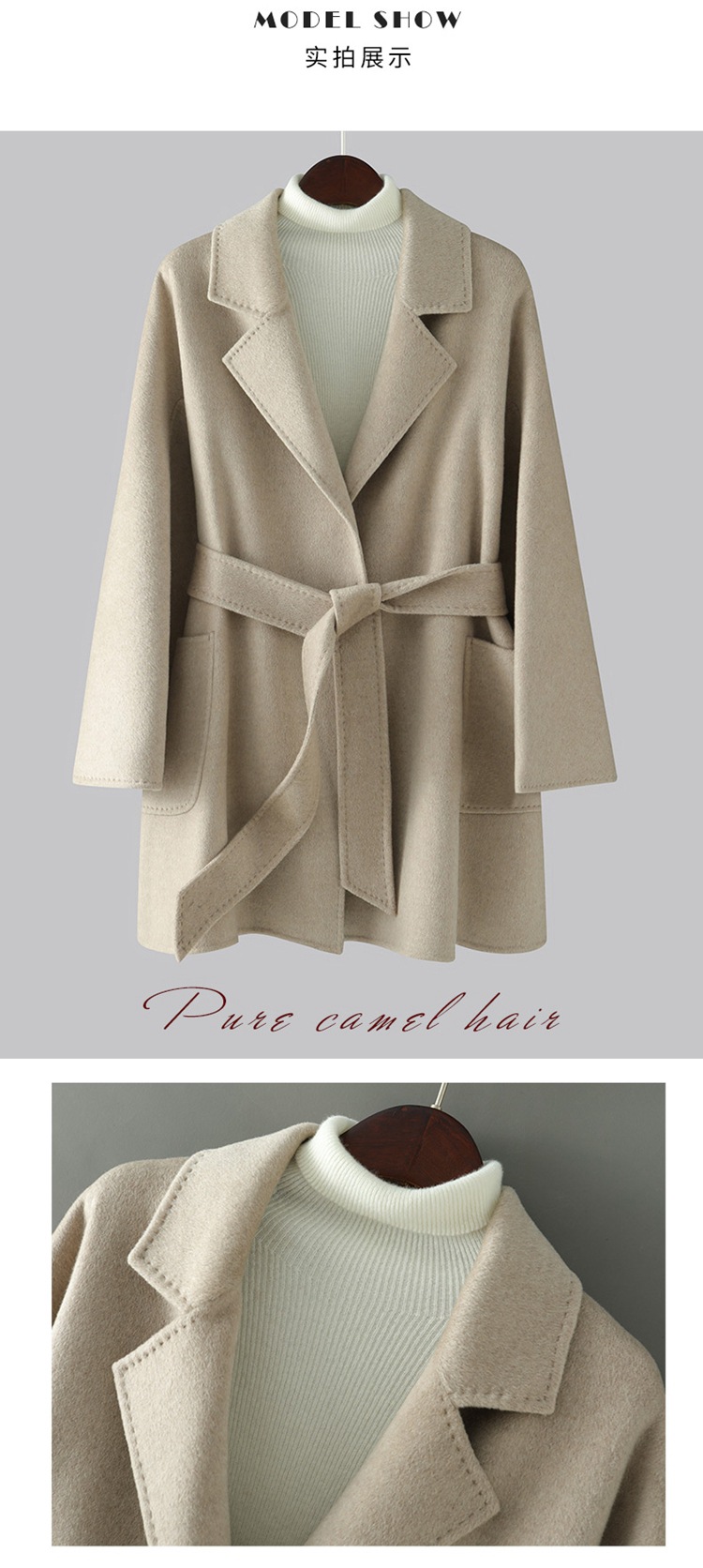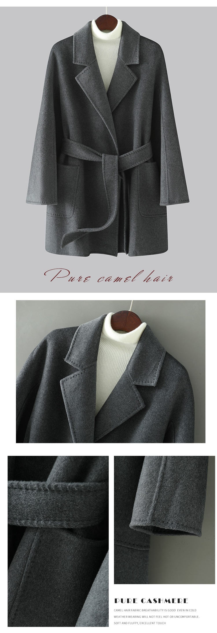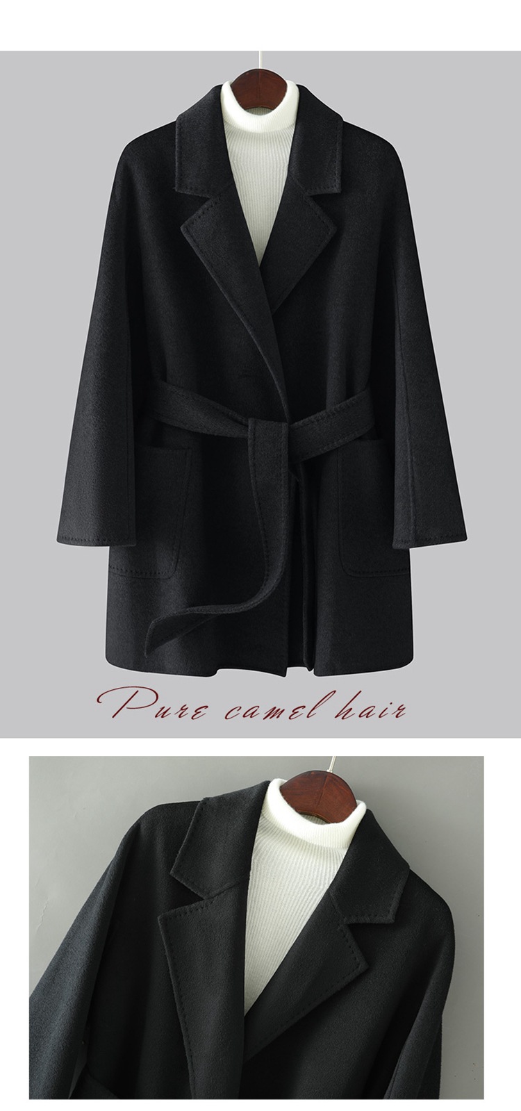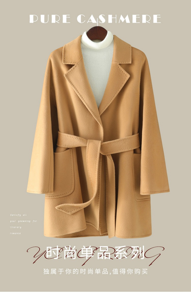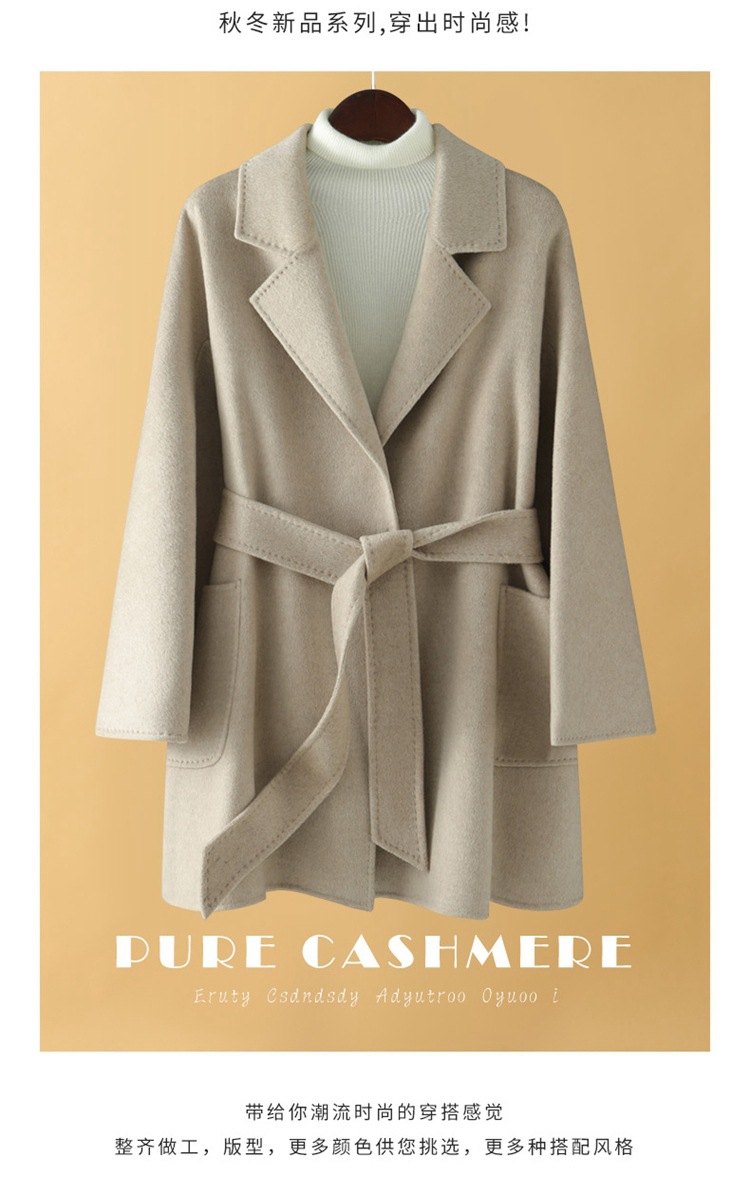 Nuevo abrigo largo de lana de doble faz de cachemira 100% pura para otoño e invierno, para personas pequeñas, versátil y elegante para ir al trabajo.
