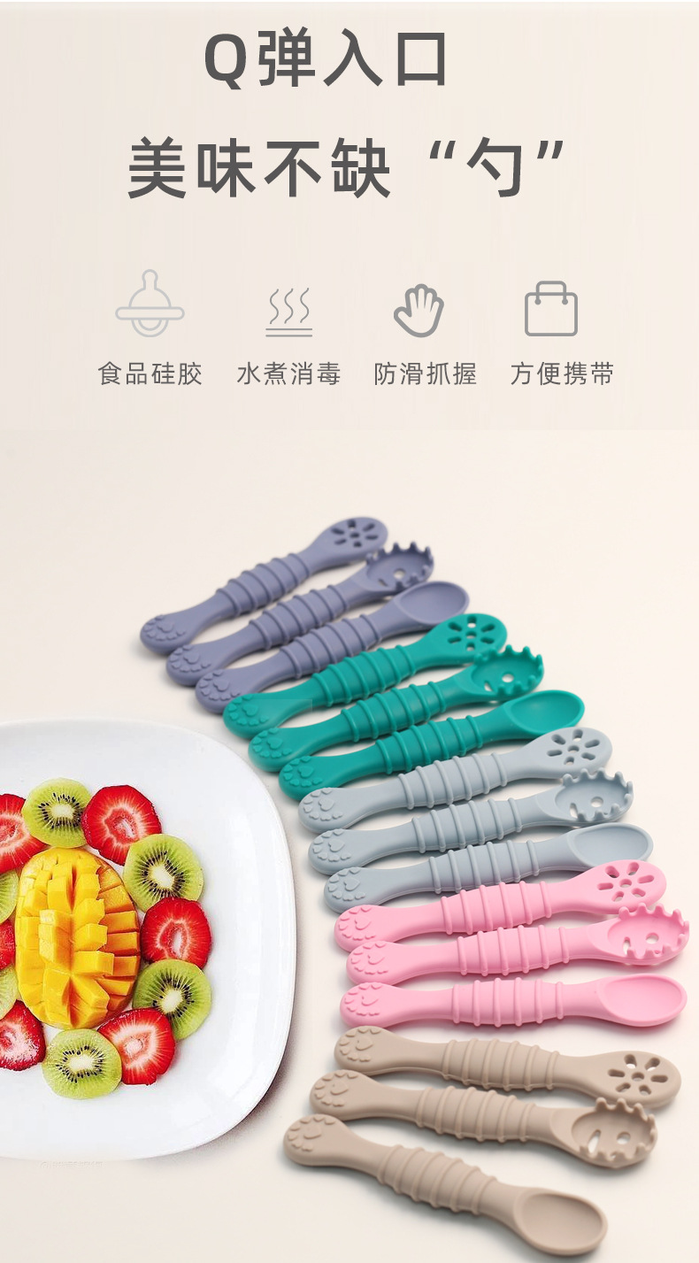 Ventas directas de fábrica cuchara de silicona para bebés cuchara de silicona para niños cuchara de silicona de alto aspecto cuchara de suplemento alimenticio materno e infantil cuchara de fideos