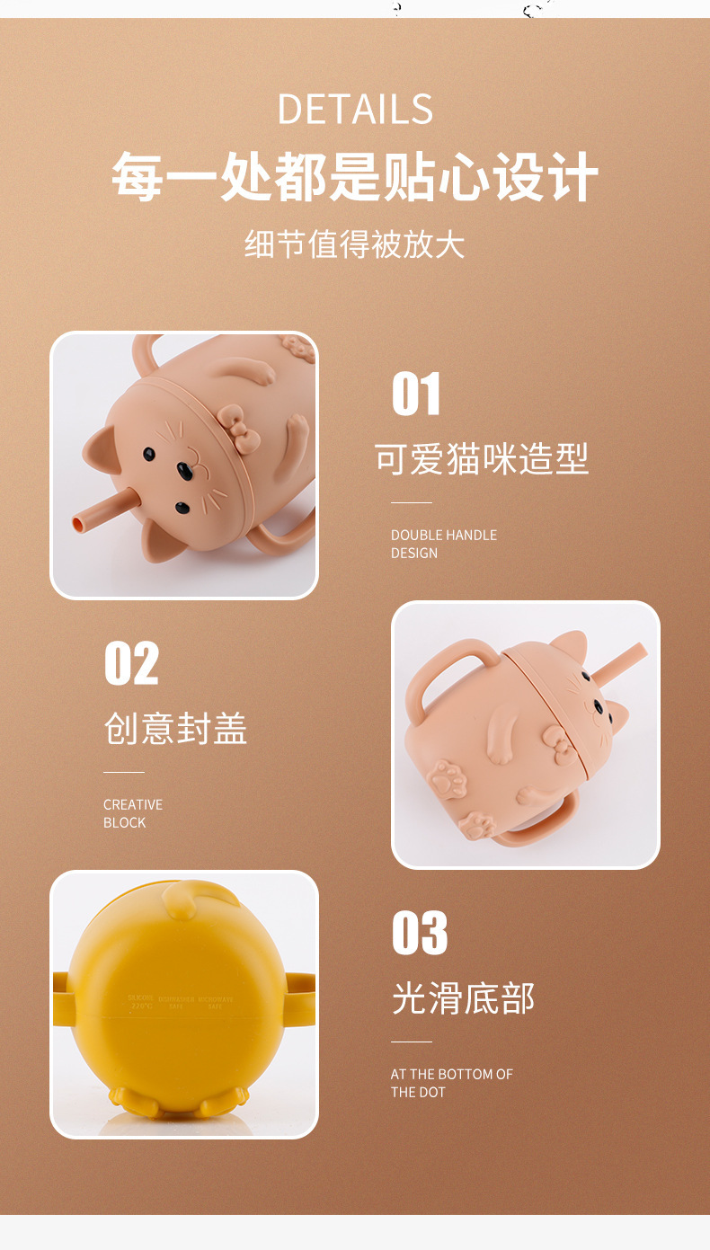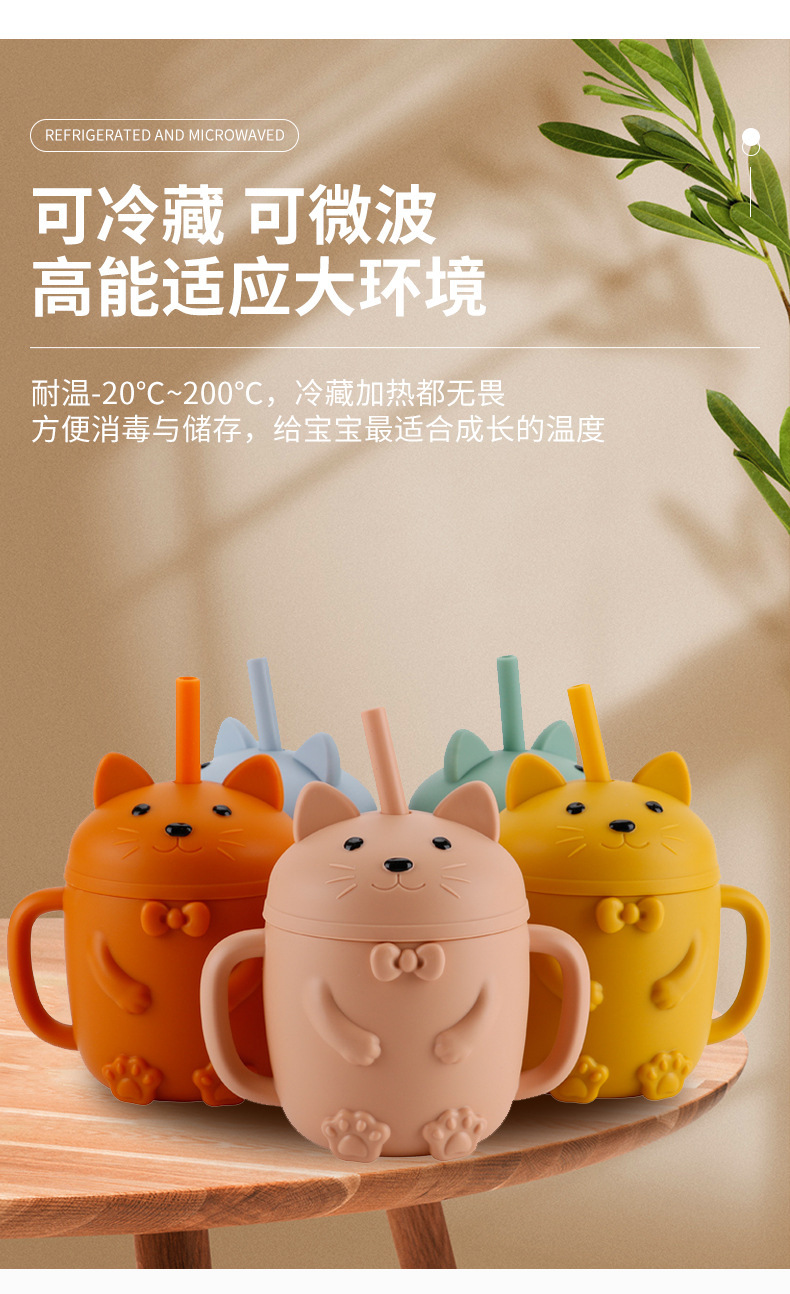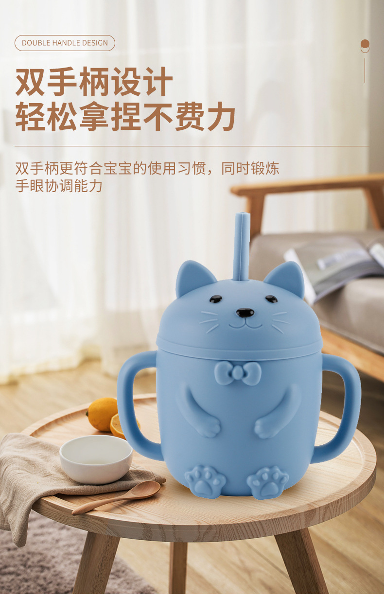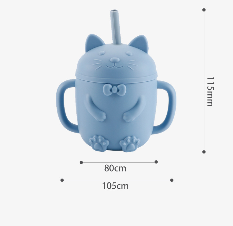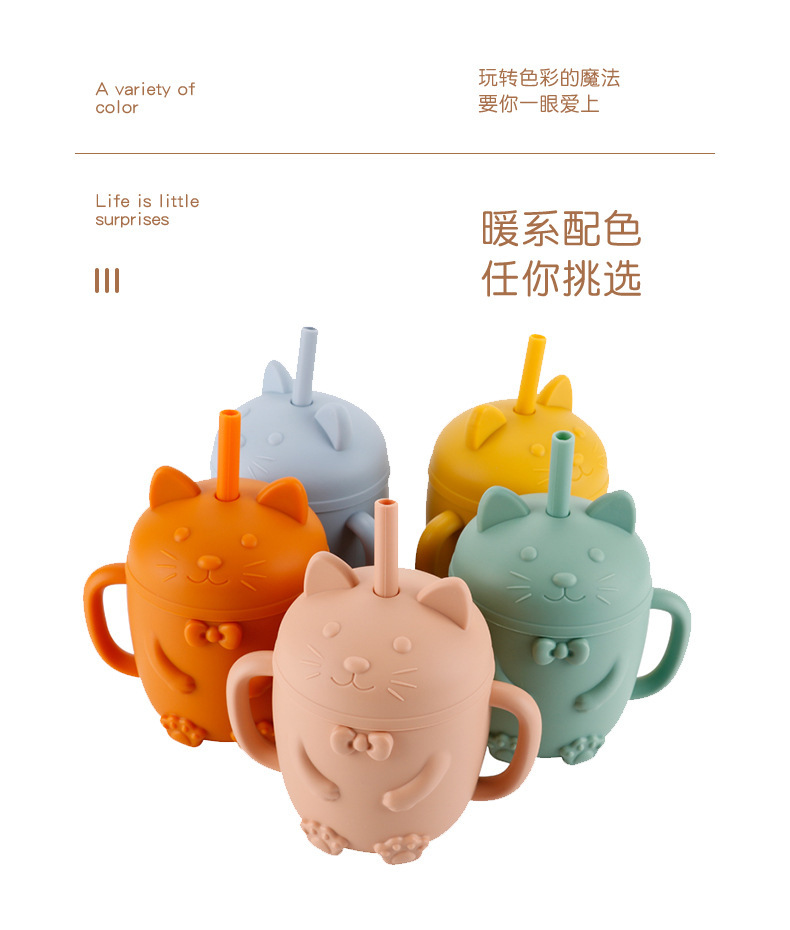 Cross-Border New Baby Cat Cup de silicona BPA GRATIS suplemento alimenticio taza de paja taza de bebida resistente a la caída gato de dibujos animados