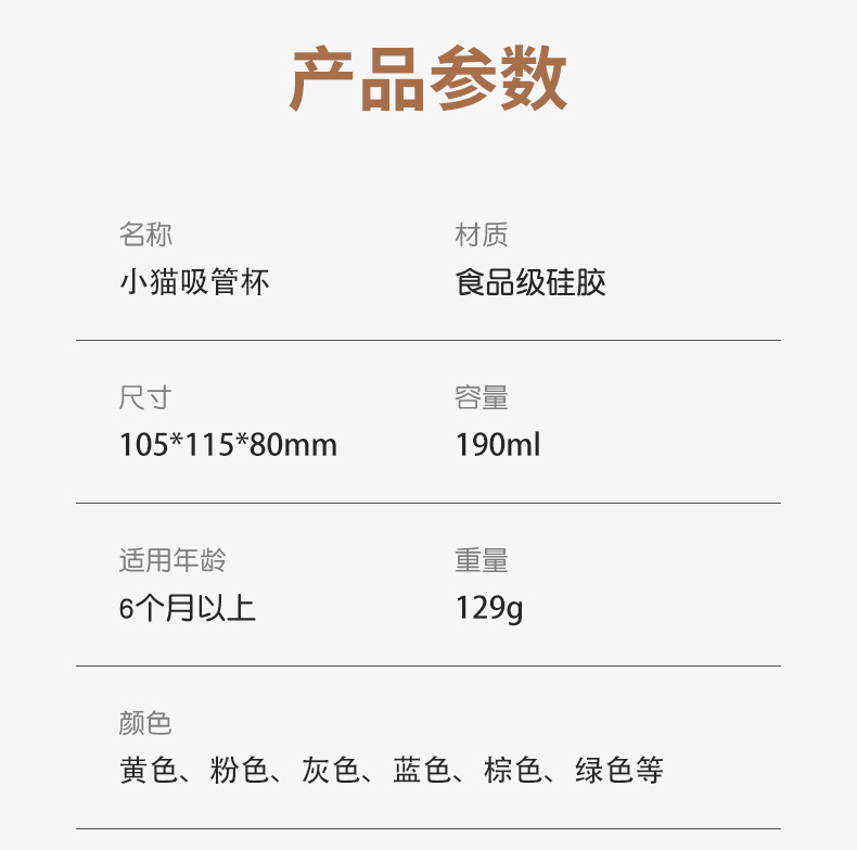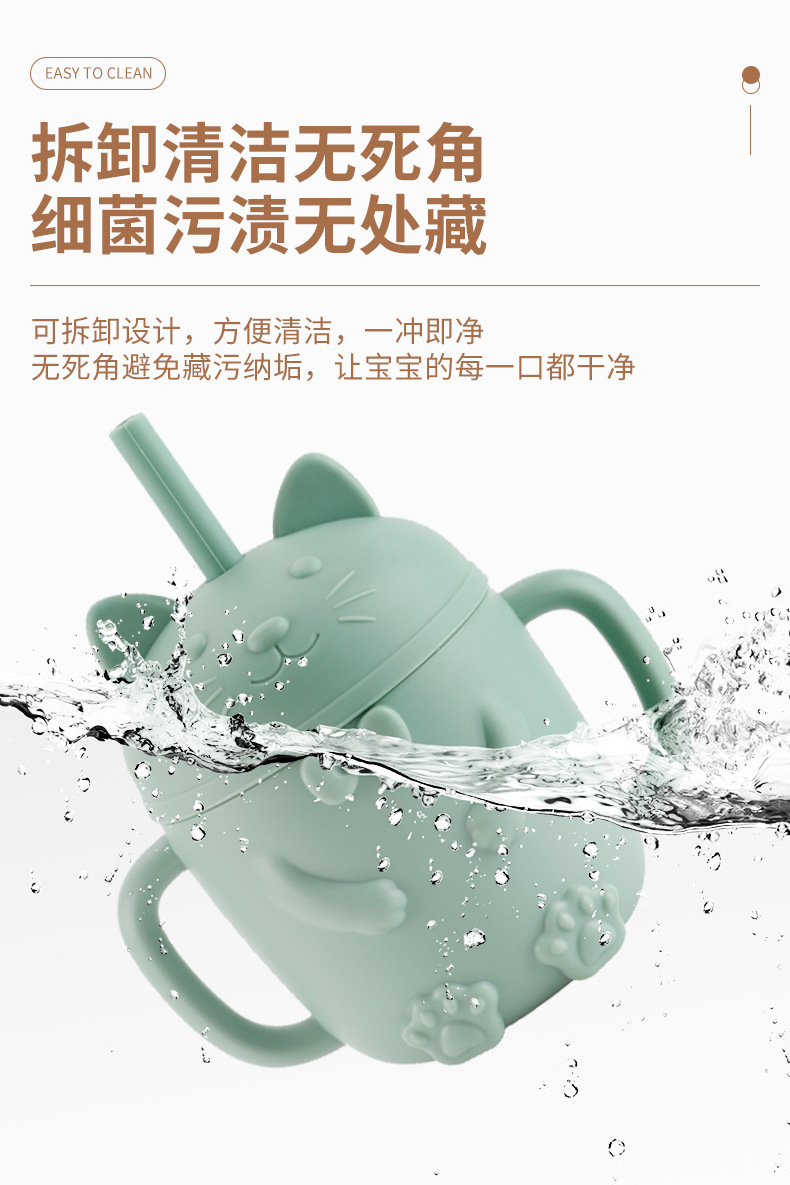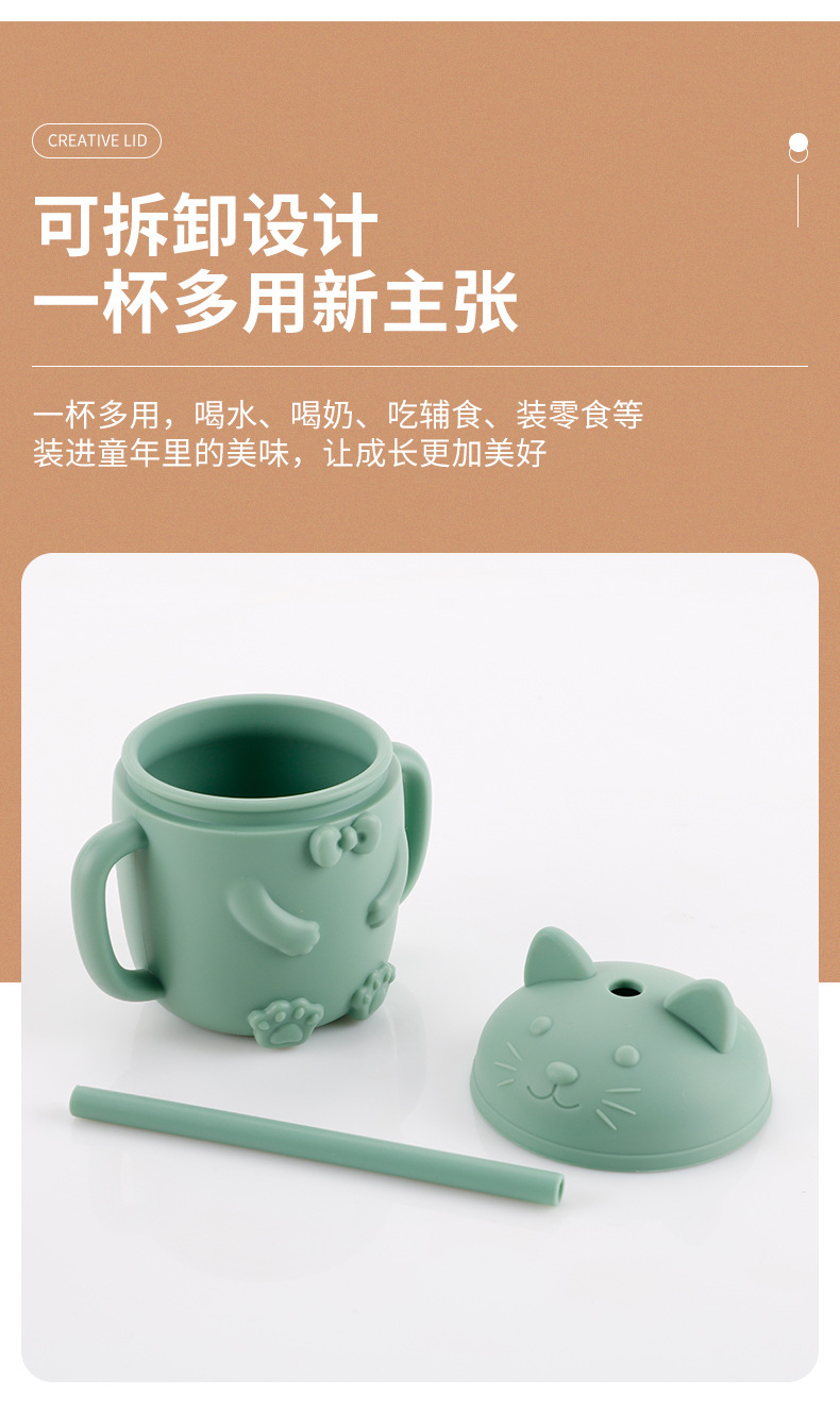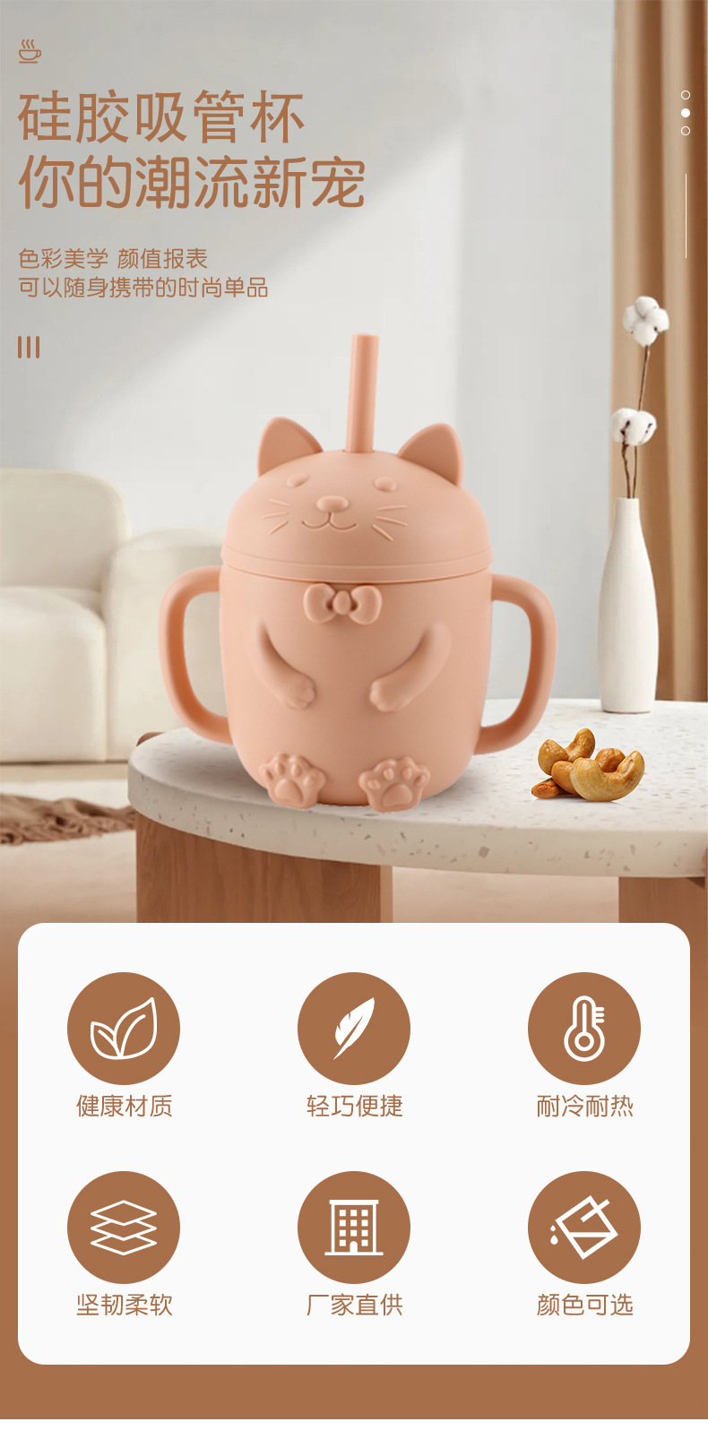 Cross-Border New Baby Cat Cup de silicona BPA GRATIS suplemento alimenticio taza de paja taza de bebida resistente a la caída gato de dibujos animados