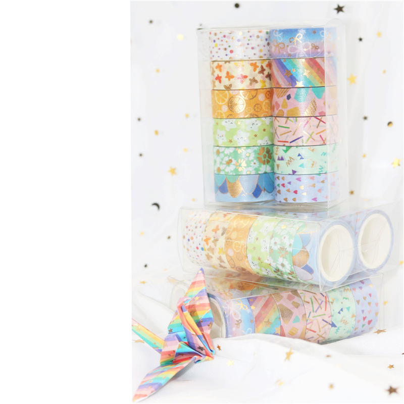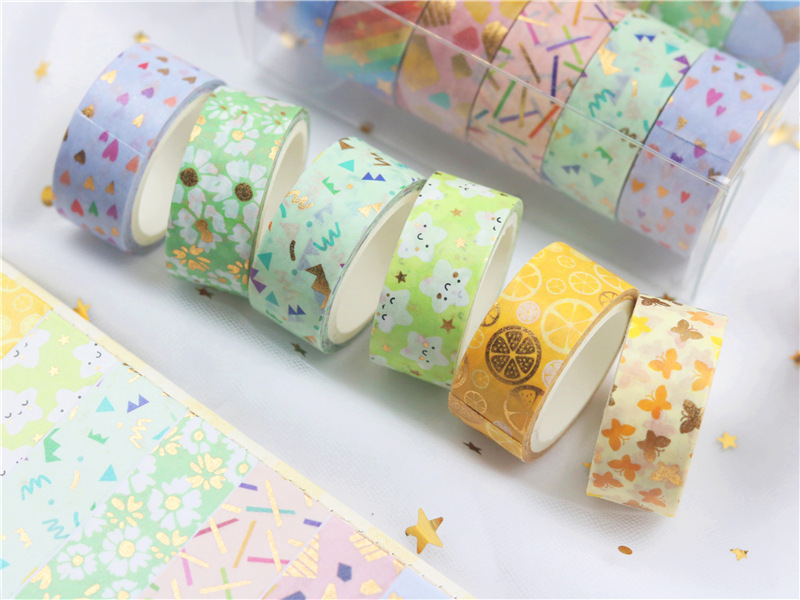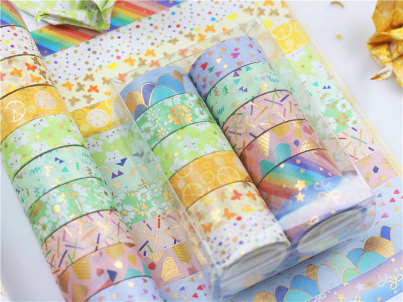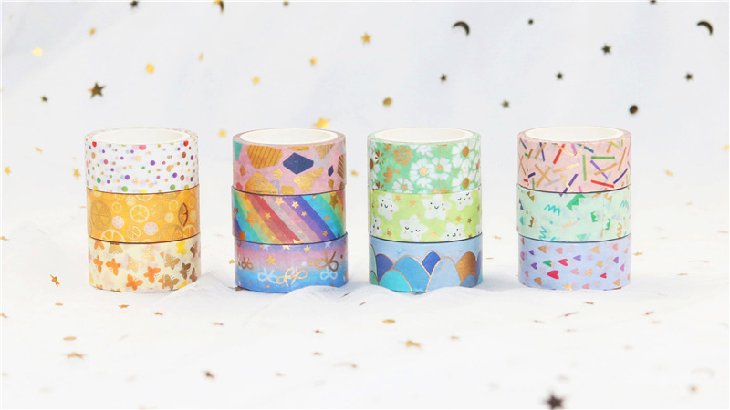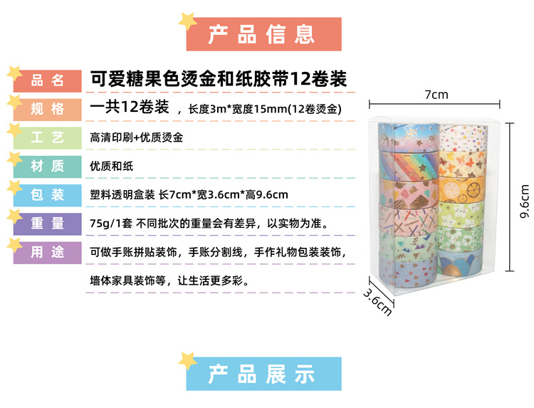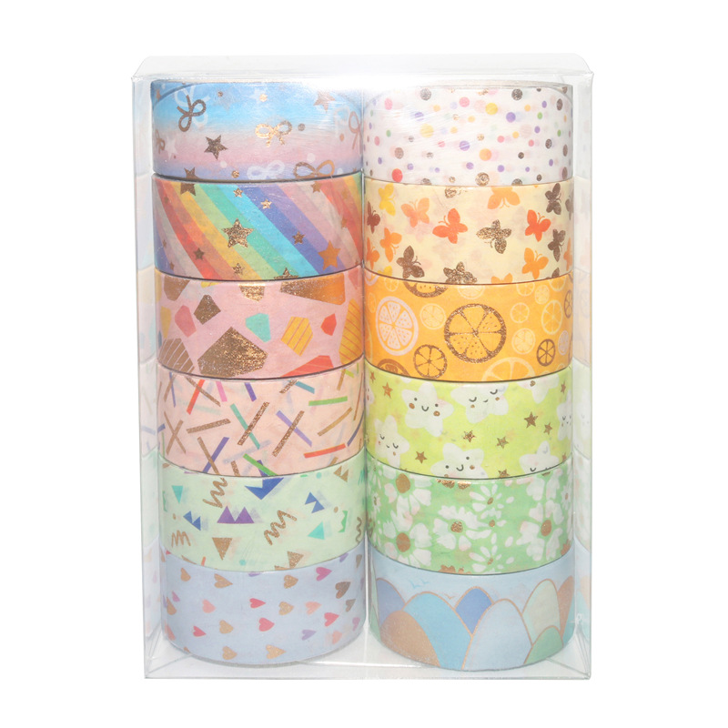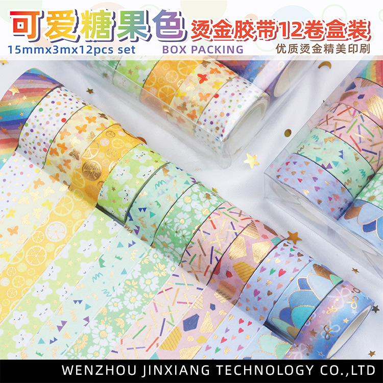 12 rollos en caja de color caramelo lindo bronceado y cinta de diario de papel bricolaje diario decoración de la frontera y cinta de papel
