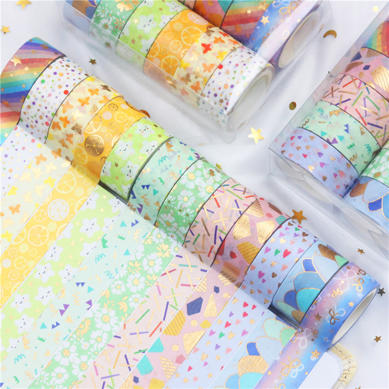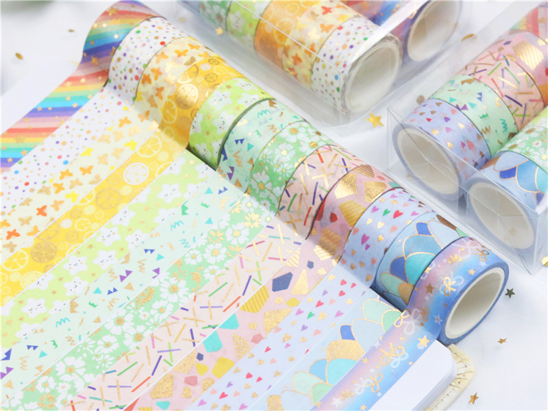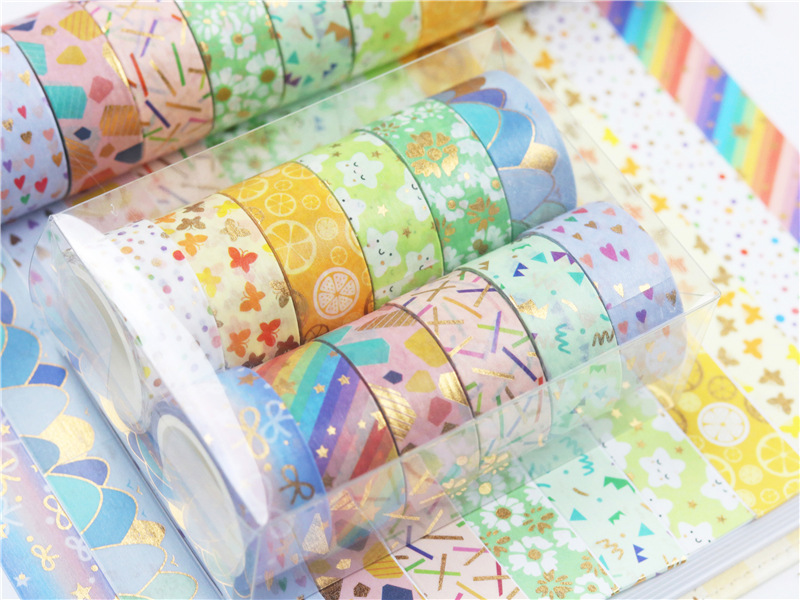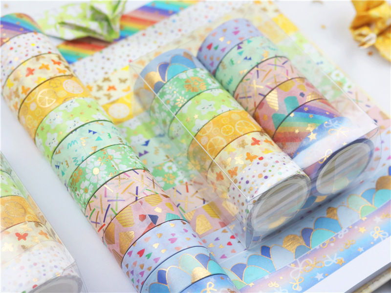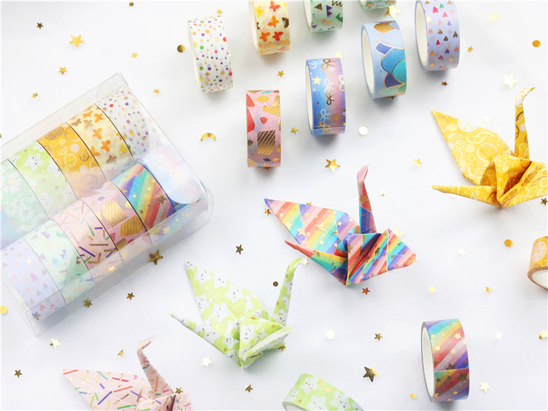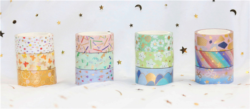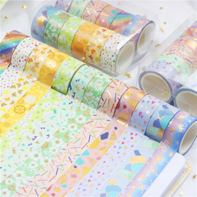 12 rollos en caja de color caramelo lindo bronceado y cinta de diario de papel bricolaje diario decoración de la frontera y cinta de papel
