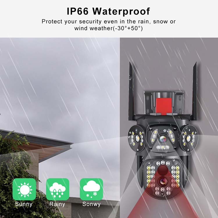 V380 de tres pantallas 4 millones de cámaras de vigilancia 4G, visión nocturna HD remota, WiFi inalámbrico al aire libre, vigilancia a prueba de agua