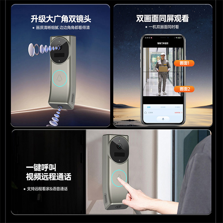 Doble lente doble pantalla inalámbrica batería wifi campana remota un botón llamada visual campana bidireccional intercom HD