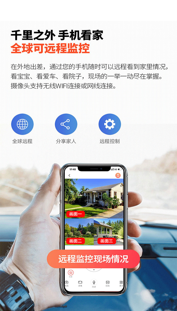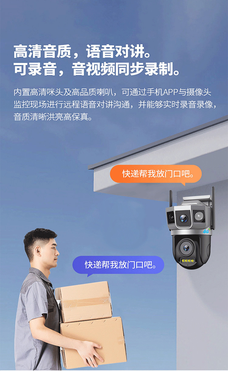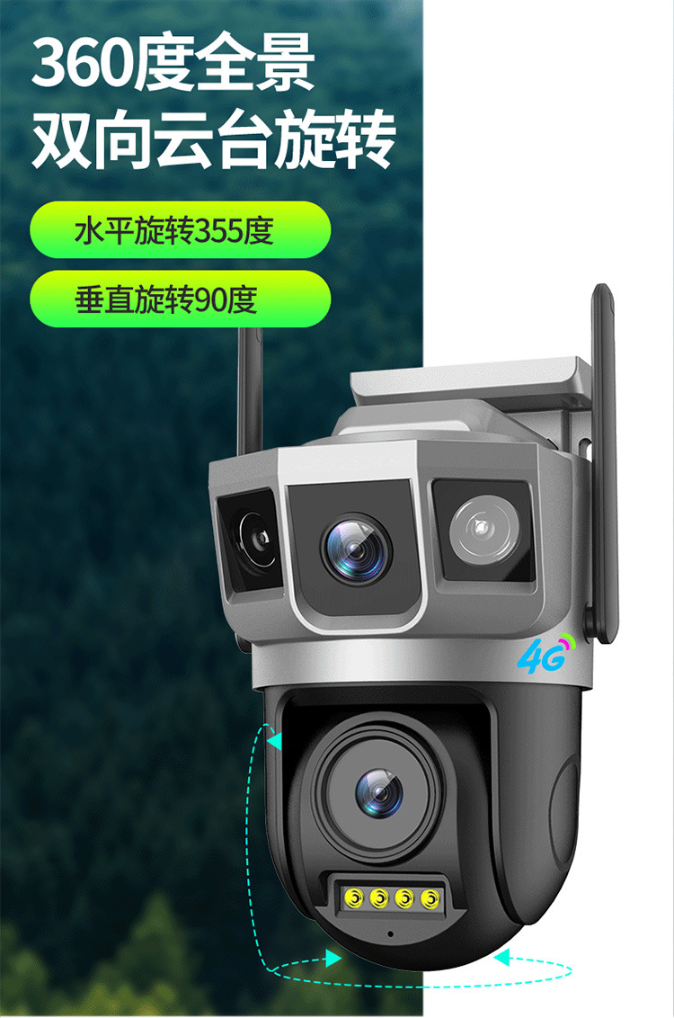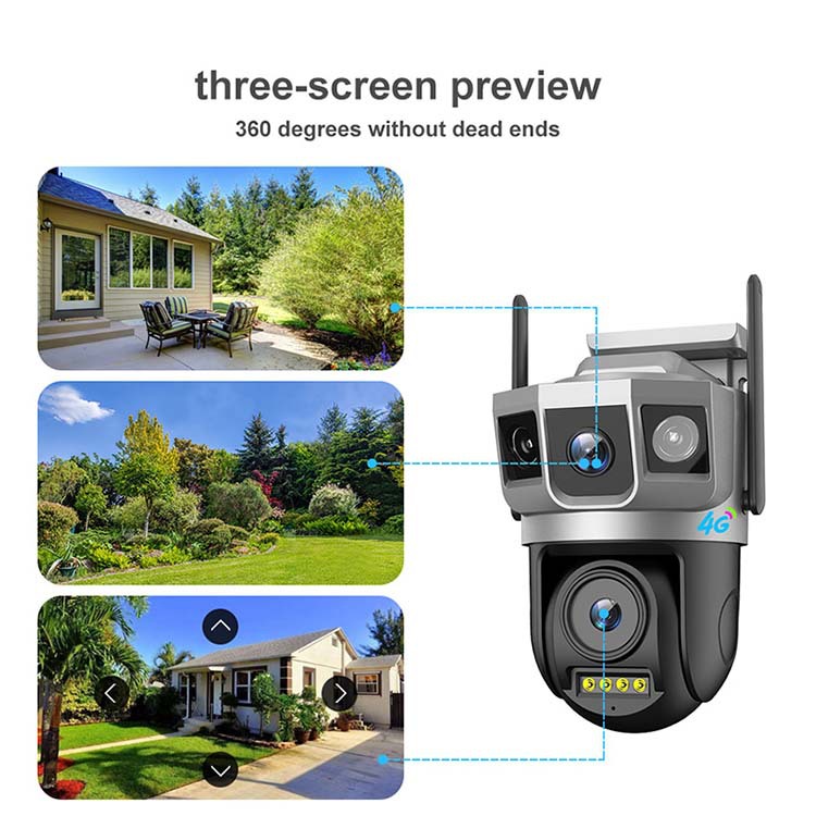 V380 cámara de monitoreo wifi inalámbrica de tres imágenes 360 grados panorámico de visión nocturna HD 4G