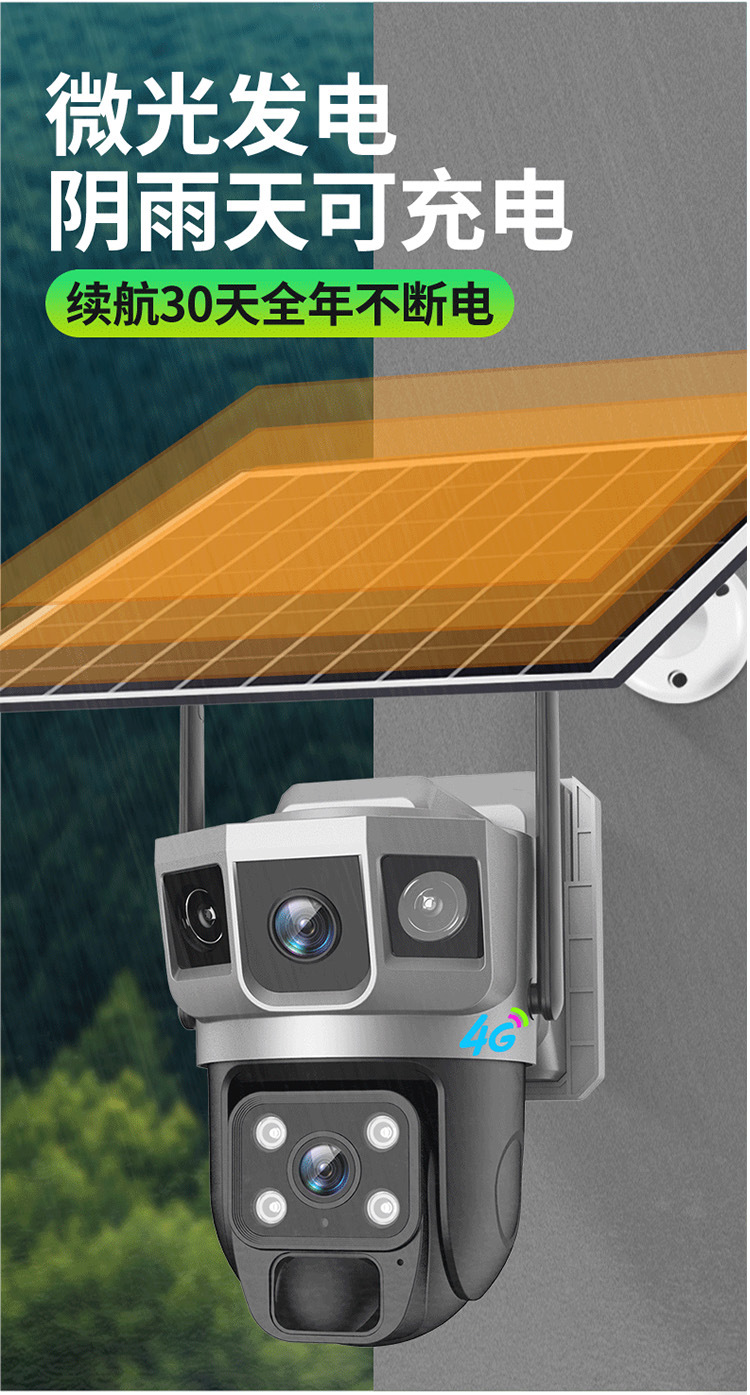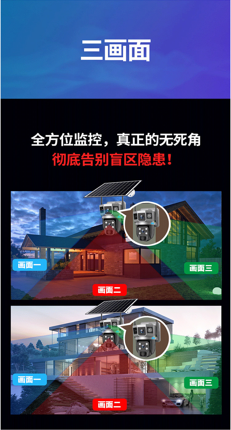 Cámara solar de baja potencia de tres pantallas al aire libre sin electricidad, sin red, teléfono móvil doméstico, visión nocturna remota, monitoreo HD