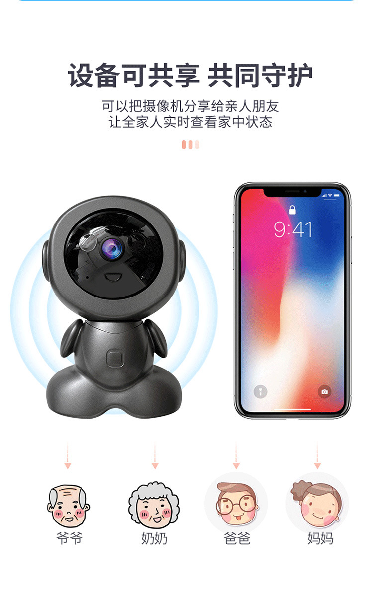 Cámara de vigilancia wifi inalámbrica doméstica de visión nocturna HD robot espacial interior monitor inteligente