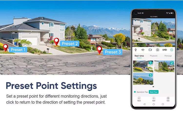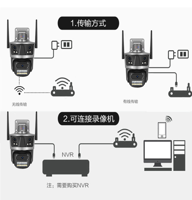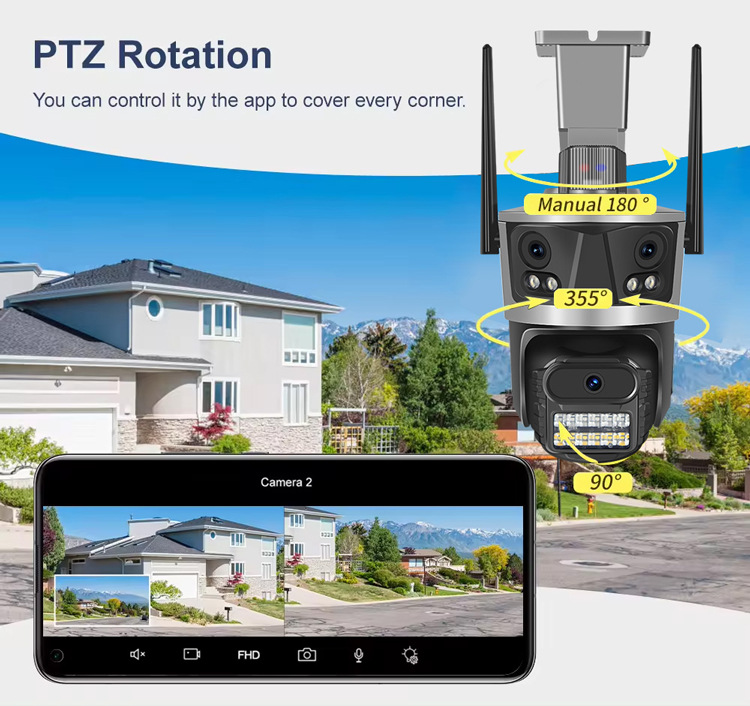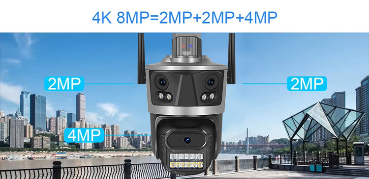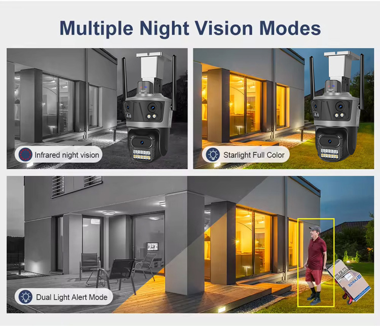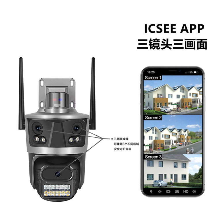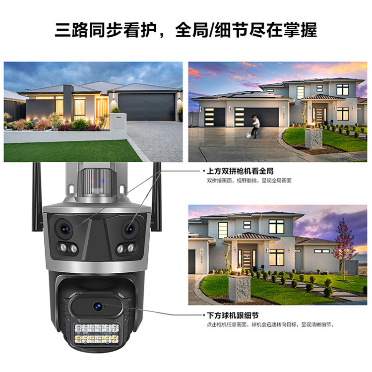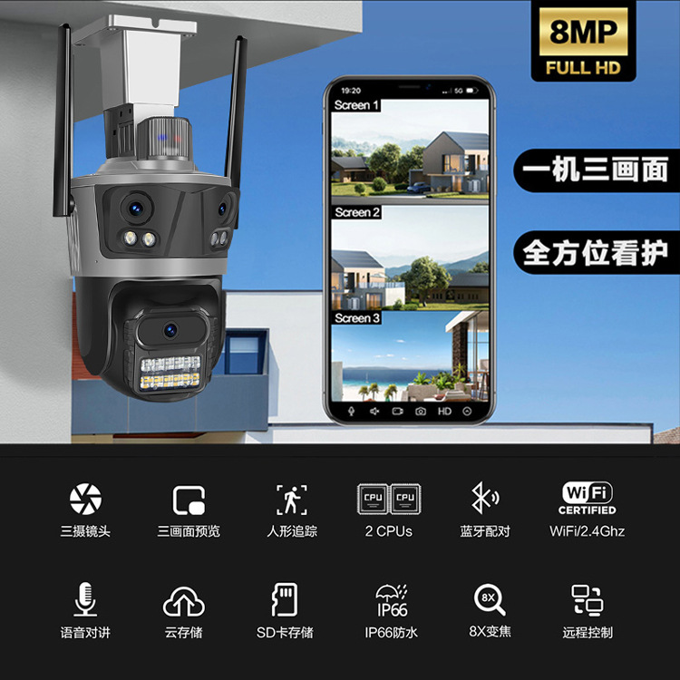 Tres ojos al aire libre, tres imágenes, 8 millones de cámaras inalámbricas de monitoreo de alta definición de visión nocturna a color completo