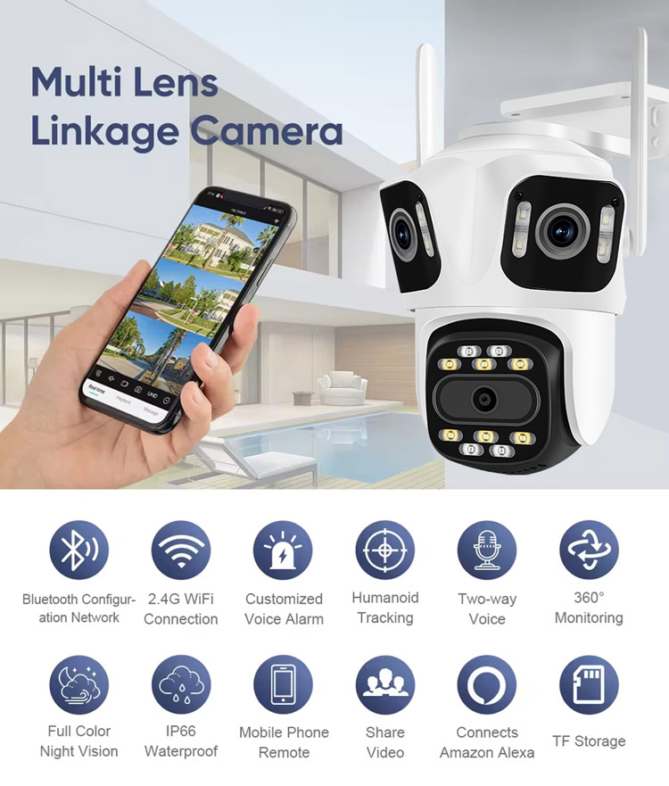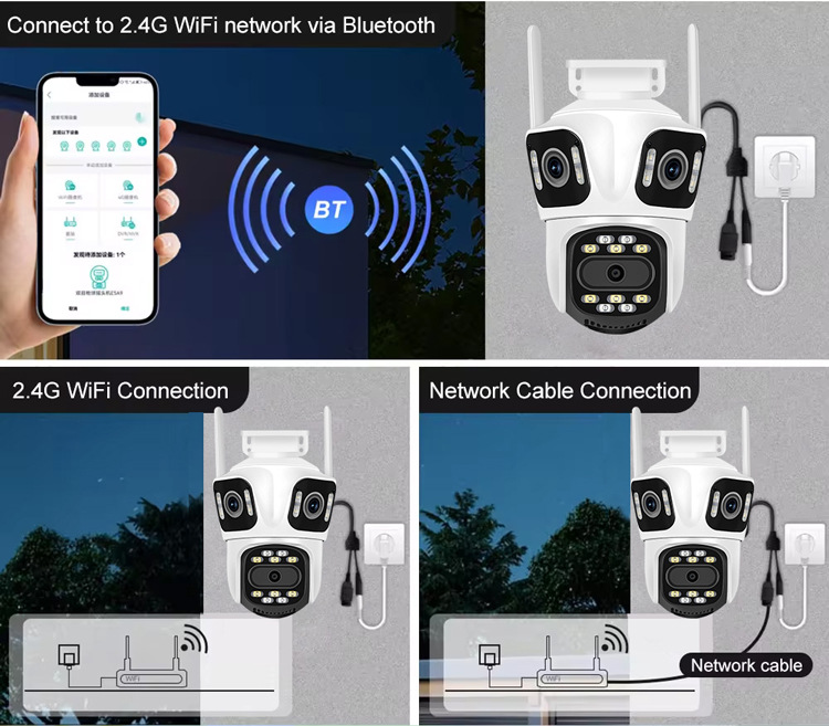 Monitoreo de tres imágenes 360 ° panorámico con visión nocturna de alta definición cámara de monitoreo WiFi inalámbrica doméstica