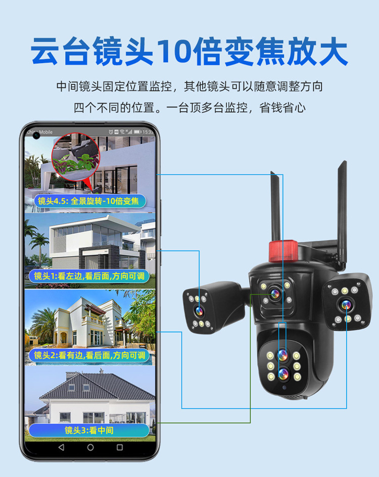 10x zoom cuatro imágenes inalámbricas cámara de monitoreo wifi teléfono móvil visión nocturna remota HD 360 monitoreo