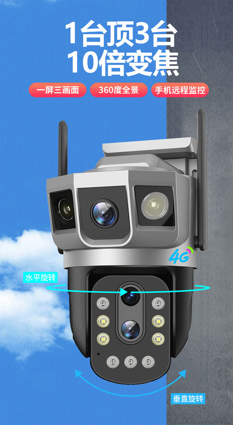 v380 al aire libre 10x zoom inalámbrico cámara de monitoreo wifi tres imágenes visión nocturna remota HD 4G monitoreo