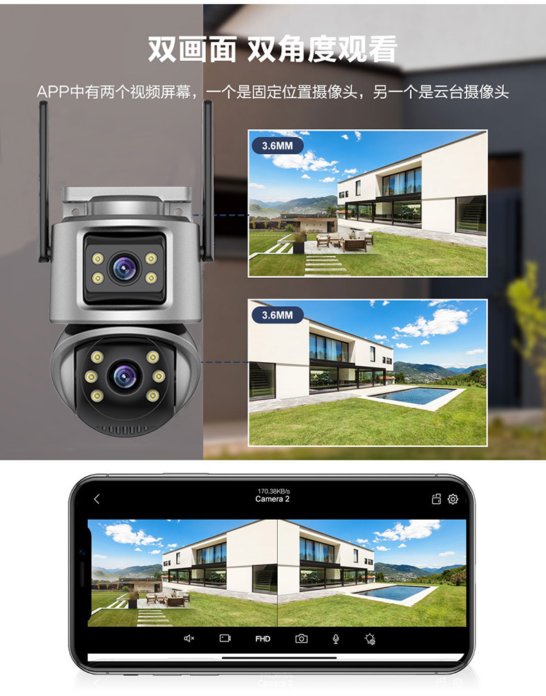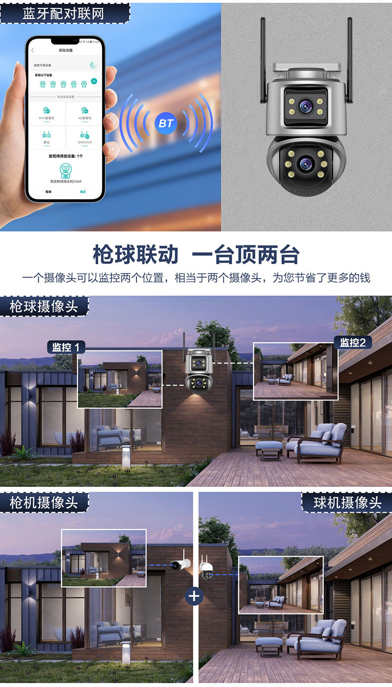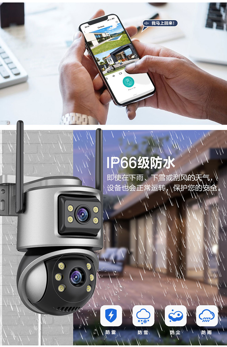 Icsee máquina de bolas WIFI de alta definición a prueba de agua al aire libre Xiongmai cámara de monitoreo de bola de pistola enlace de bola de doble lente monitoreo binocular