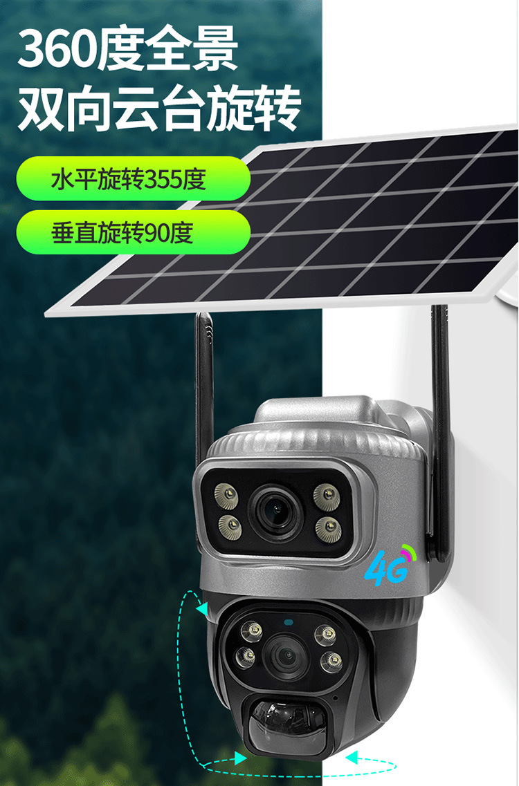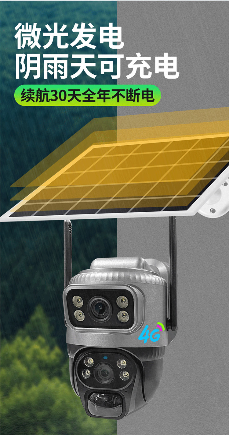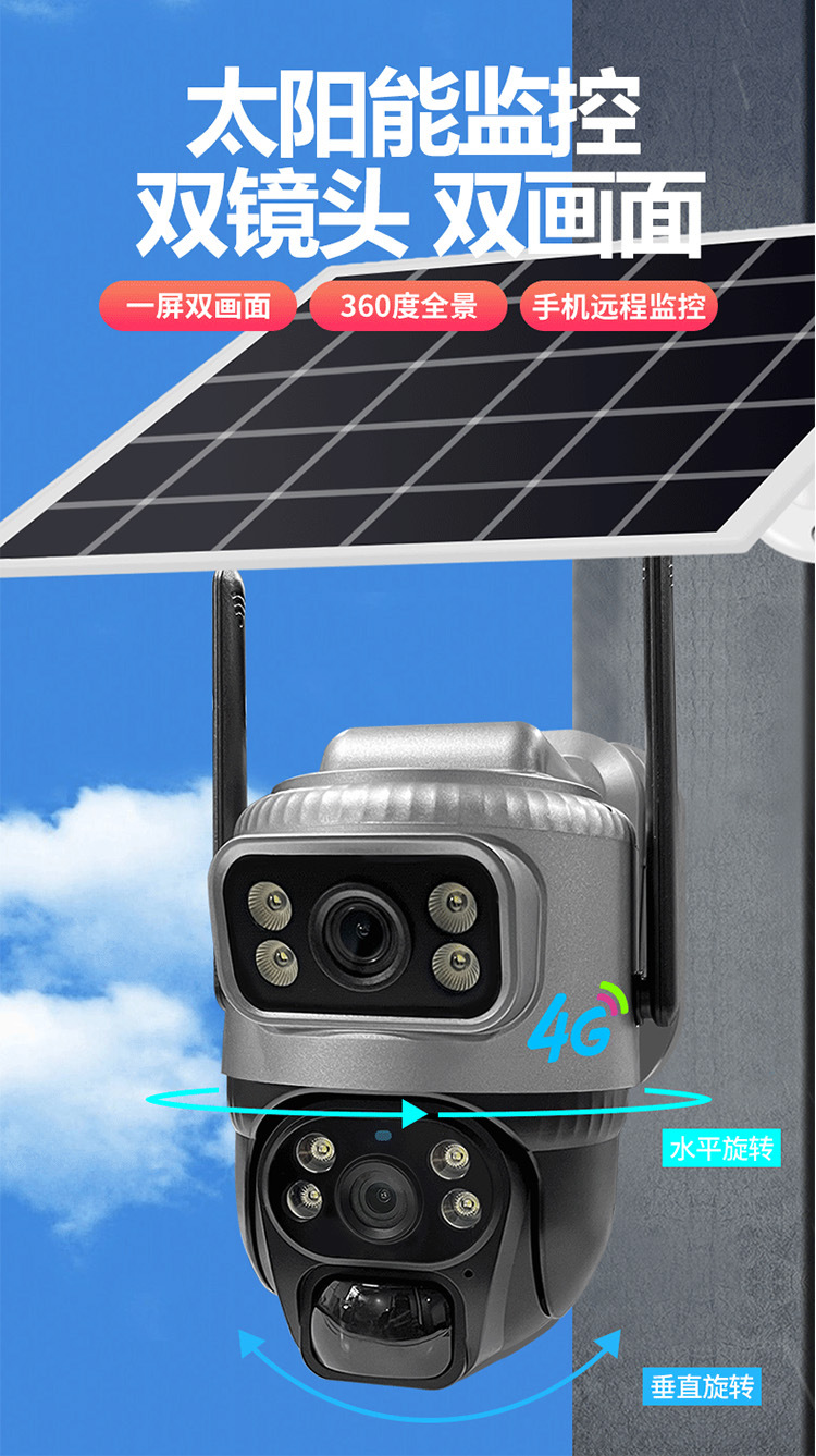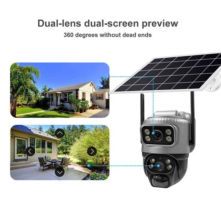 Cámara de monitoreo solar inalámbrica 4G de baja potencia al aire libre de doble pantalla de alta definición remota sin electricidad sin red para huerto