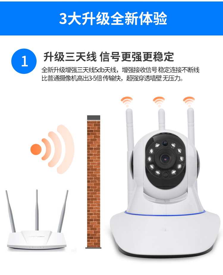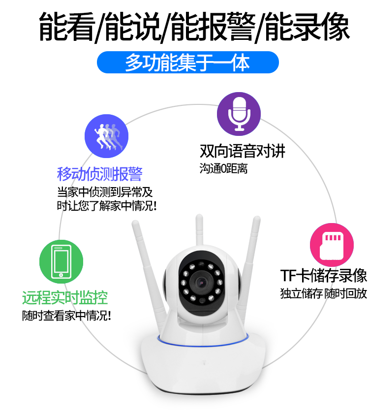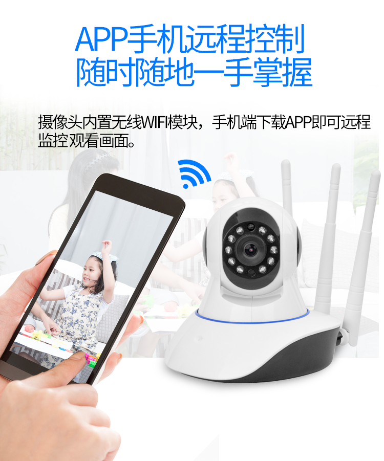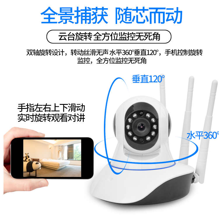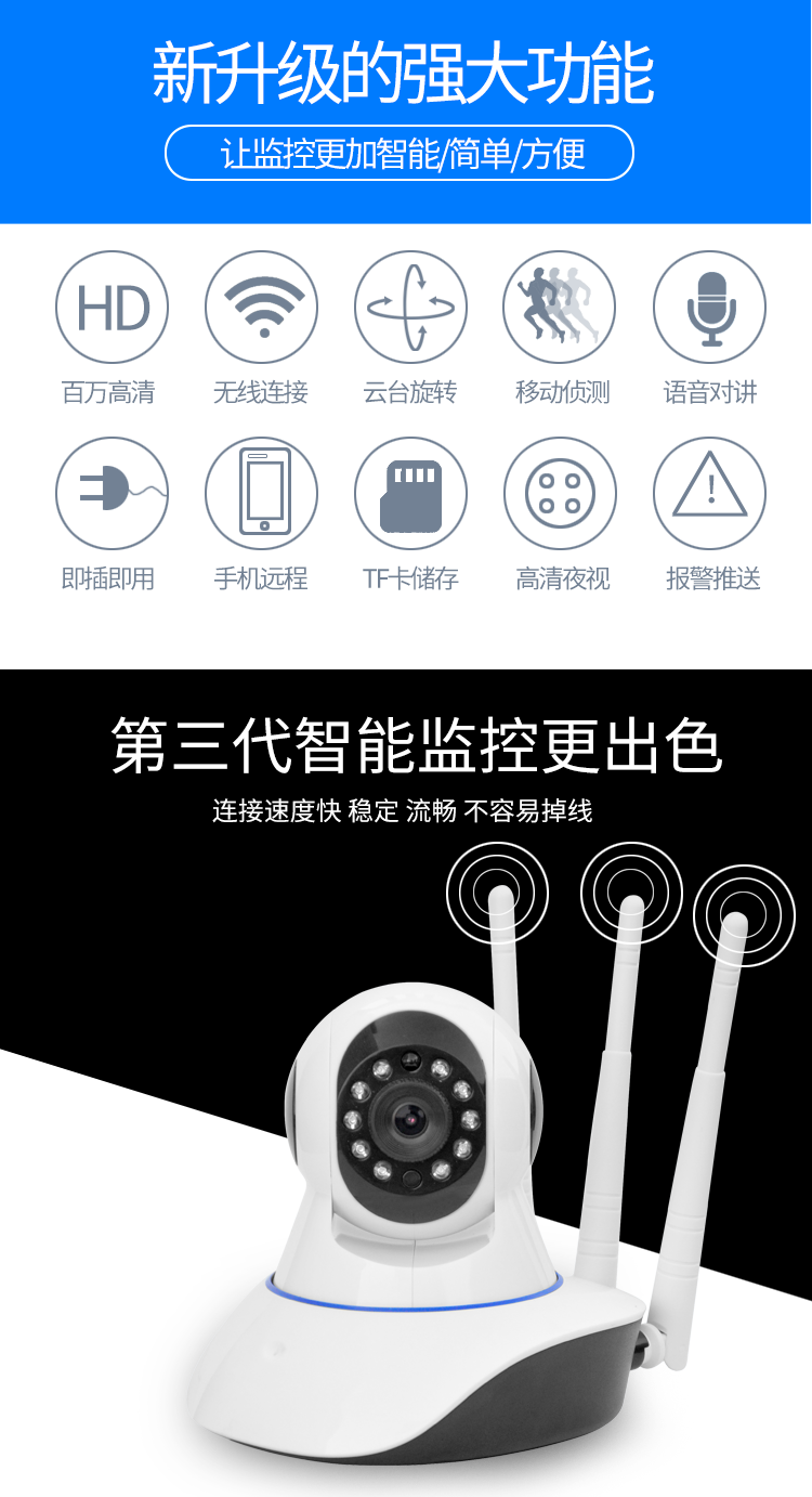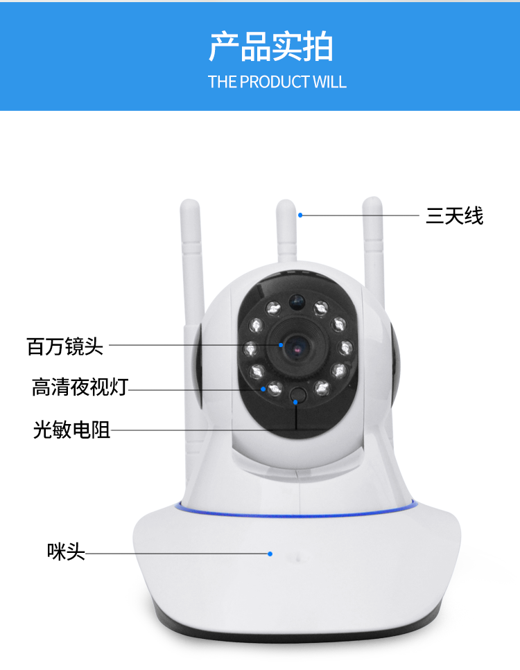 Zhiwei tiene una cabeza de observación de la red inalámbrica HD 1080p cámara de vigilancia WIFI yoosee de tres antenas de cabeza móvil de la máquina