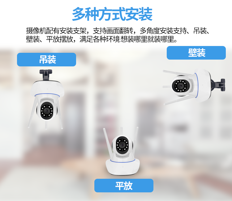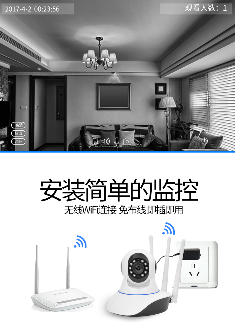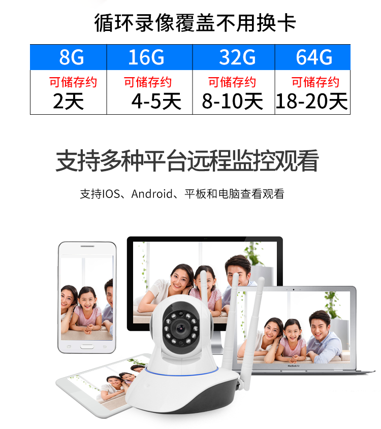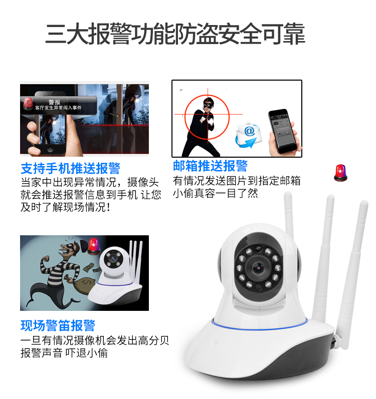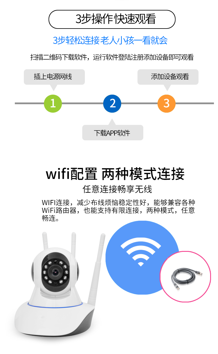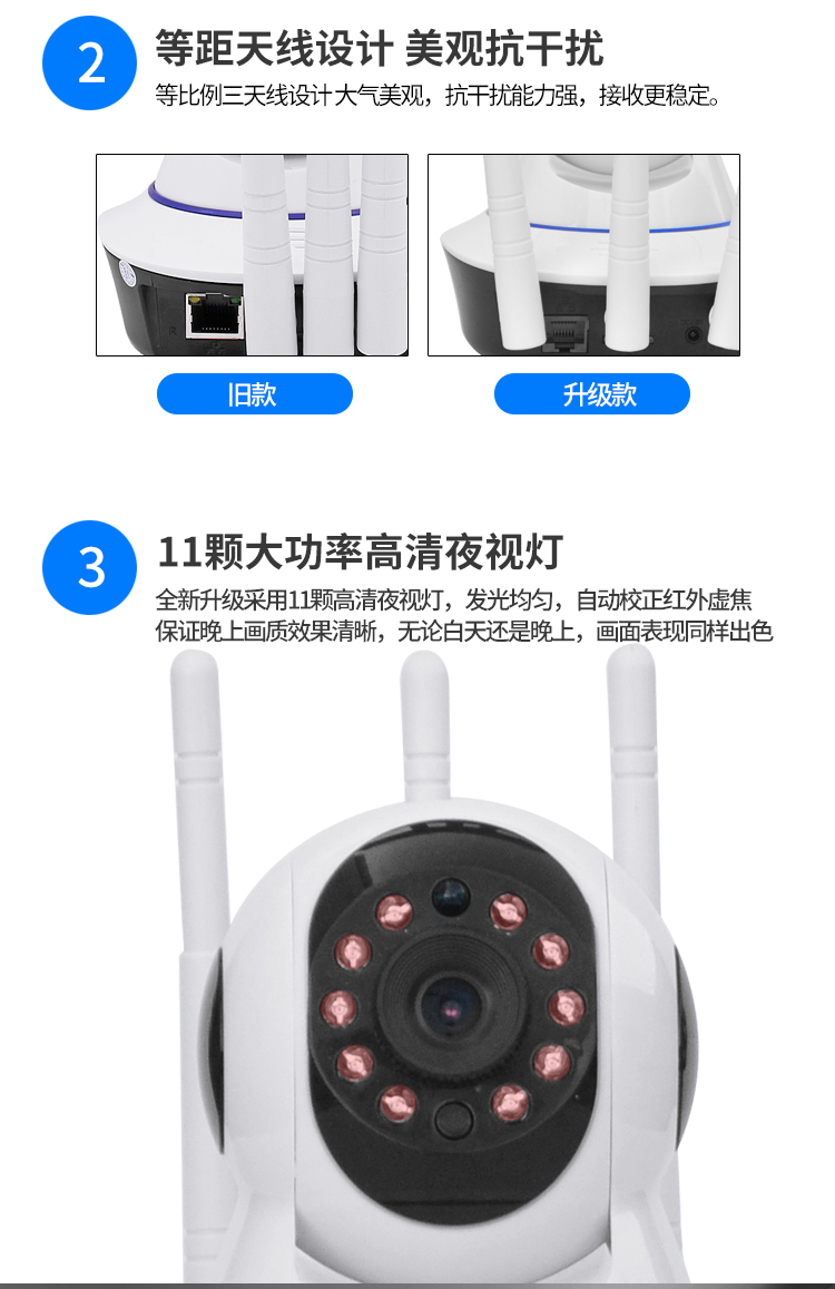 Zhiwei tiene una cabeza de observación de la red inalámbrica HD 1080p cámara de vigilancia WIFI yoosee de tres antenas de cabeza móvil de la máquina
