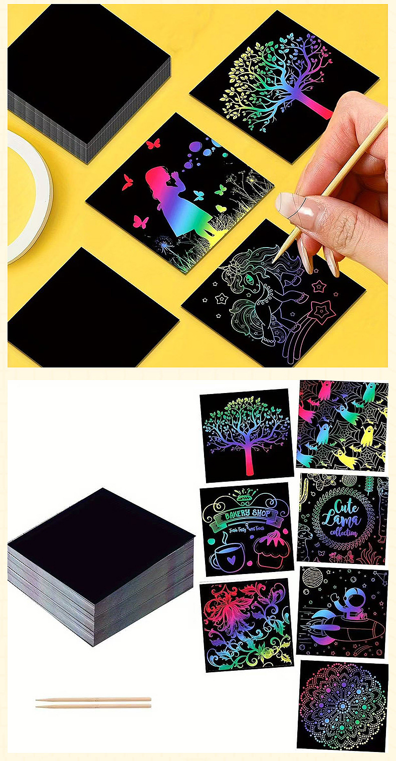 100 Hojas de Papel para Rascar con Diseño de Doodle - Juguete Educativo DIY para Niños