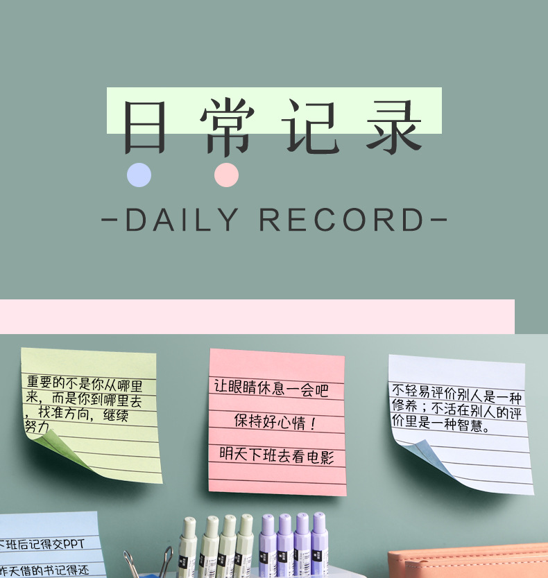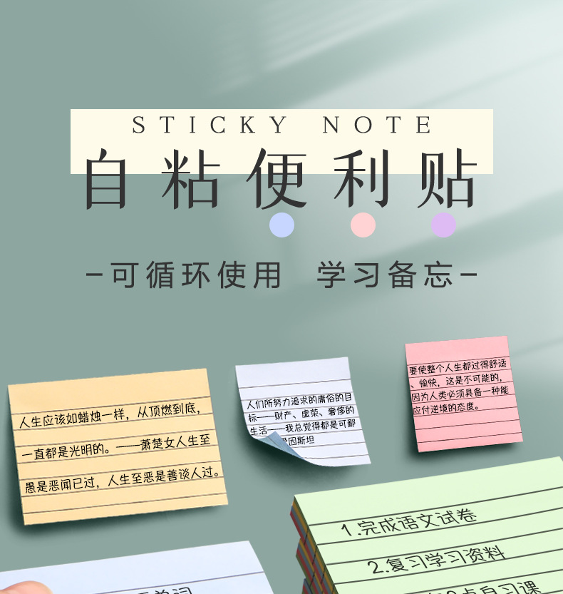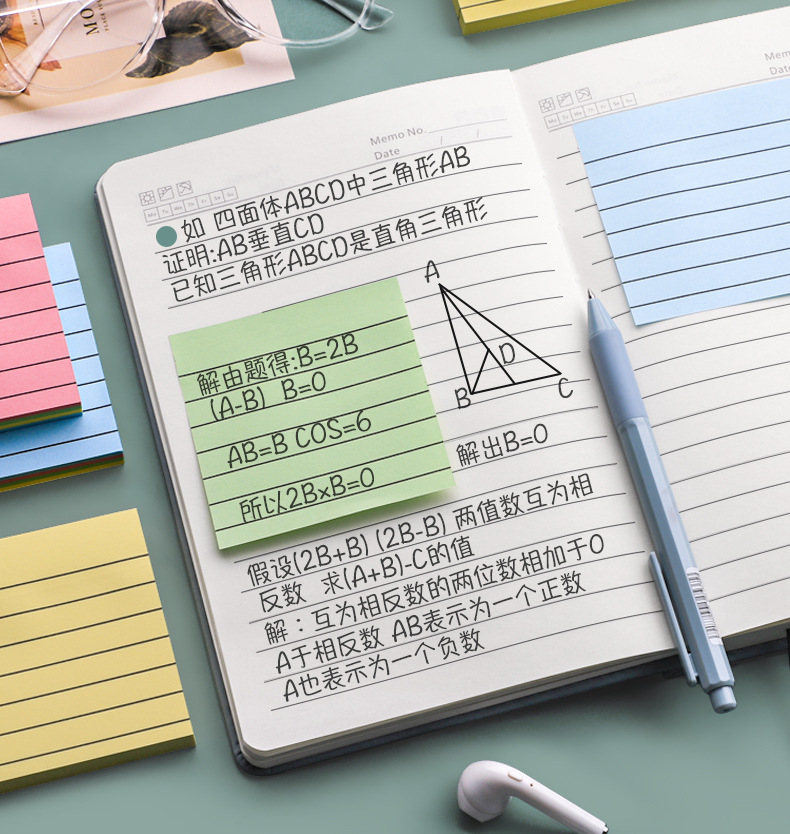 Notas adhesivas escolares con líneas, etiquetas y papelería para oficina