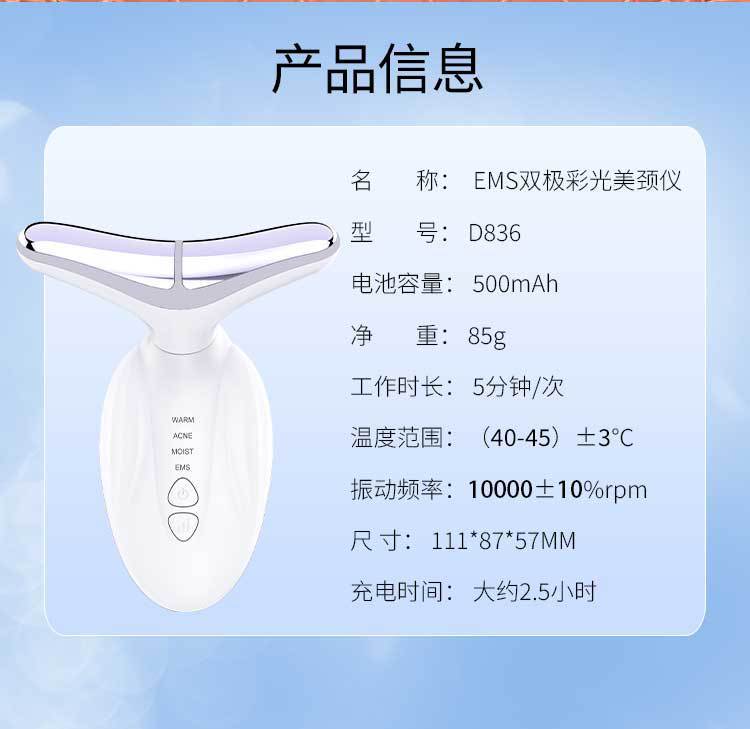 Masajeador reafirmante de cuello con luz LED de 7 colores y microcorriente