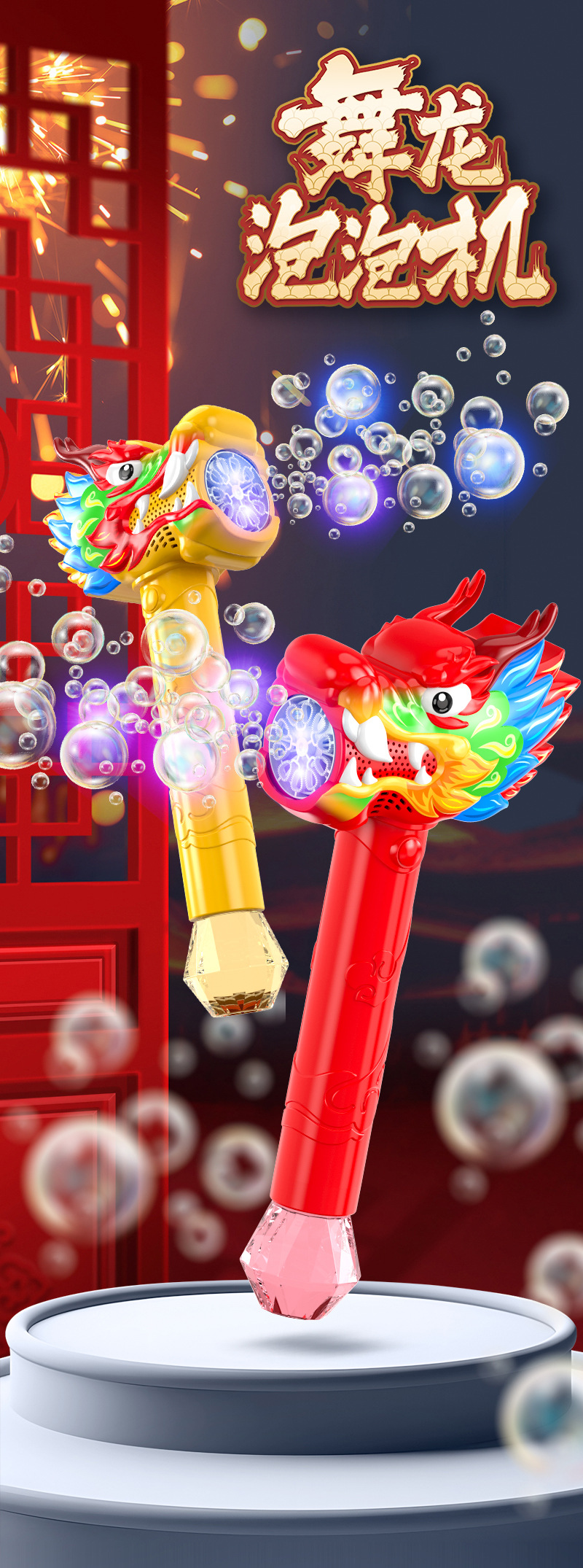 2024 dragón año burbuja máquina nacional moda dragón danza burbuja palo portátil automático burbuja palo regalo de Año Nuevo para niños al por mayor