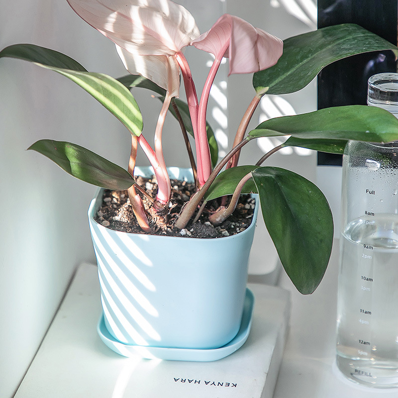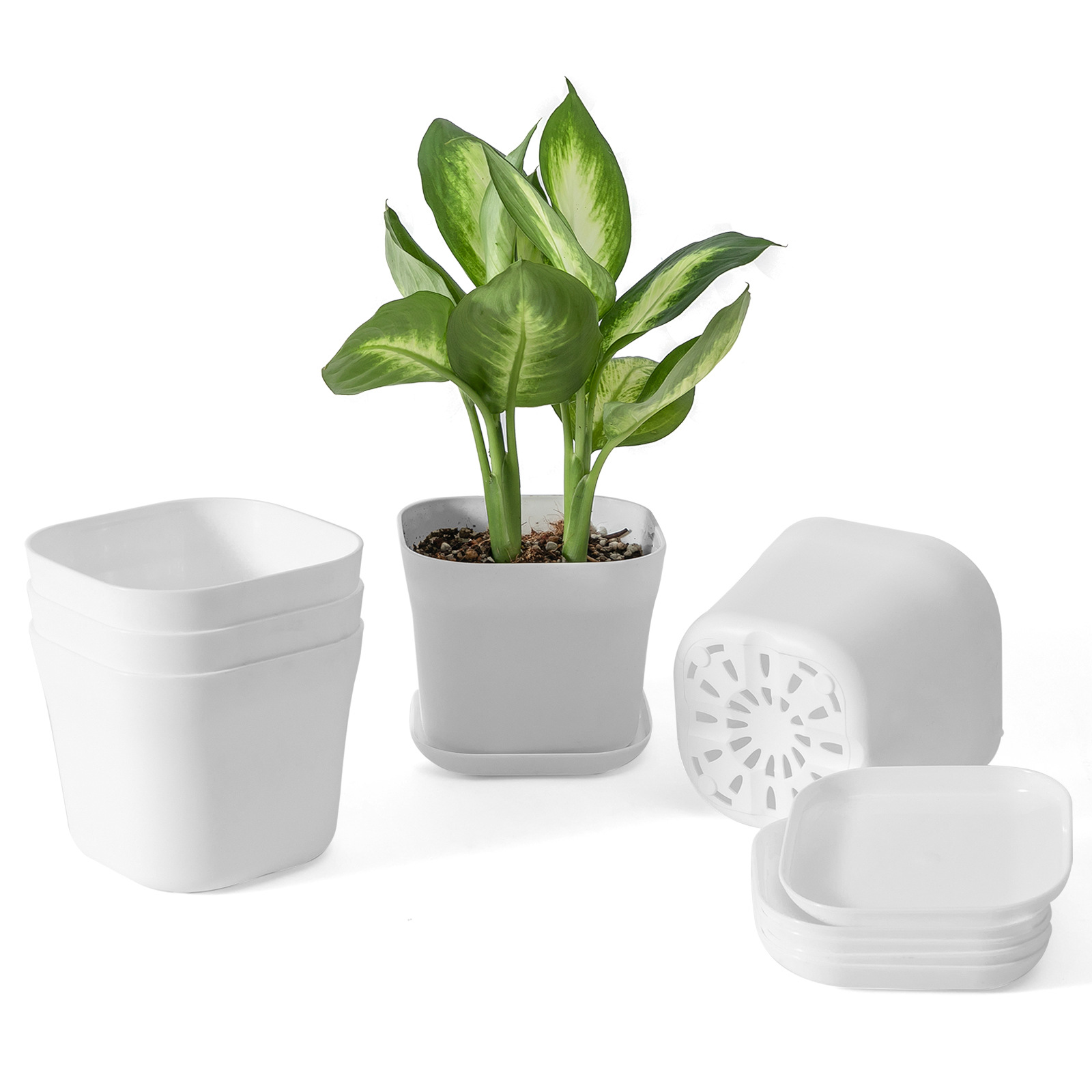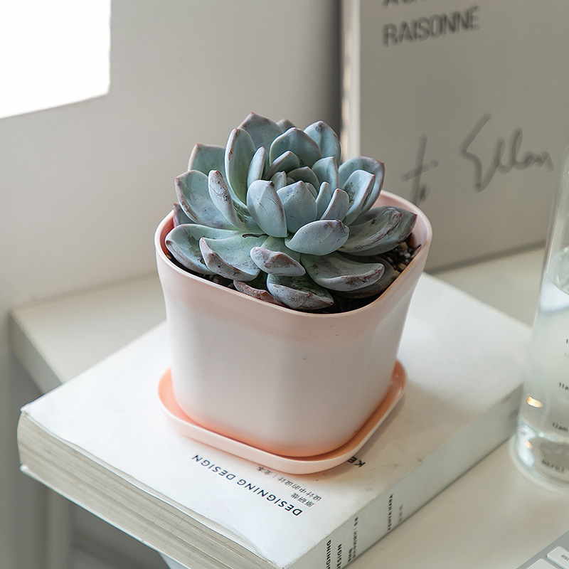 Maceta cuadrada pequeña de plástico, blanca, oficina y escritorio, para suculentas