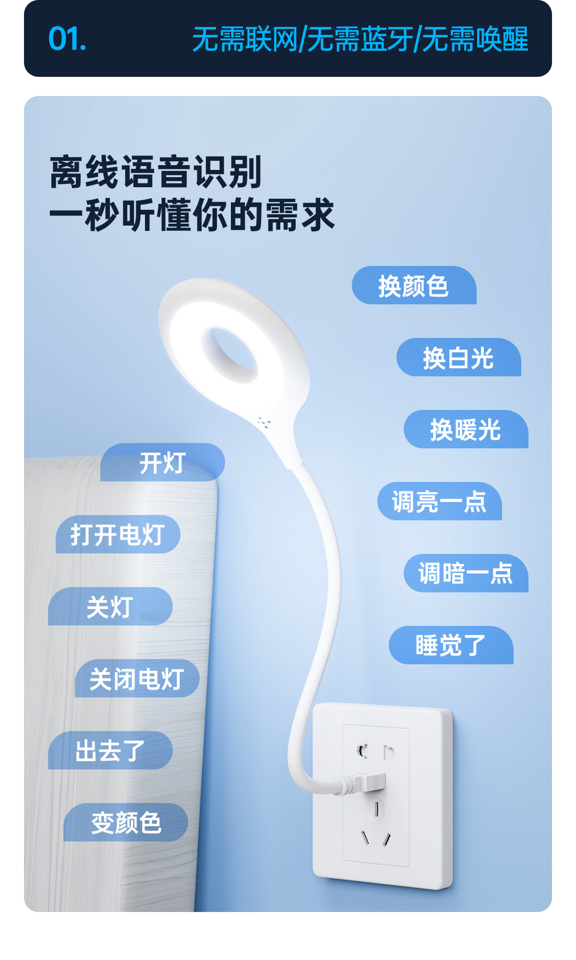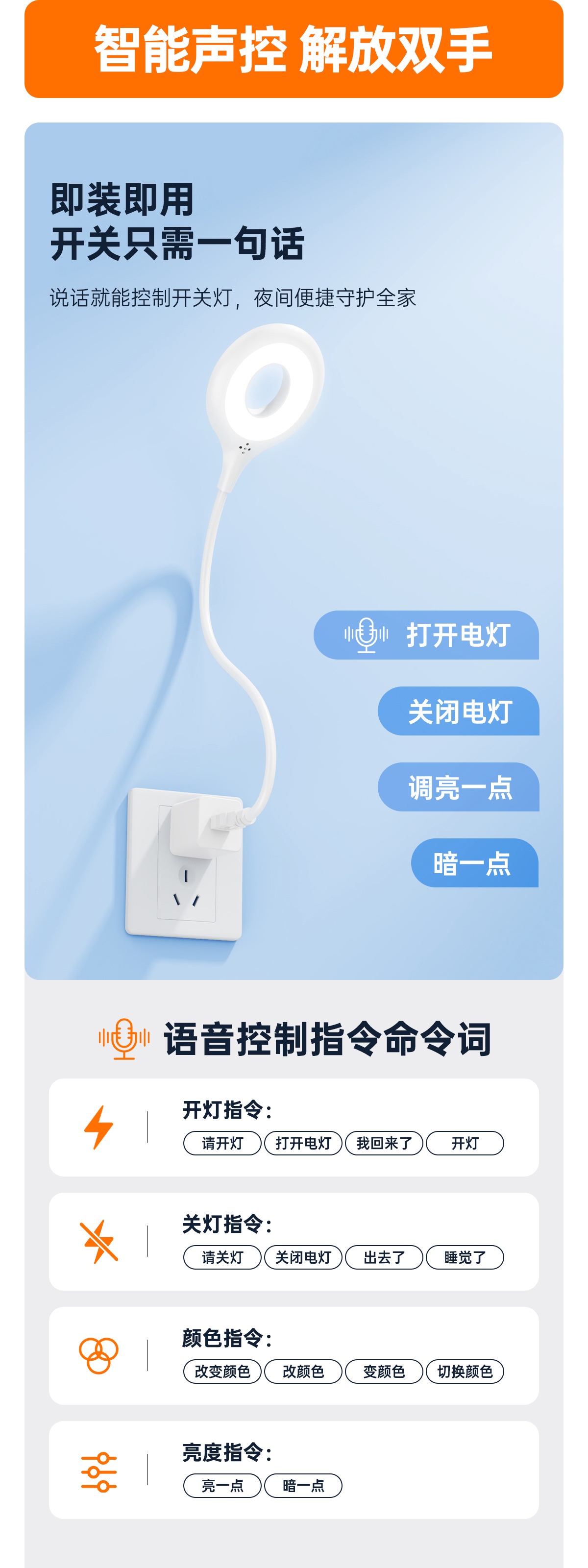 Luz Nocturna Inteligente con Control por Voz, USB Portátil, Protección Ocular, Luz Ambiental para Dormitorio al por Mayor