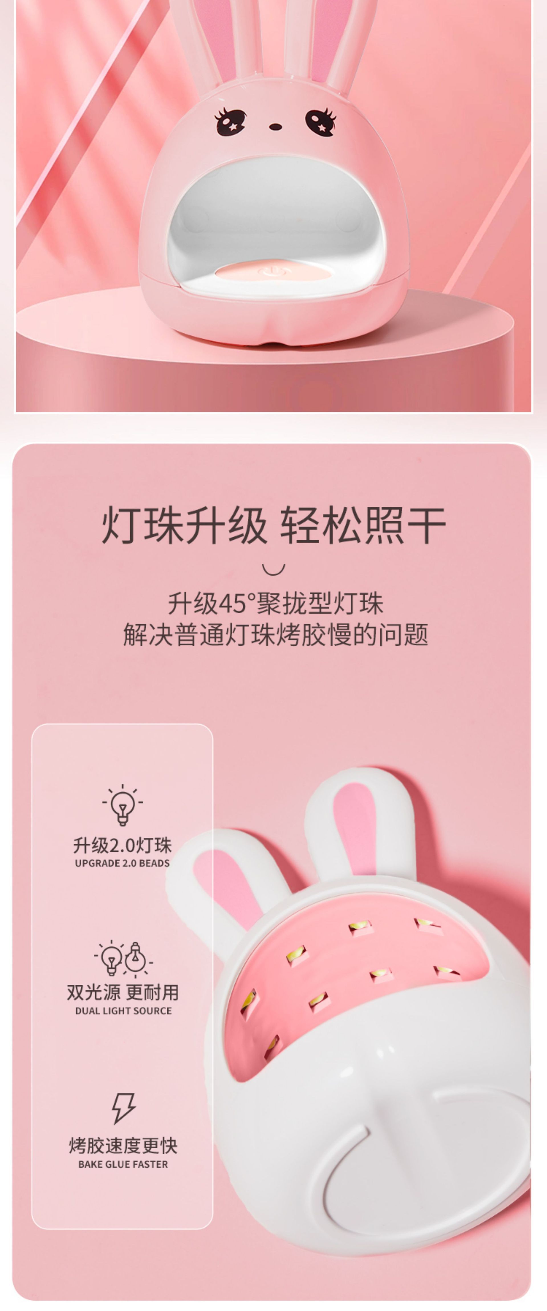 Mini Lámpara de Fototerapia para Uñas, Conejito Q, LED de Secado Rápido