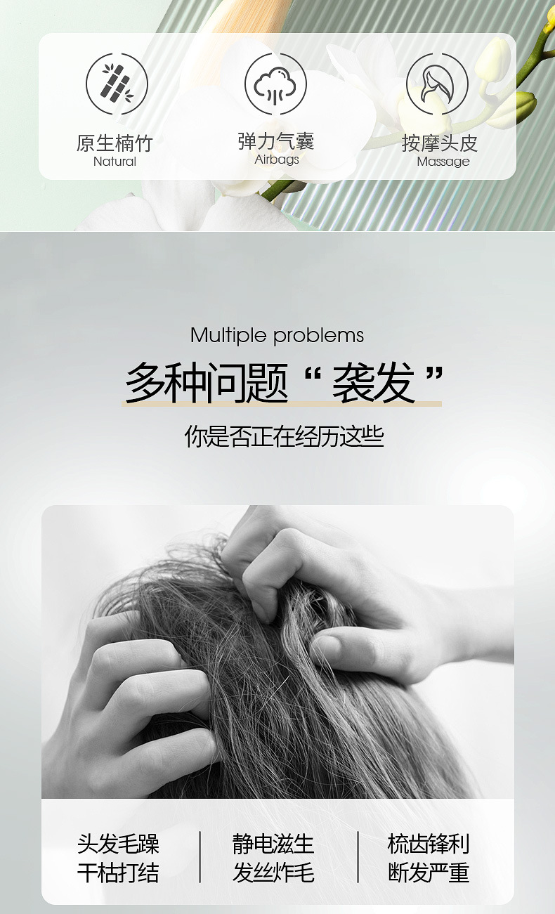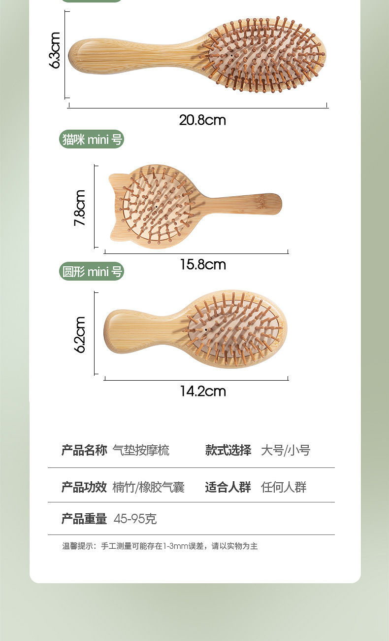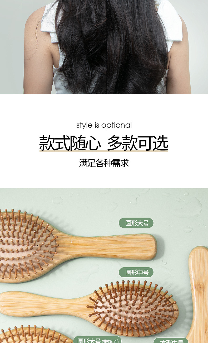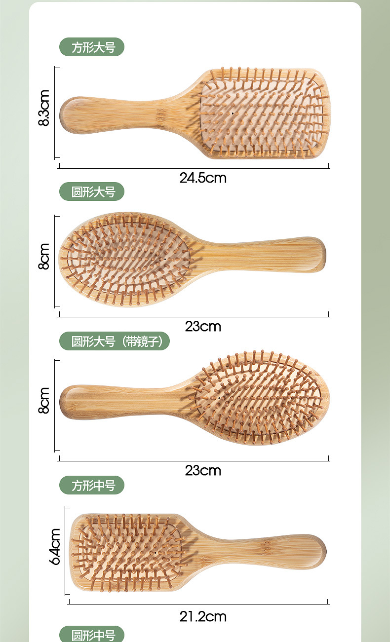 | Especificaciones | Cuadrado grande,Redondo grande,Cuadrado mediano,Redondo mediano,Orejas de gato,Cintura pequeña,Trumpeta 【Dientes afilados】,Estilo de cola de pez de comercio exterior [dientes afilados],Peine de espejo redondo grande |
